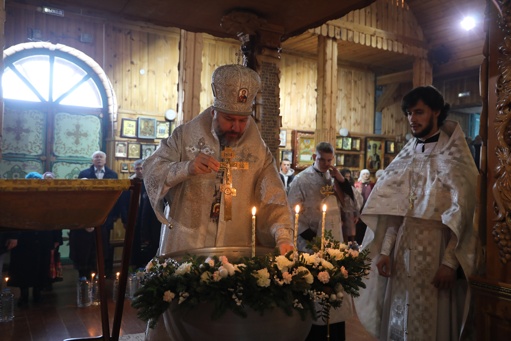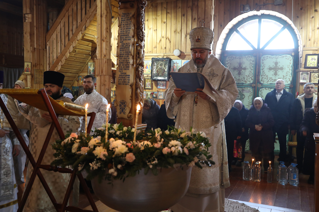 Преосвященнейший епископ Симон совершил чин великого освящения воды, затем окропил святой водой храм и молящихся.