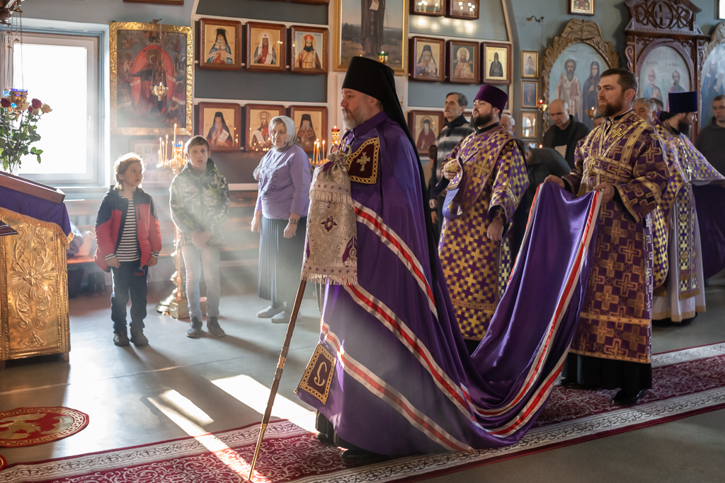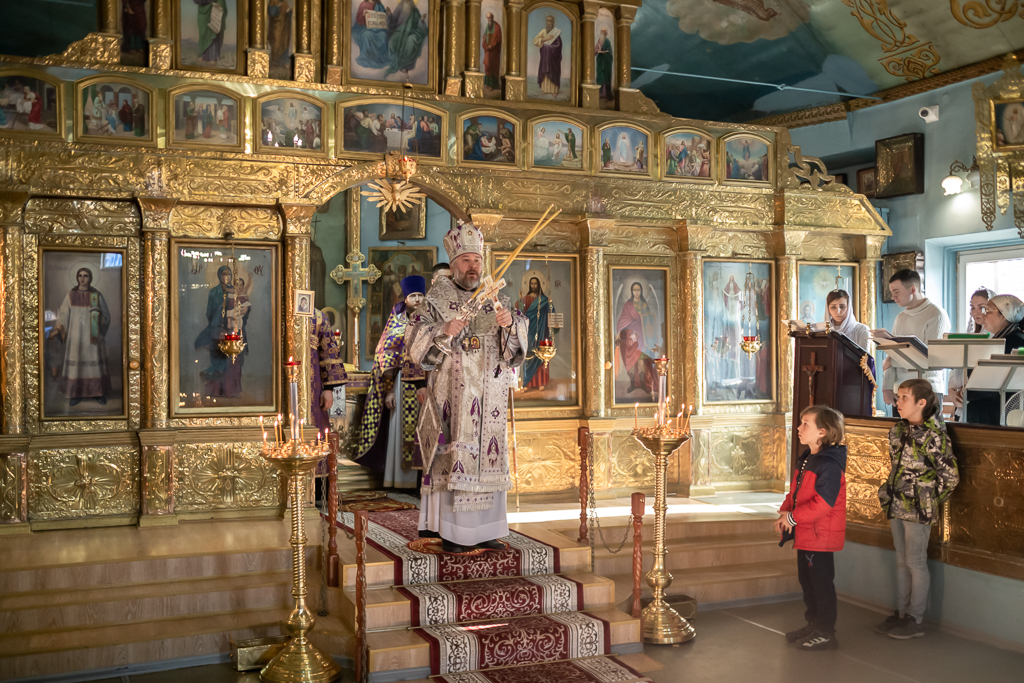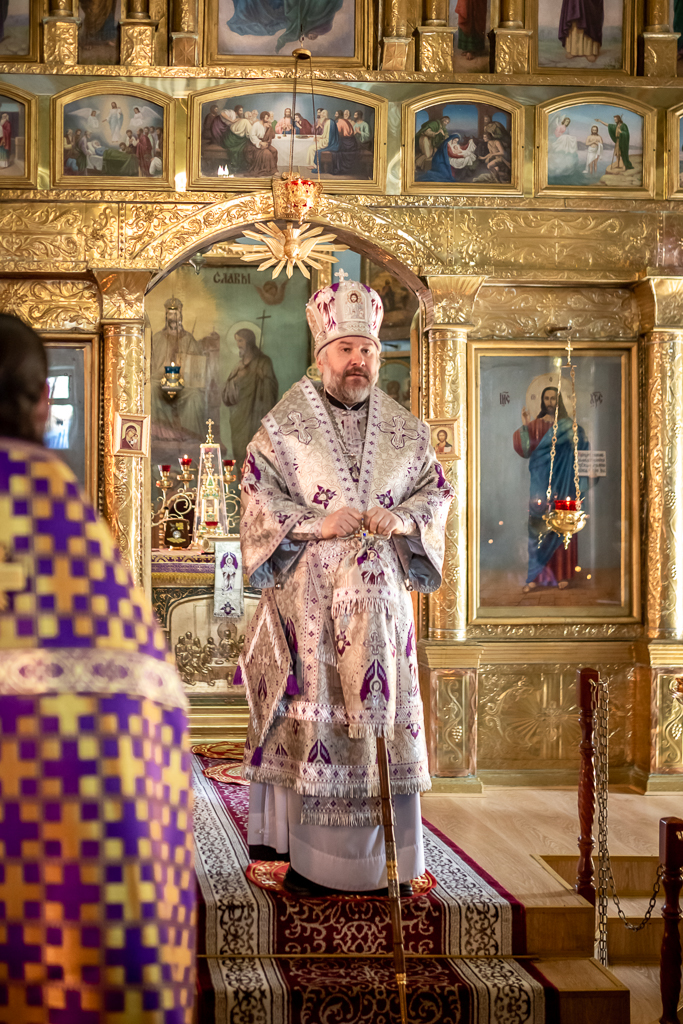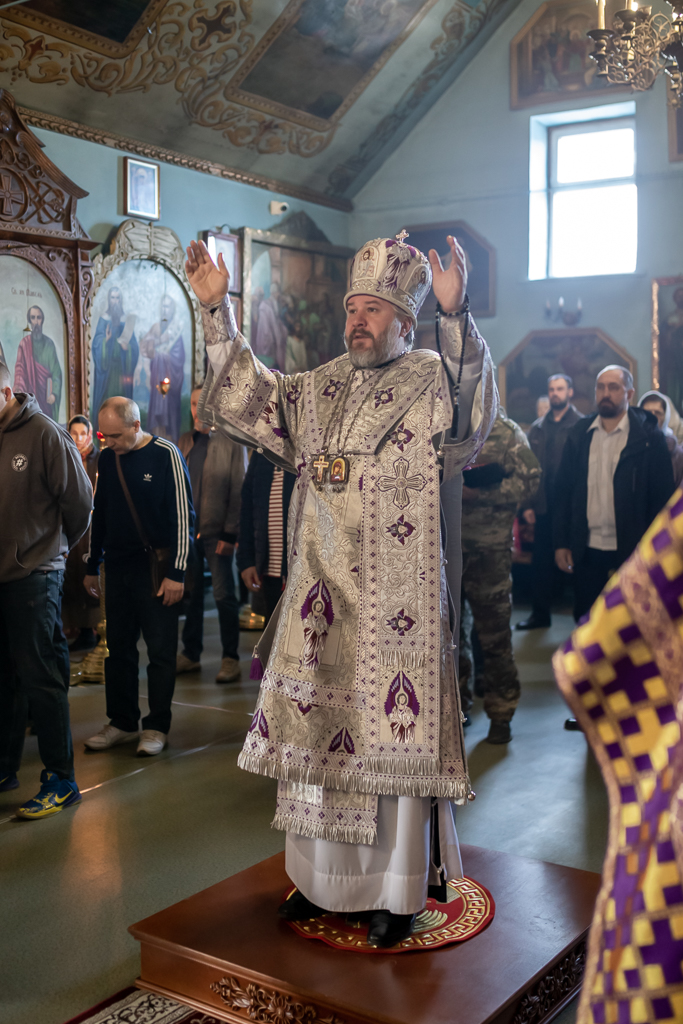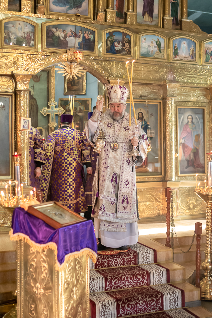 Вместе с архипастырем за богослужением молились настоятель храма иерей Олег Брехов, иерей Михаил Дубянский, диакон Трофим Осяк и прихожане.