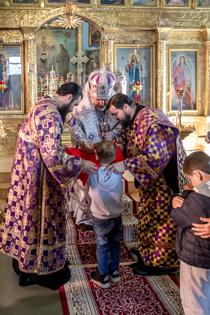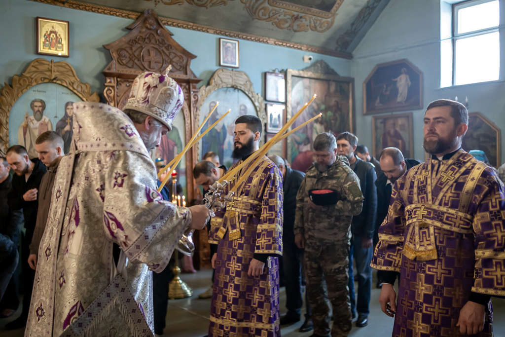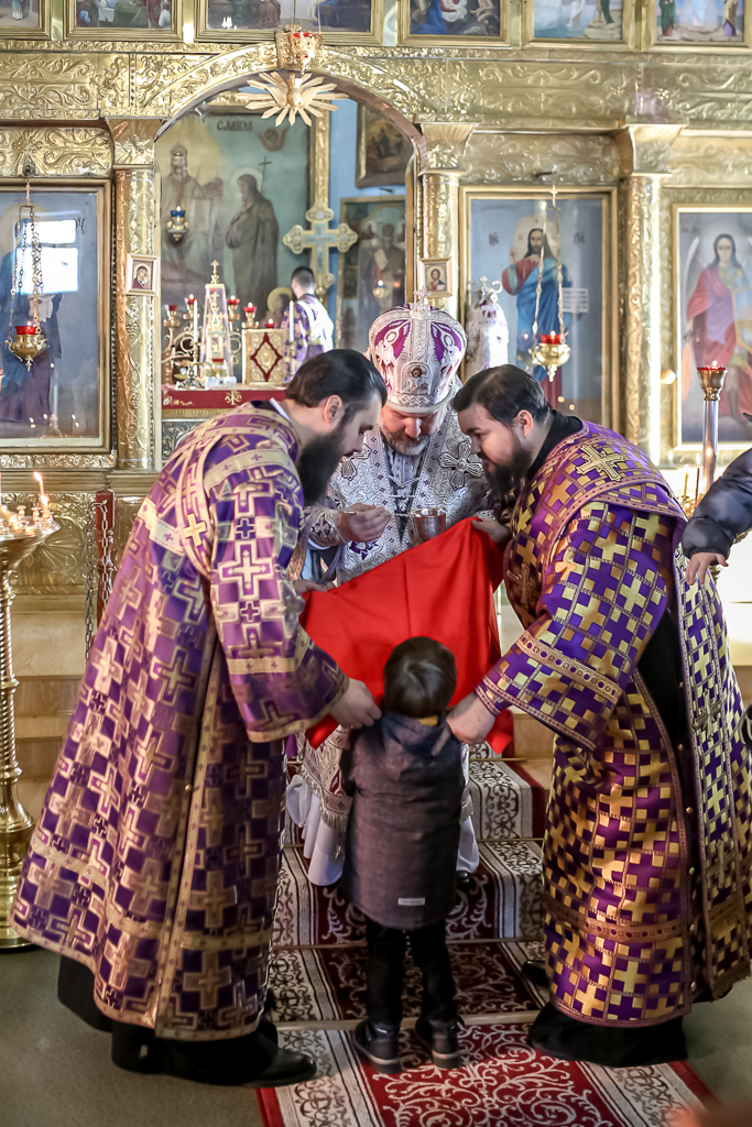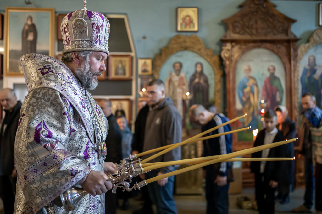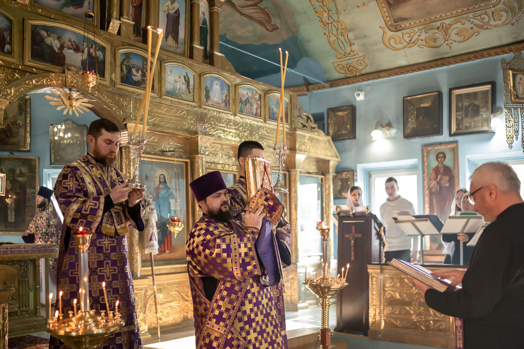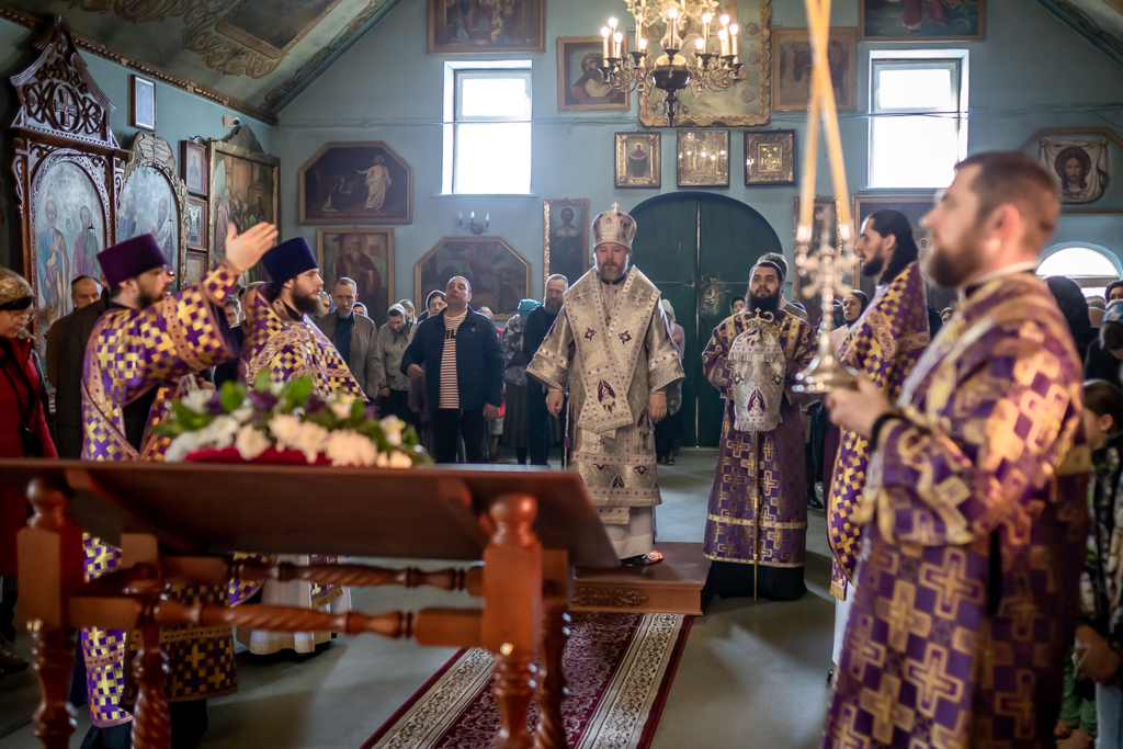 Вместе с архипастырем за богослужением молились настоятель храма иерей Олег Брехов, иерей Михаил Дубянский, диакон Трофим Осяк и прихожане.