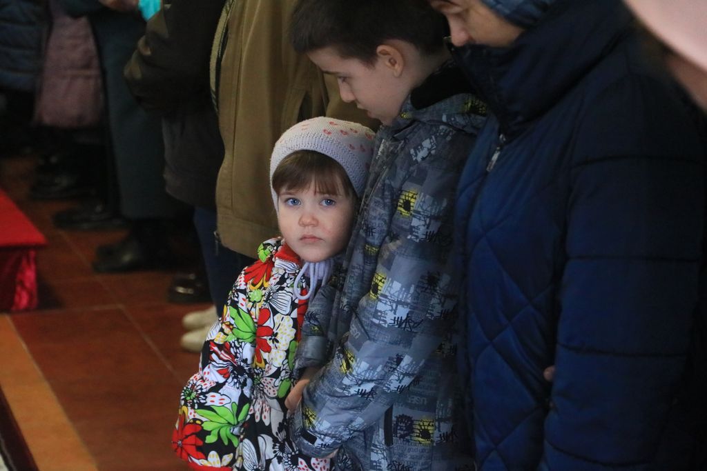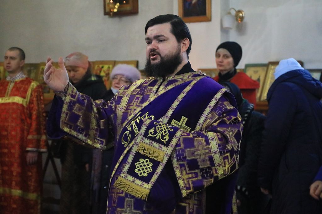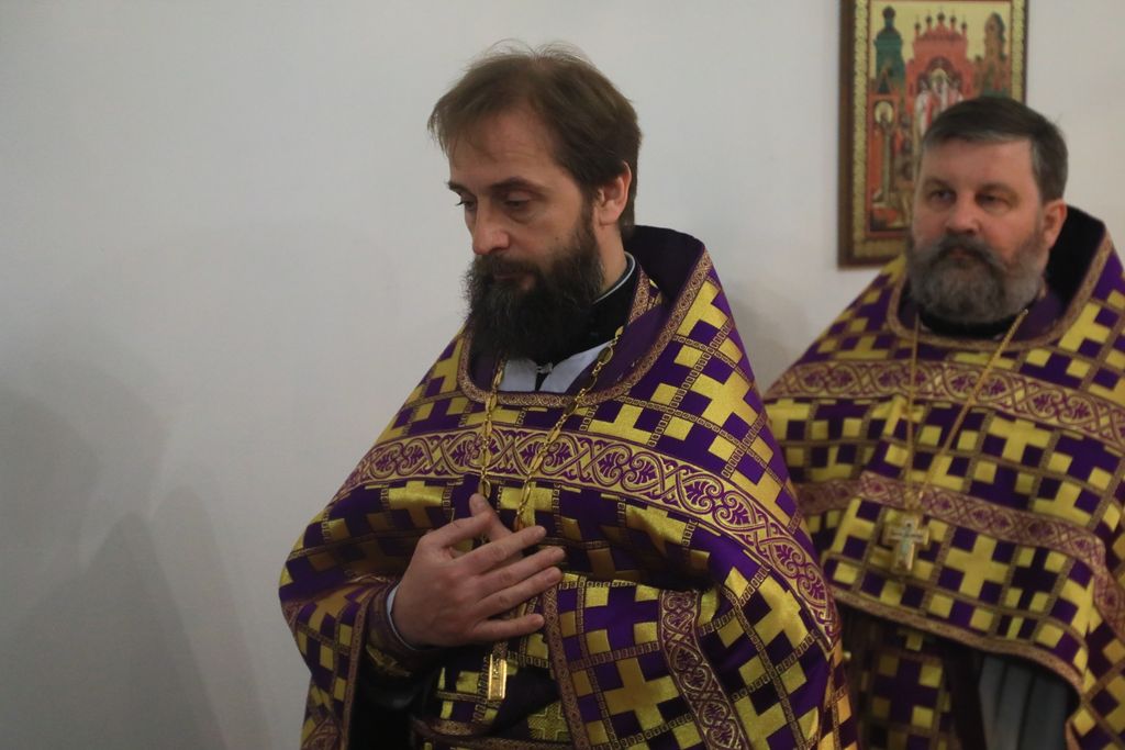 Его Преосвященству сослужили благочинный приходов Александровск-Грушевского округа протоиерей Сергий Яценко, клирик храма вмч. Пантелеимона протоиерей Сергий Сергошин и диакон Трофим Осяк.