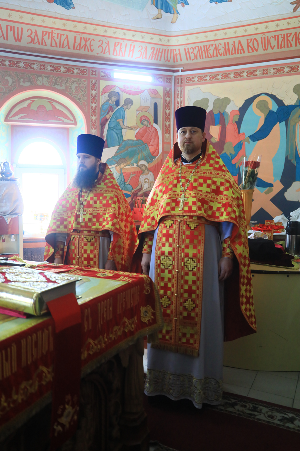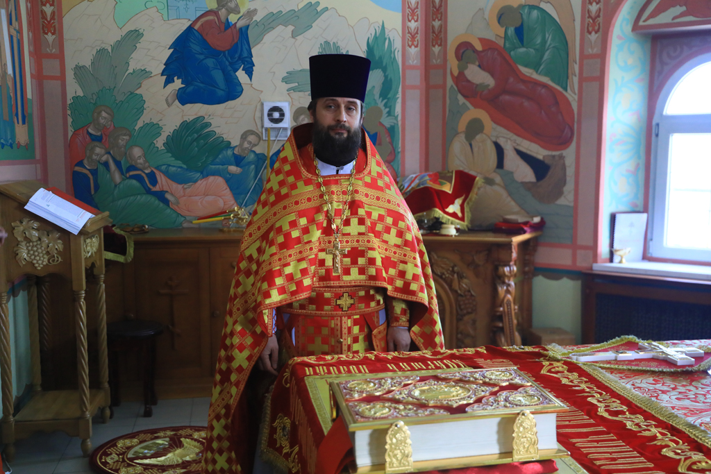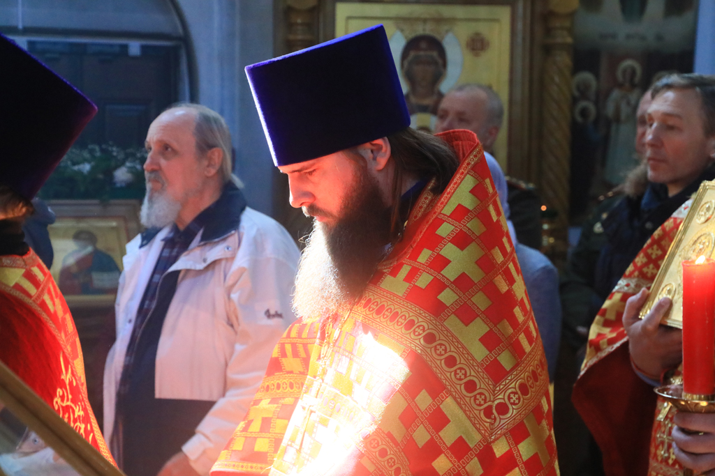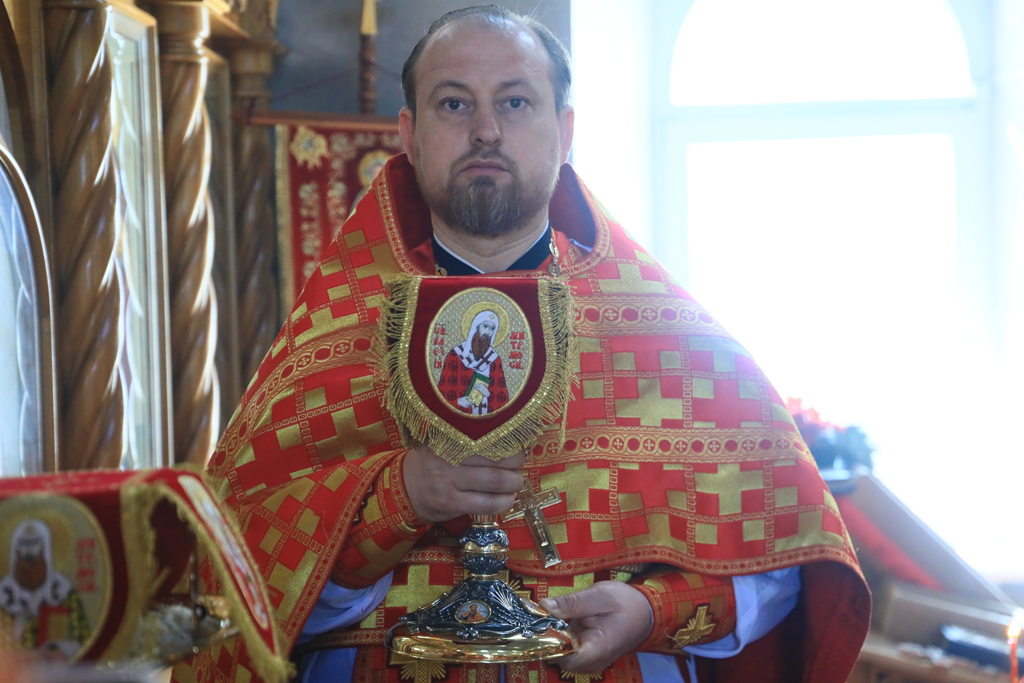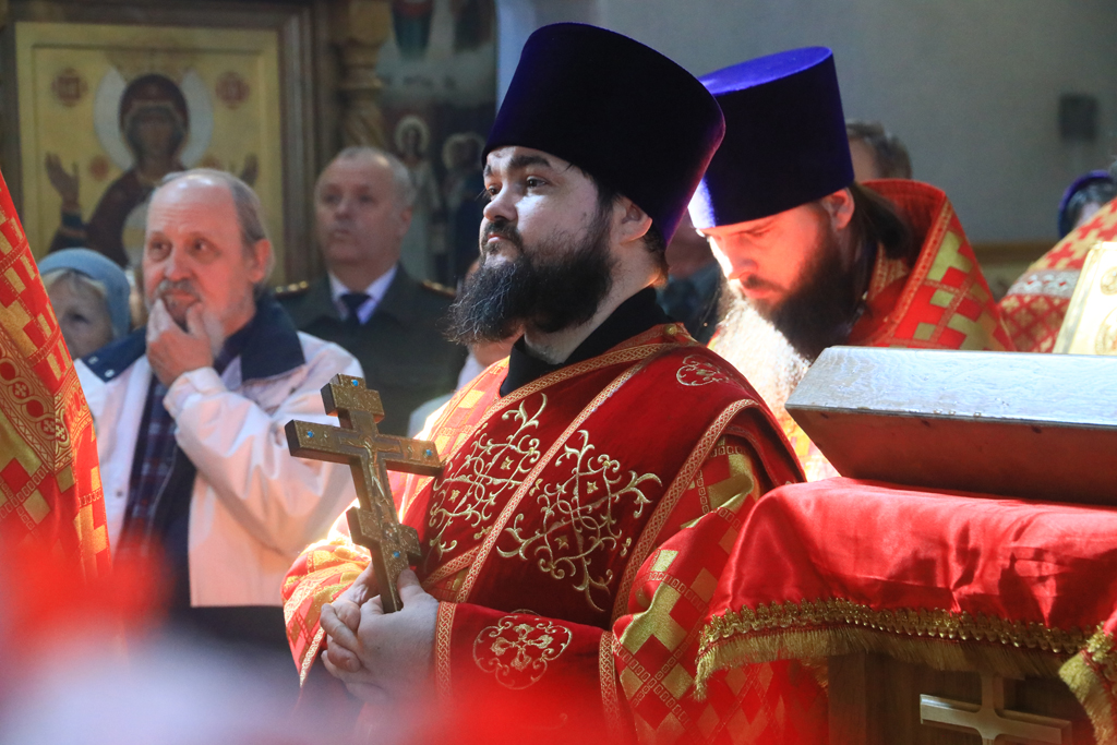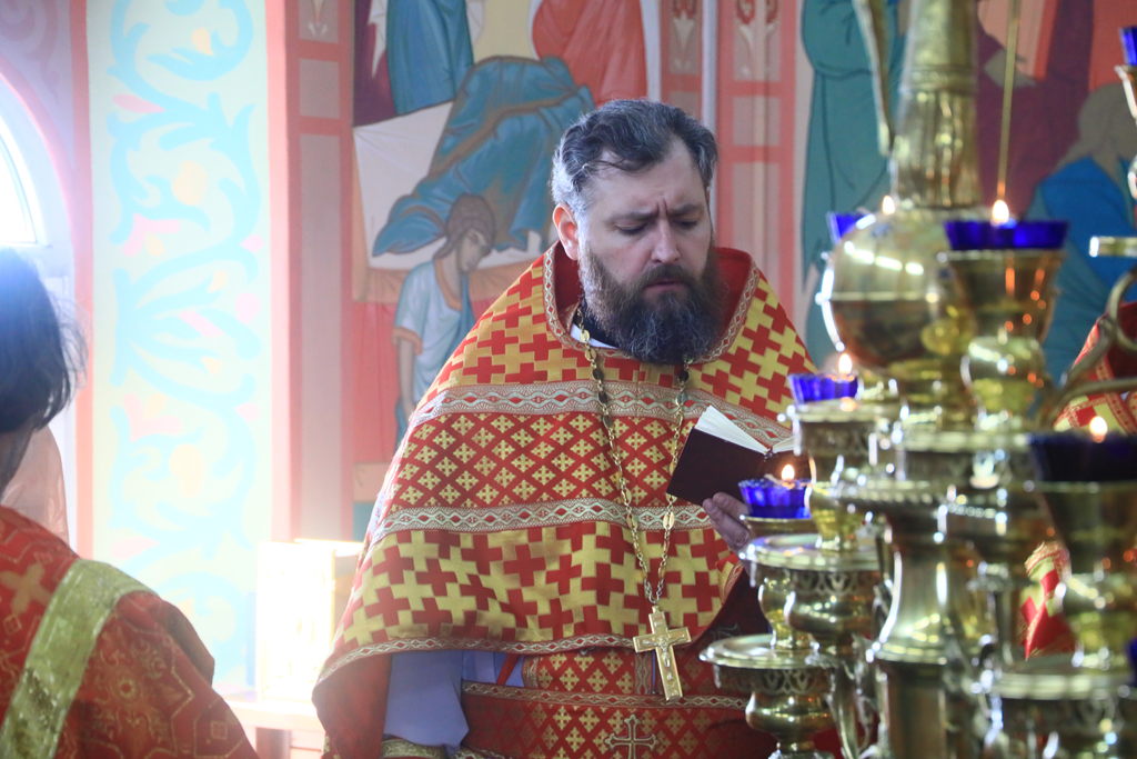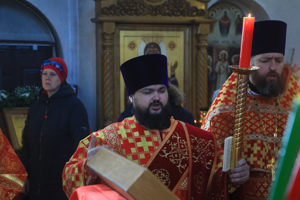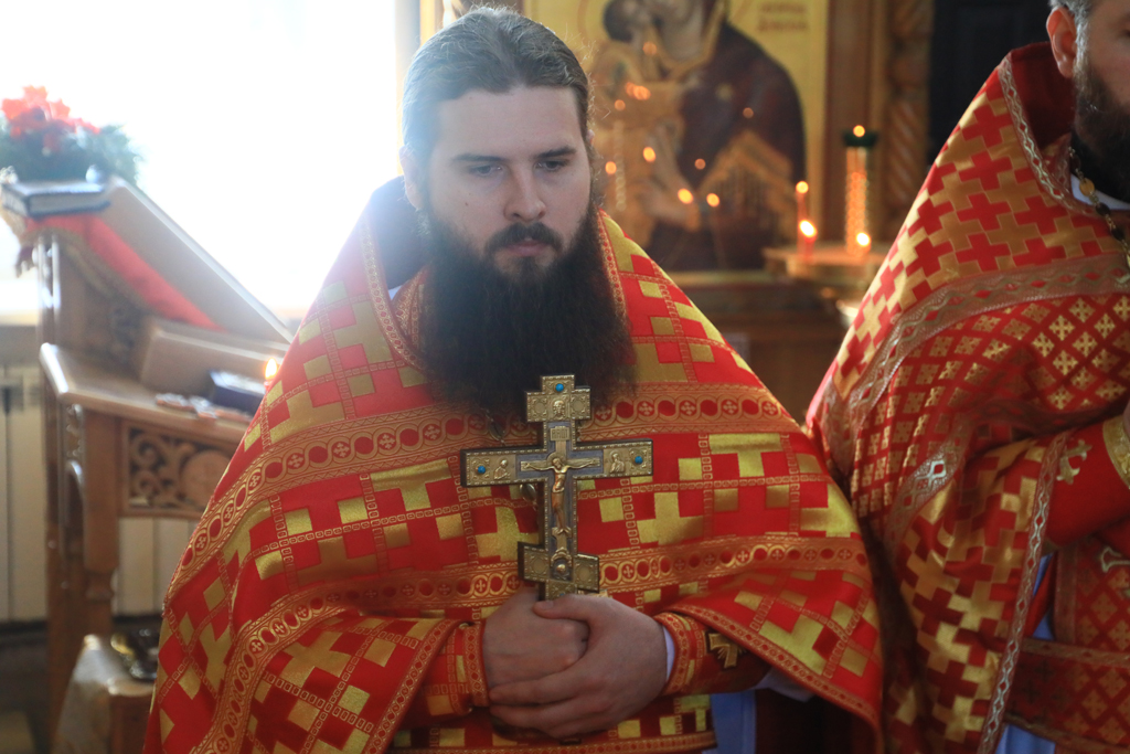 Его Преосвященству сослужили благочинный приходов Новошахтинского округа, настоятель храма протоиерей Роман Амплеев, благочинный приходов Александровск-Грушевского округа протоиерей Сергий Яценко, настоятель храма Архистратига Михаила города Новошахтинска иерей Сергий Сидоров, настоятель храма священномученика Захарии города Новошахтинска иерей Сергий Артюшенко, настоятель храма праведного Иосифа Обручника города Шахты иерей Алексий Скосарев, диакон Трофим Осяк и диакон Андрей Трошин.