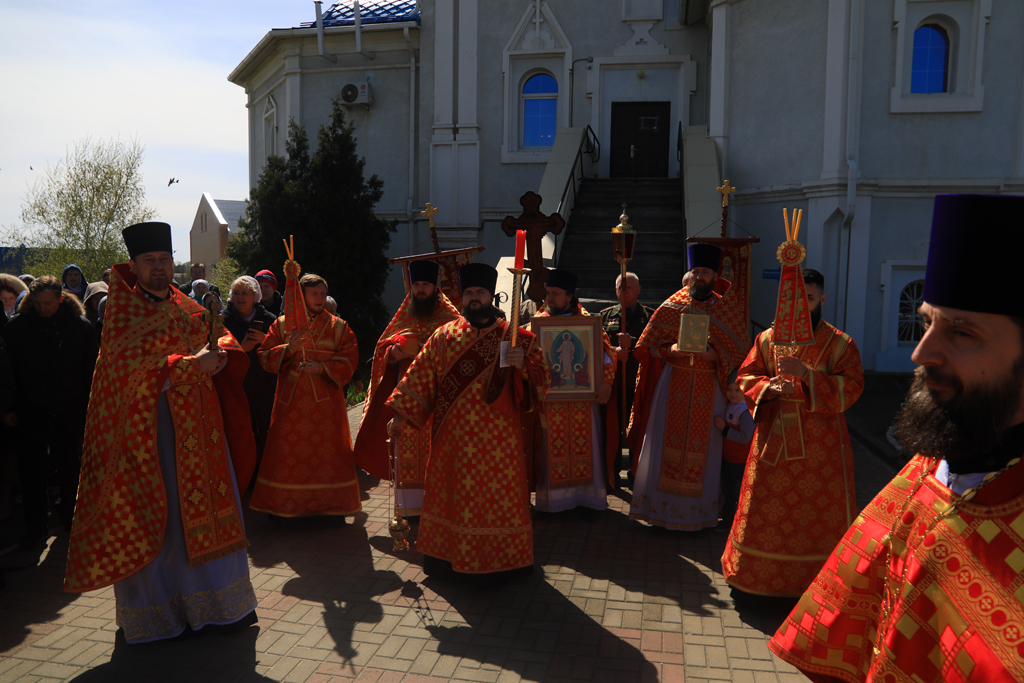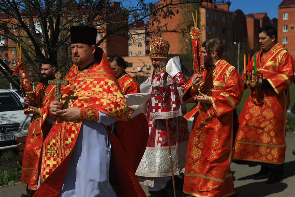 Священнослужители и все молящиеся во главе с архипастырем совершили пасхальный крестный ход вокруг храма.