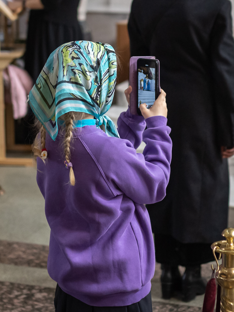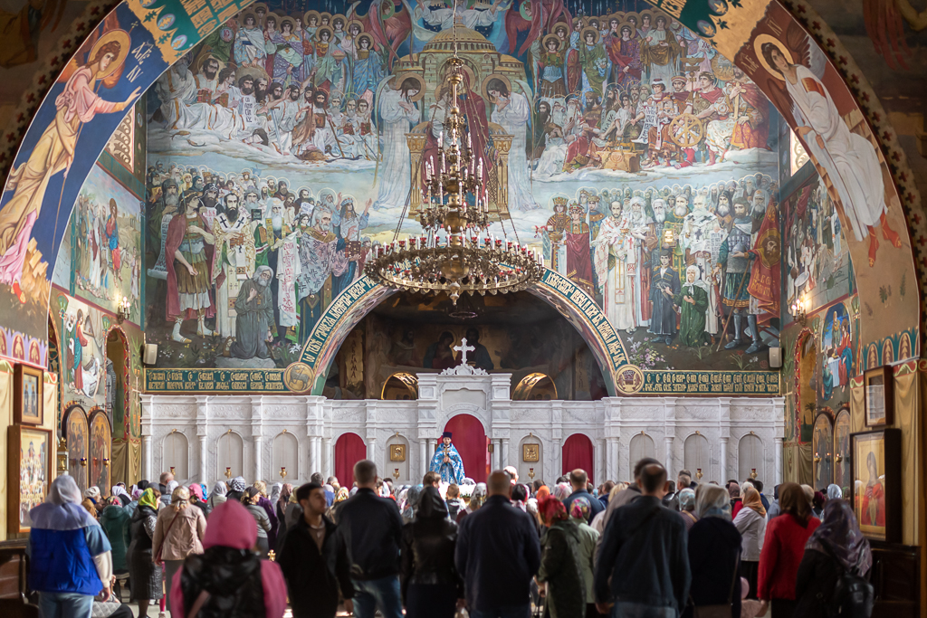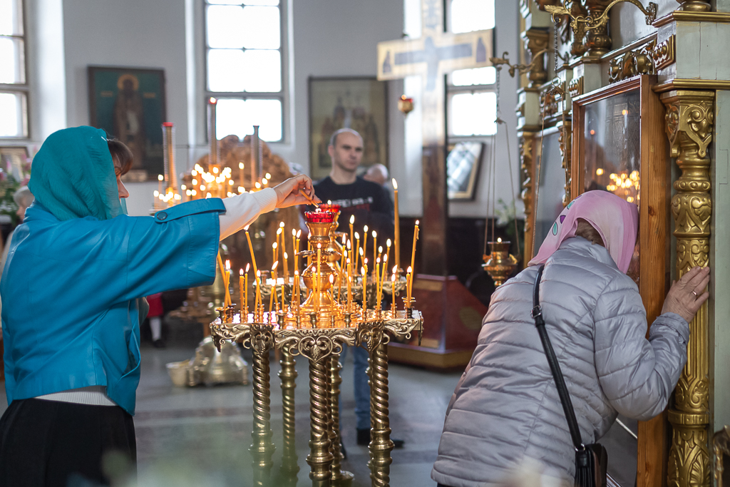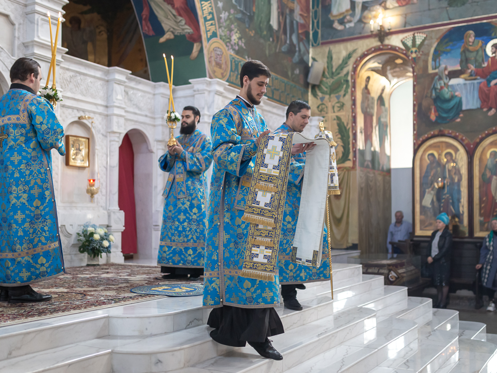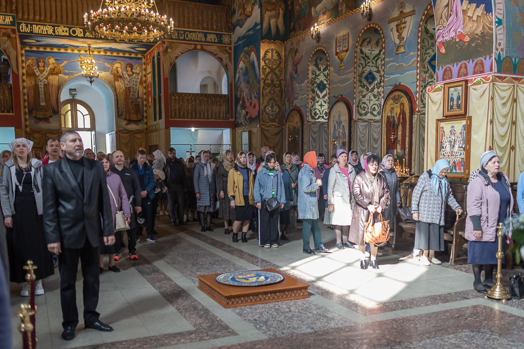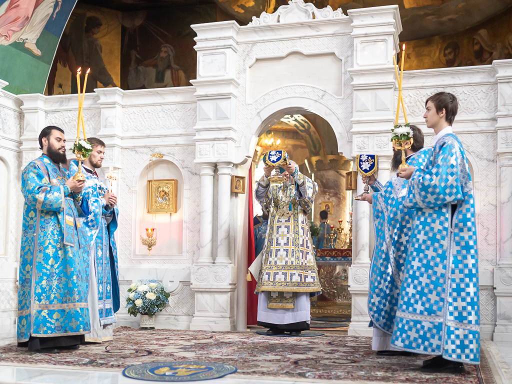 После литургии духовенство и все молящиеся совершил славление Пресвятой Богородице перед Ее праздничной иконой.