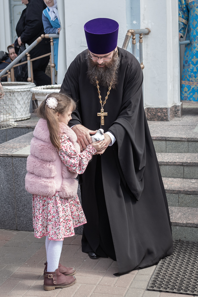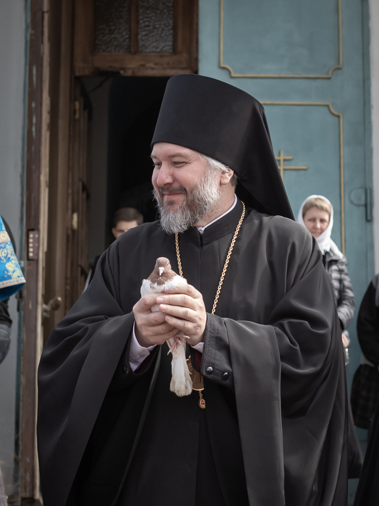 По традиции праздника, по совершении богослужения, с паперти кафедрального собора архипастырь вместе с прихожанами выпустил в небо голубей.