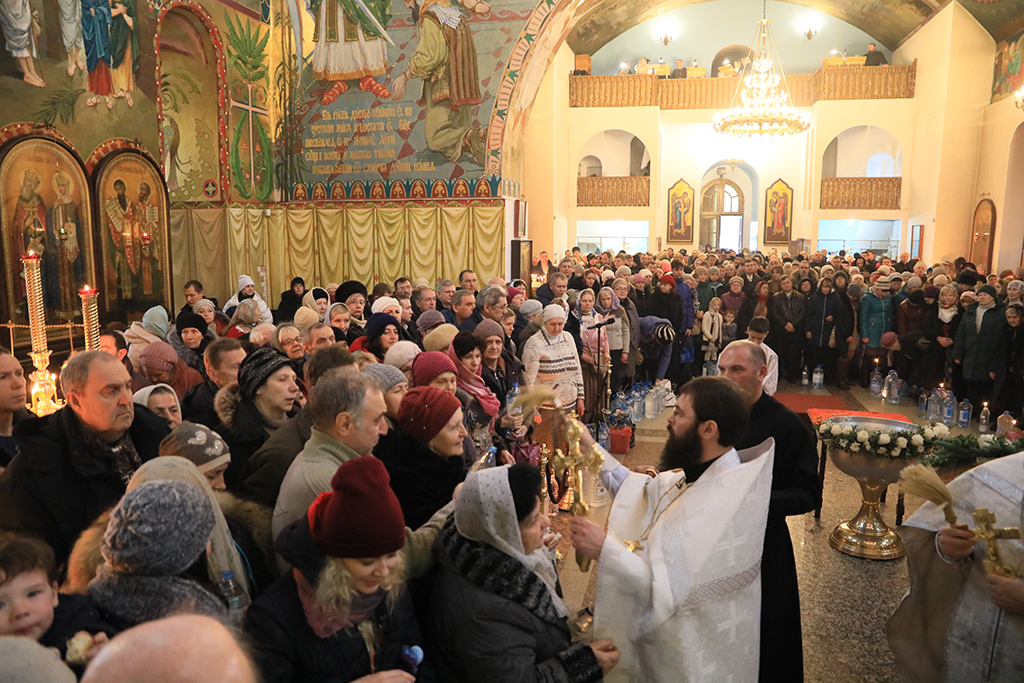 В храм прибыли многие сотни прихожан, чтобы молитвенно встретить праздник и набрать крещенской воды, освящаемой в эти дни особым великим чином.