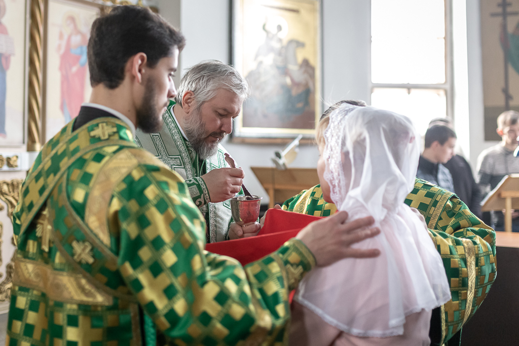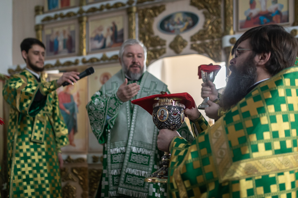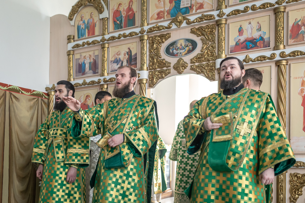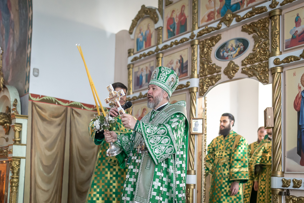 Его Преосвященству сослужили настоятель собора иерей Александр Теличкин, иерей Даниил Зырянов, диакон Трофим Осяк и диакон Никита Осипов.