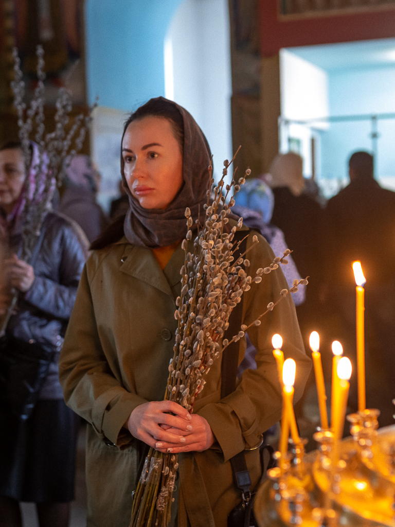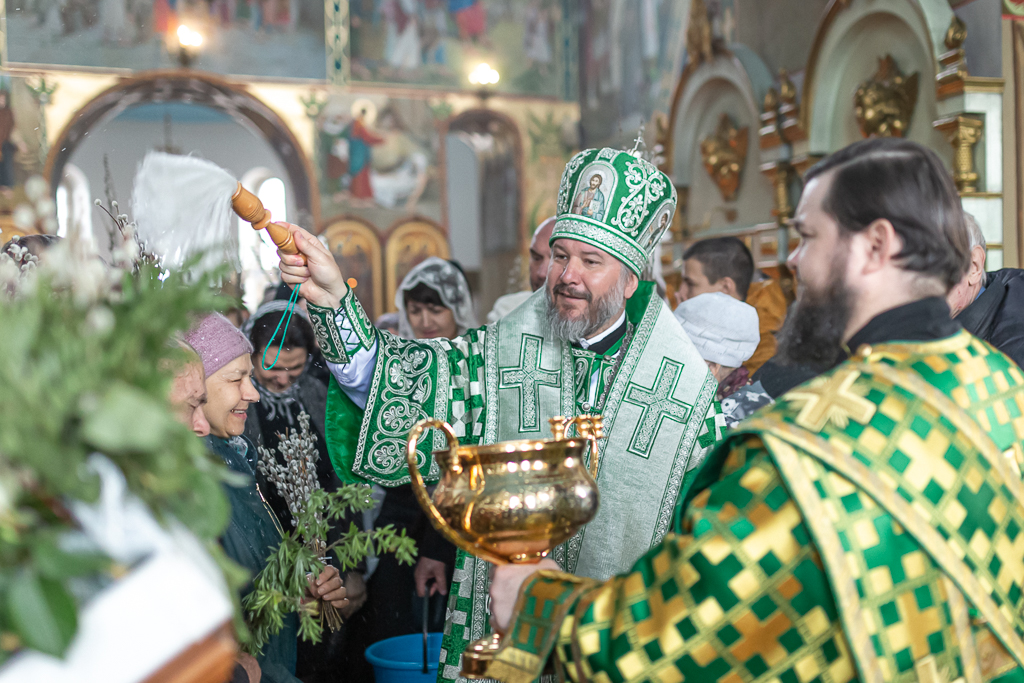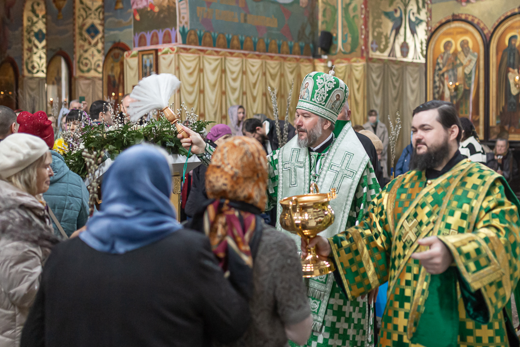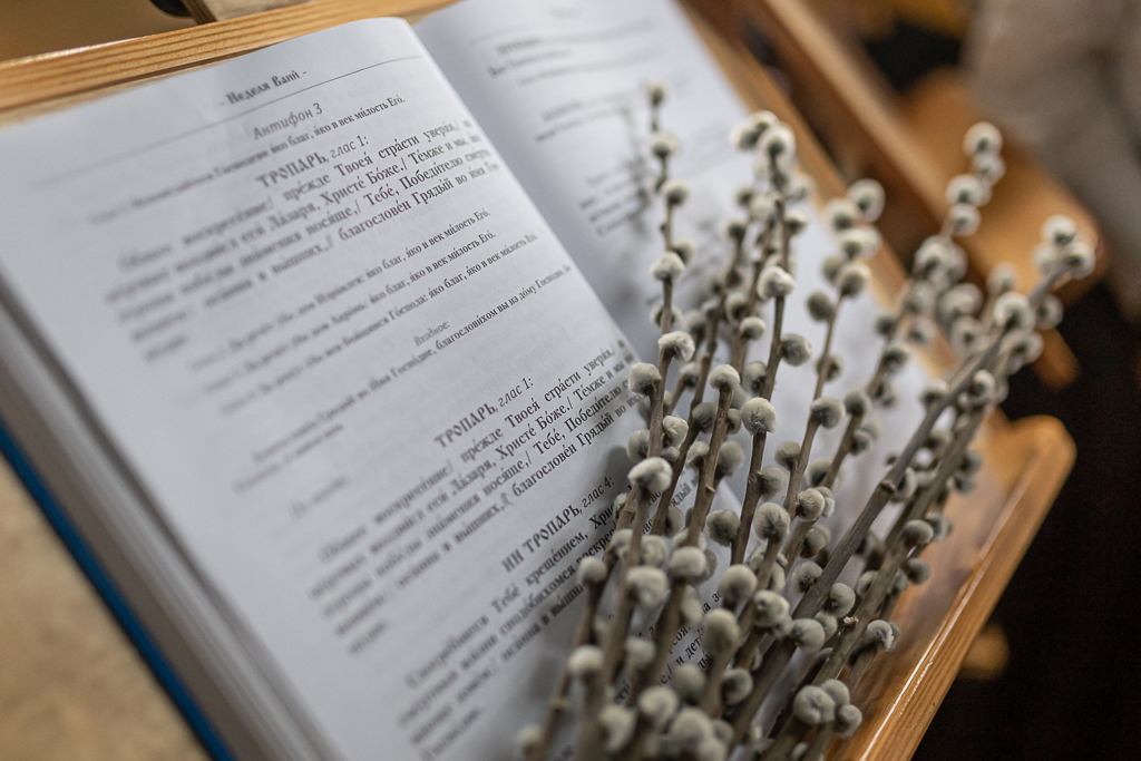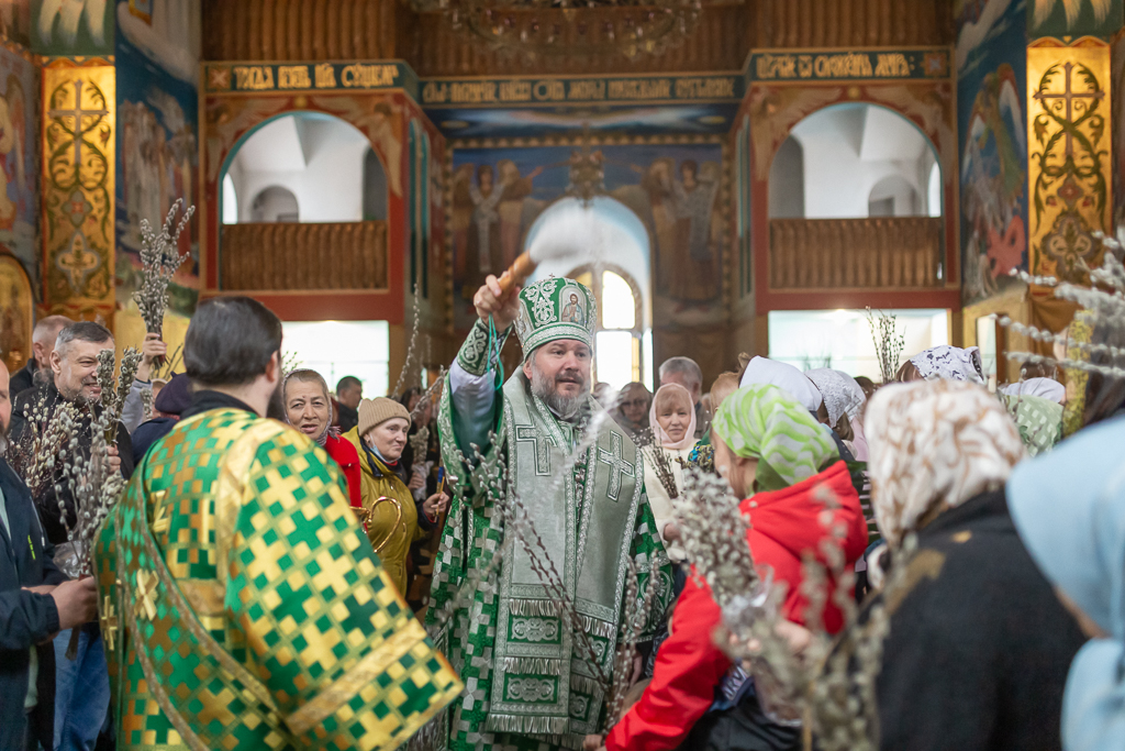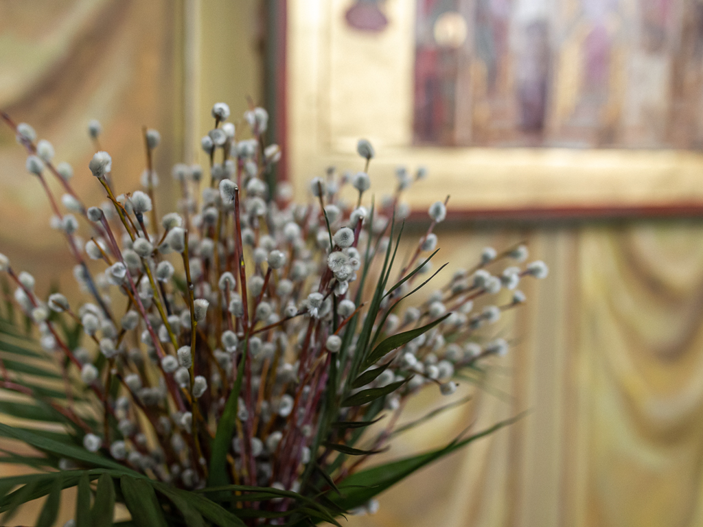 По окончании Литургии епископ Симон совершил чин освящения верб и ваий.