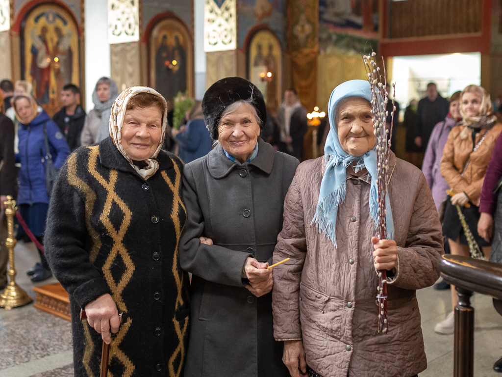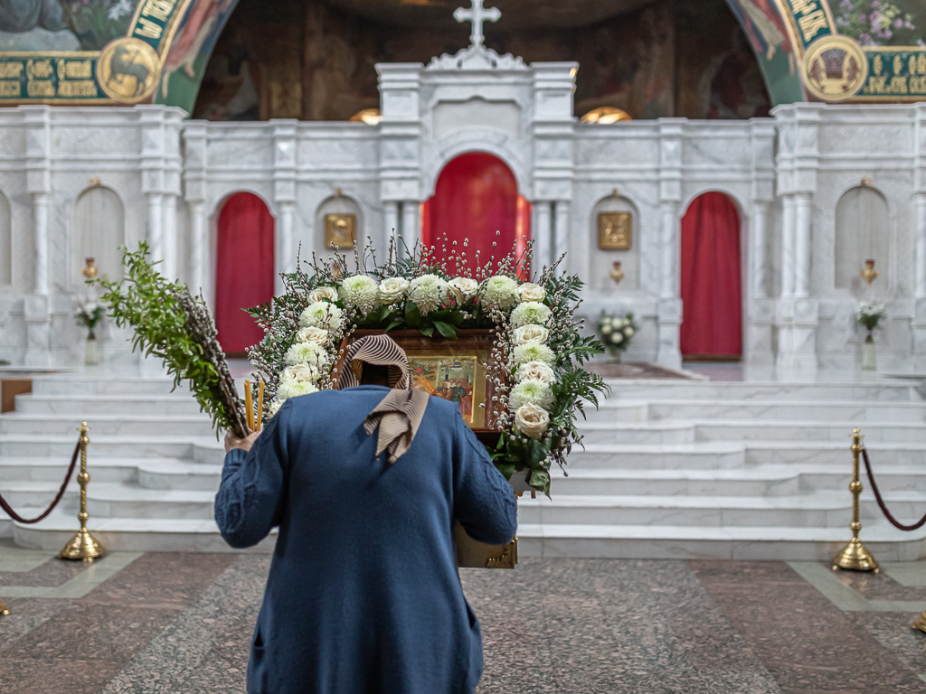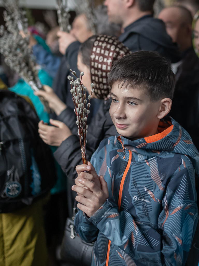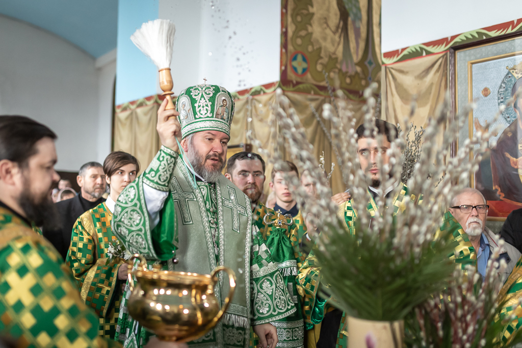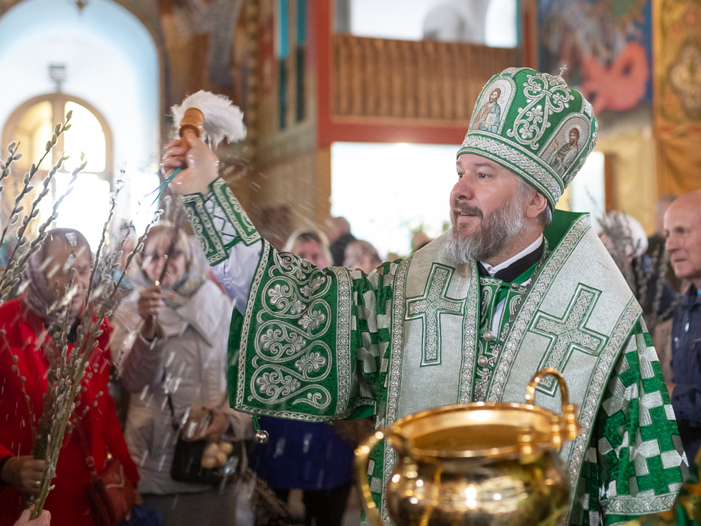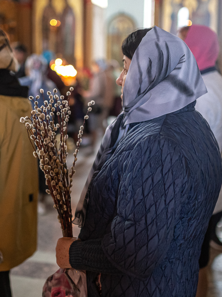 По окончании Литургии епископ Симон совершил чин освящения верб и ваий.