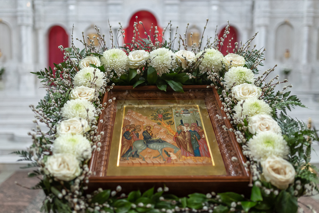 В этот день, как и накануне на всенощном бдении, совершается освящение ваий (пальмовых ветвей), в память о том, что жители Иерусалима встречали Господа с пальмовыми ветвями в руках. На Руси праздник получил название Вербного воскресенья, потому что у нас верба ранее других деревьев дает почки.