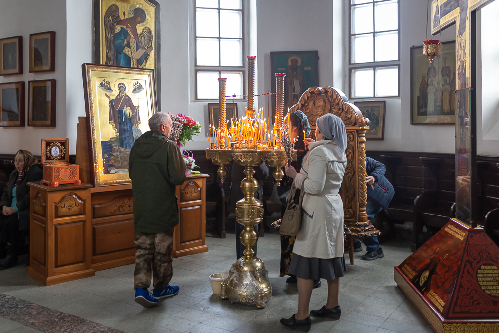 По завершении богослужения духовенство совершило славление перед иконой праздника.