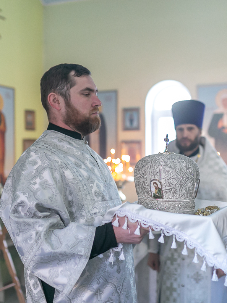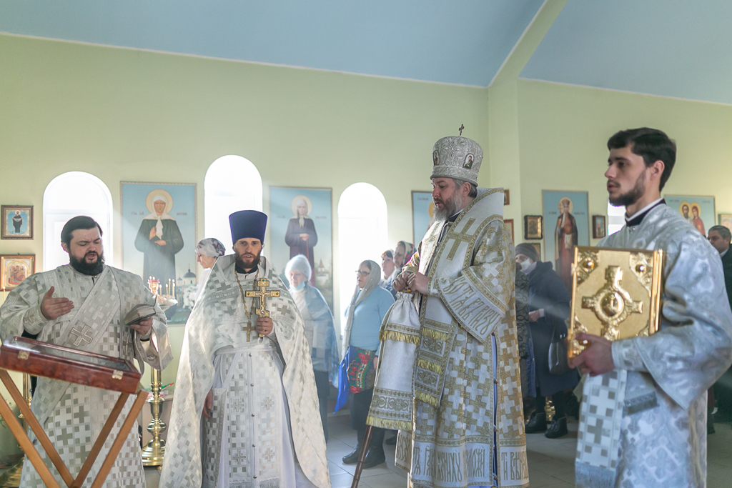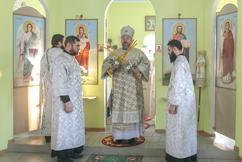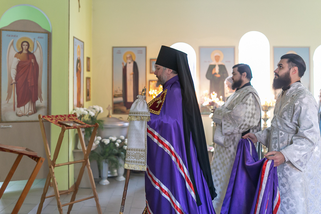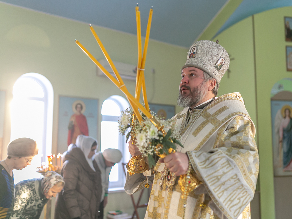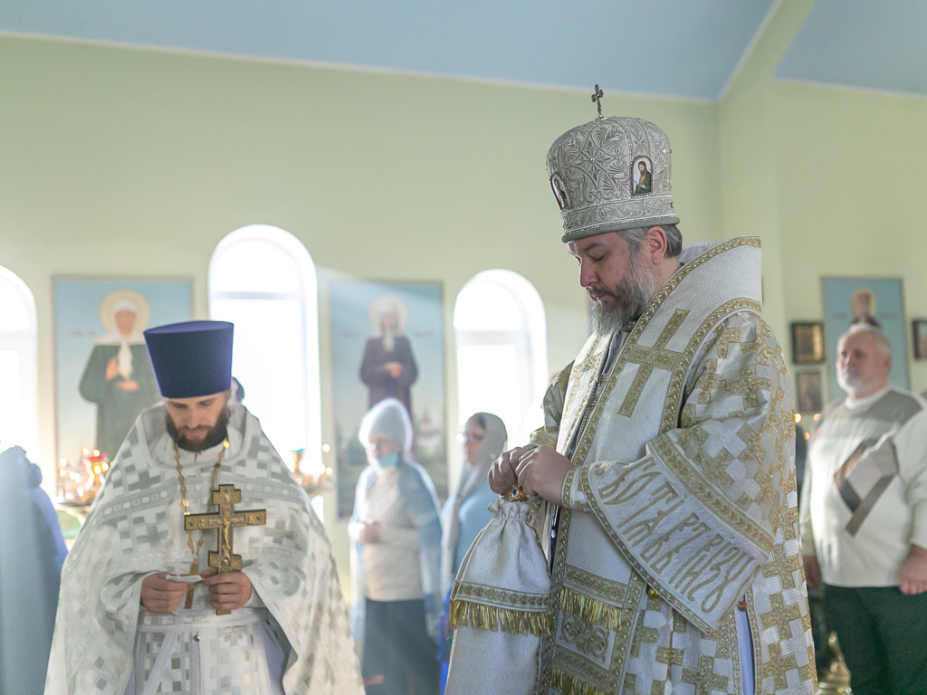 Его Преосвященству сослужили настоятель храма иерей Сергий Болоцков и диакон Трофим Осяк.