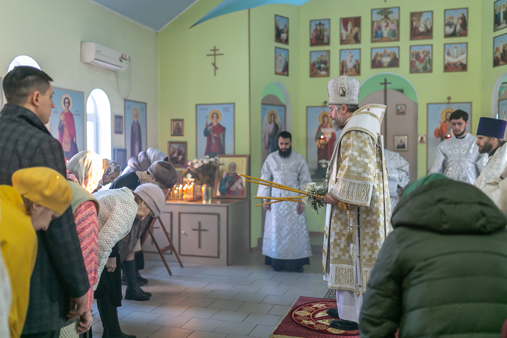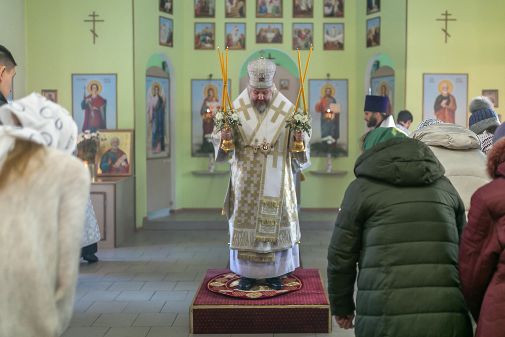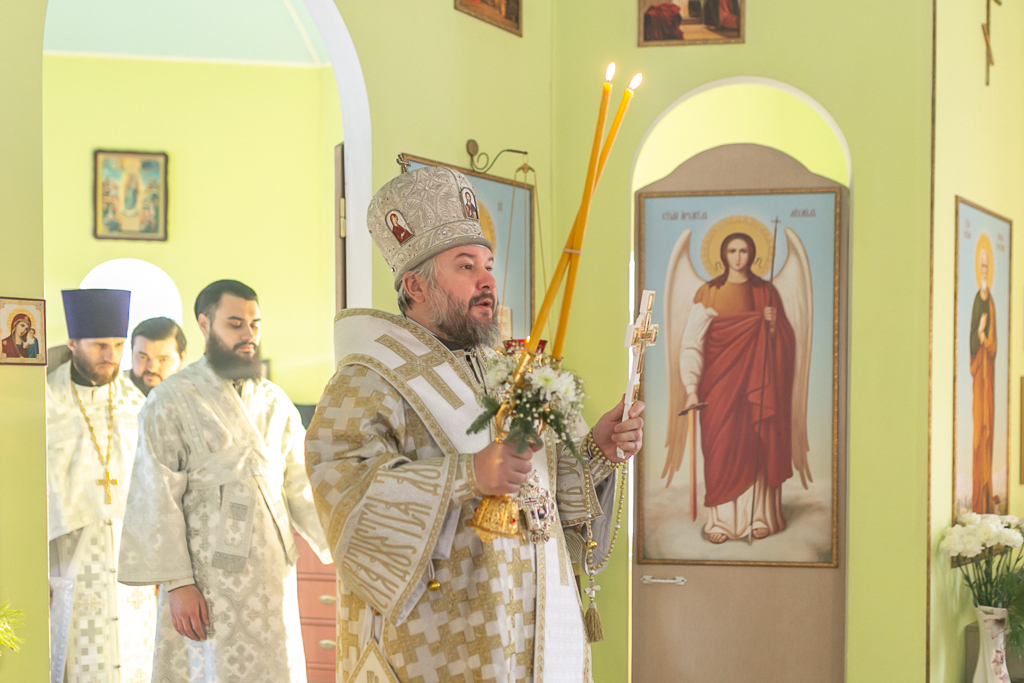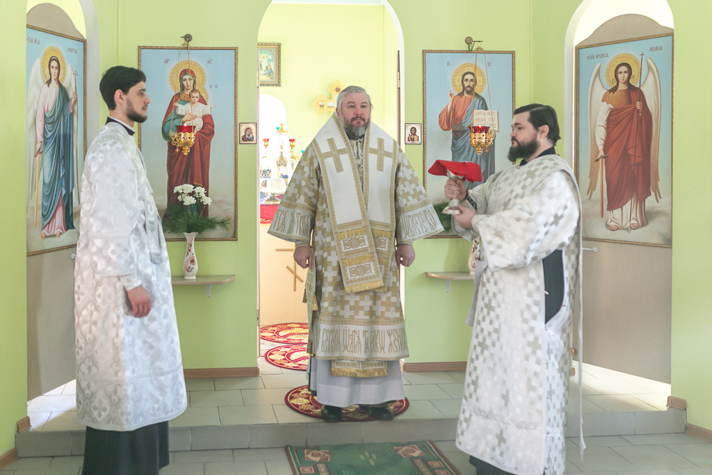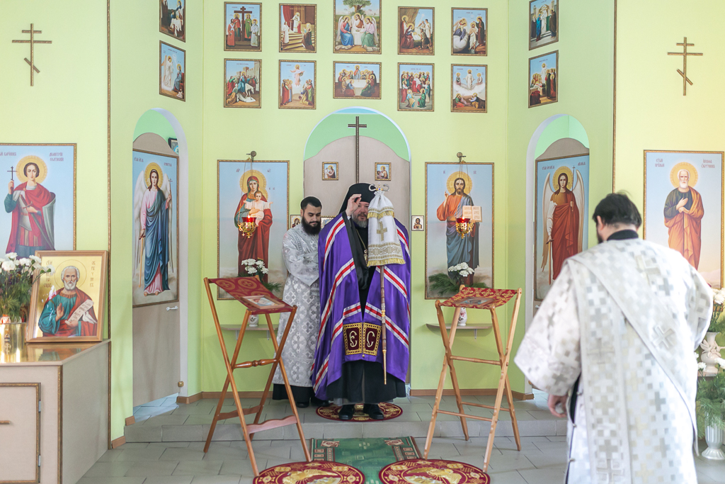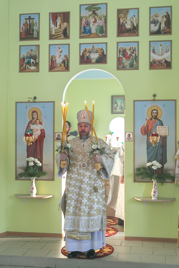 Его Преосвященству сослужили настоятель храма иерей Сергий Болоцков и диакон Трофим Осяк.