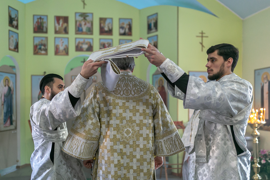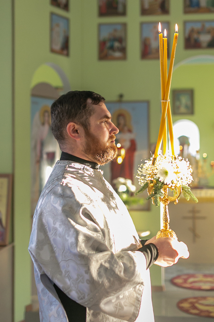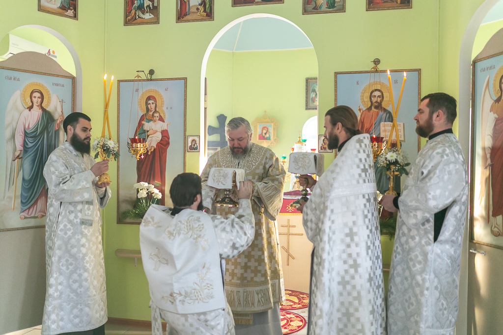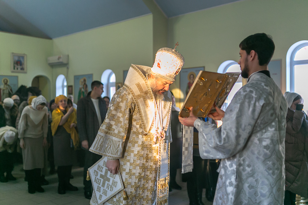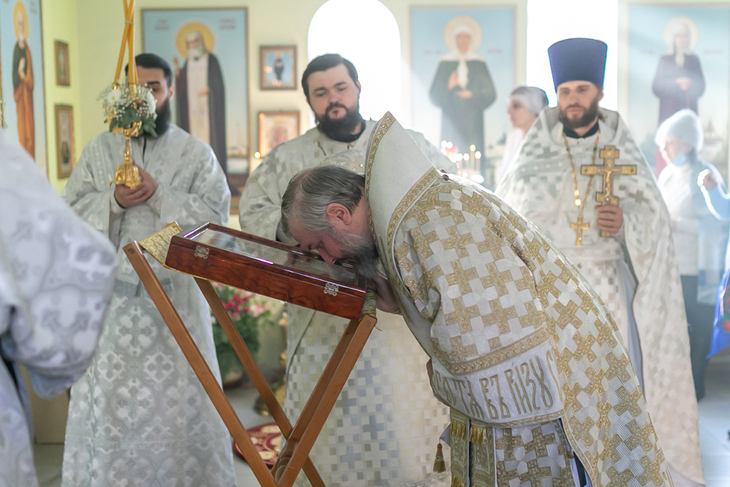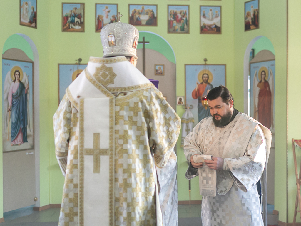 Его Преосвященству сослужили настоятель храма иерей Сергий Болоцков и диакон Трофим Осяк.