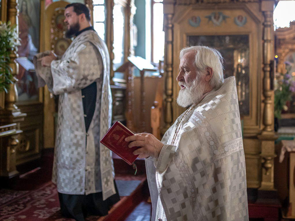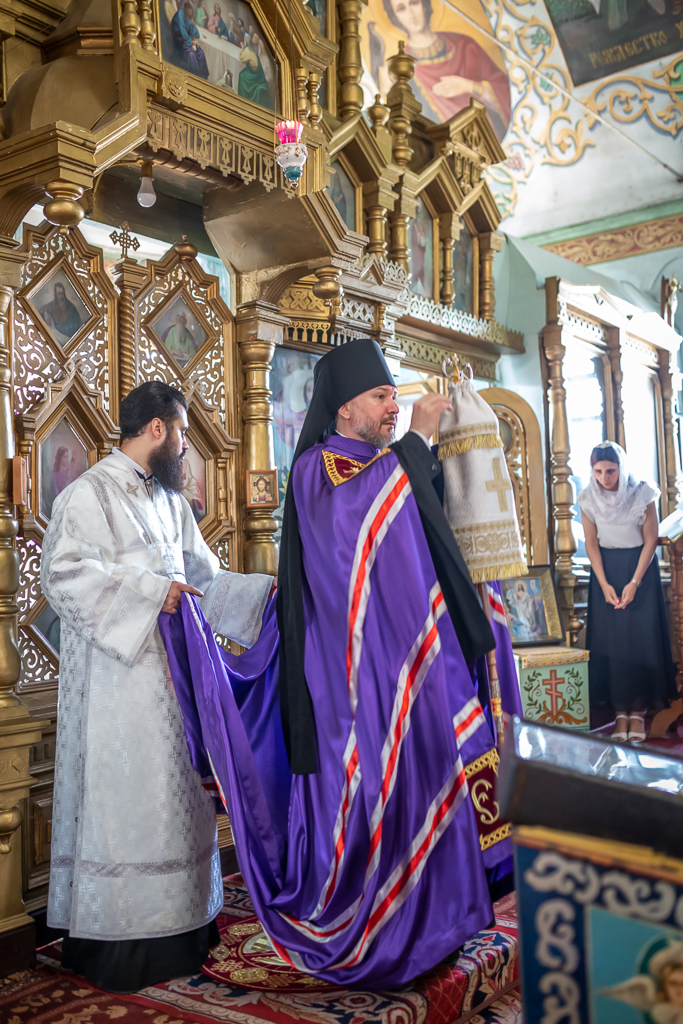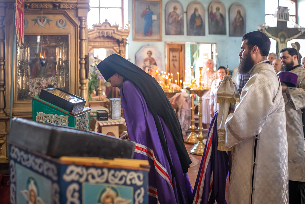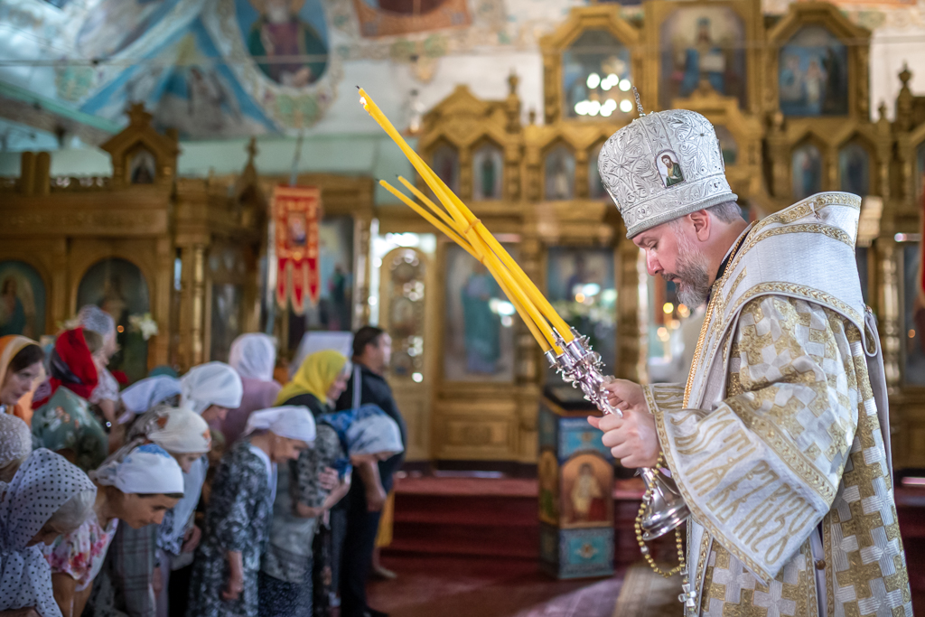 Вместе с архипастырем молились настоятель храма протоиерей Николай Уваров, диакон Трофим Осяк и прихожане храмов города.