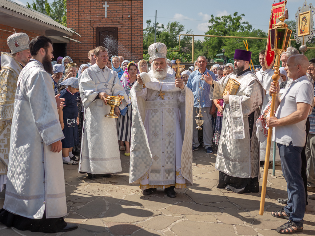 После литургии духовенство и прихожане храма во главе с архипастырем совершили крестный ход.