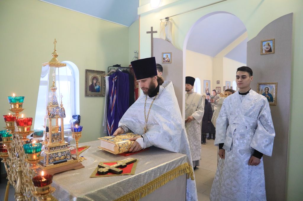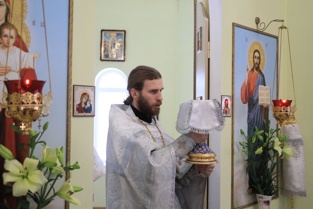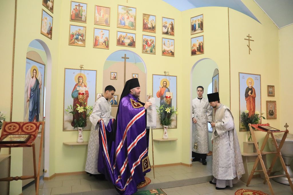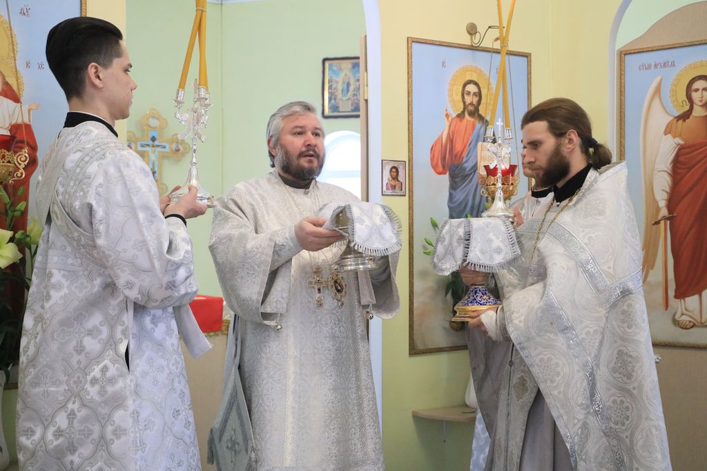 Его Преосвященству сослужили настоятель храма иерей Сергий Болоцков и иеродиакон Флавиан (Васильев).