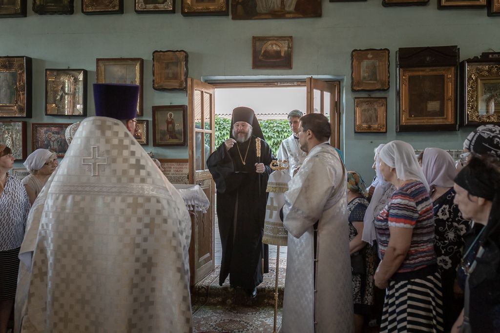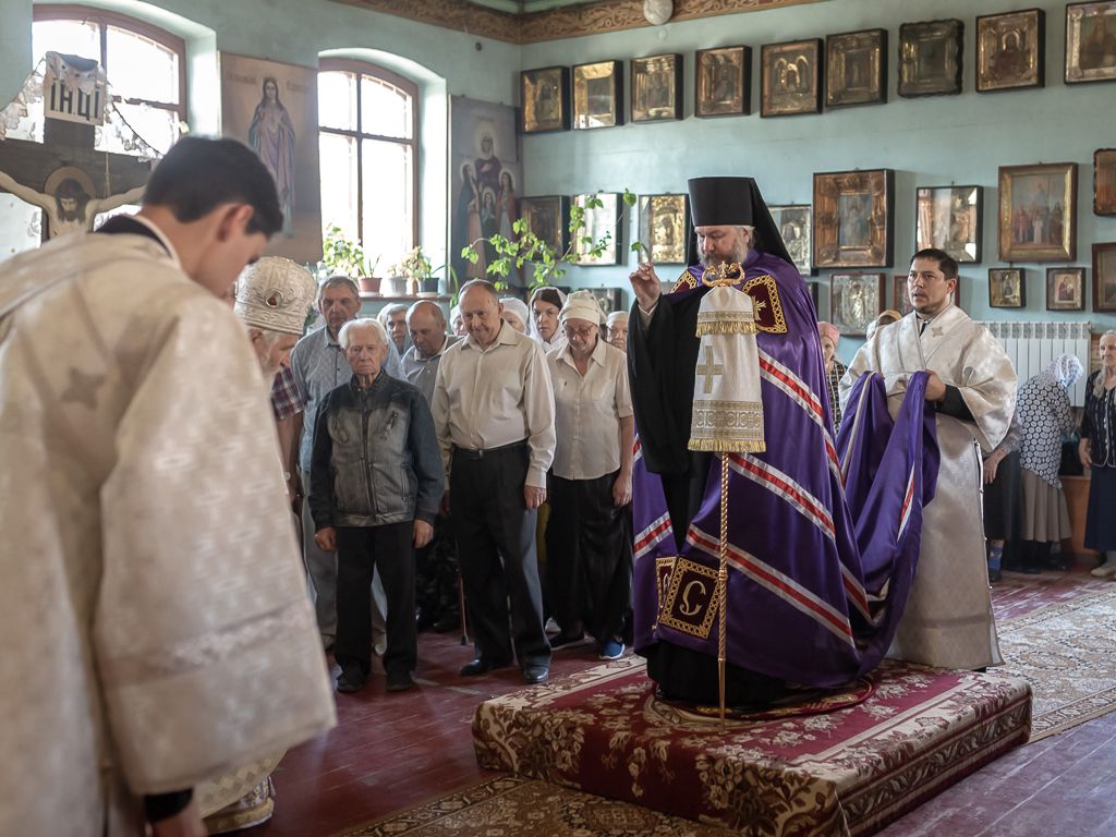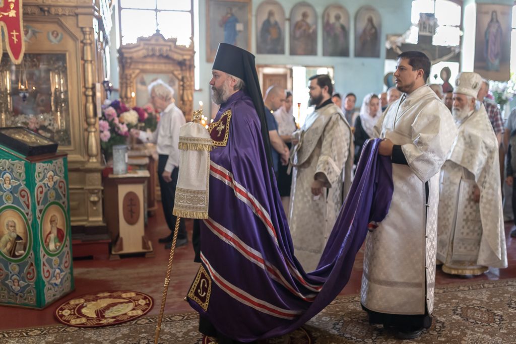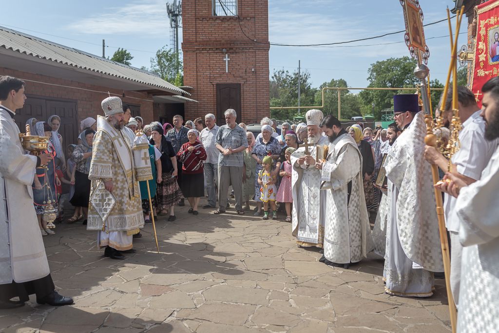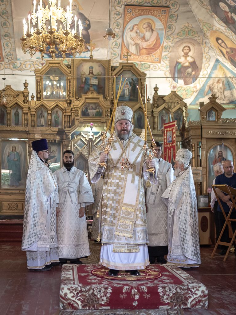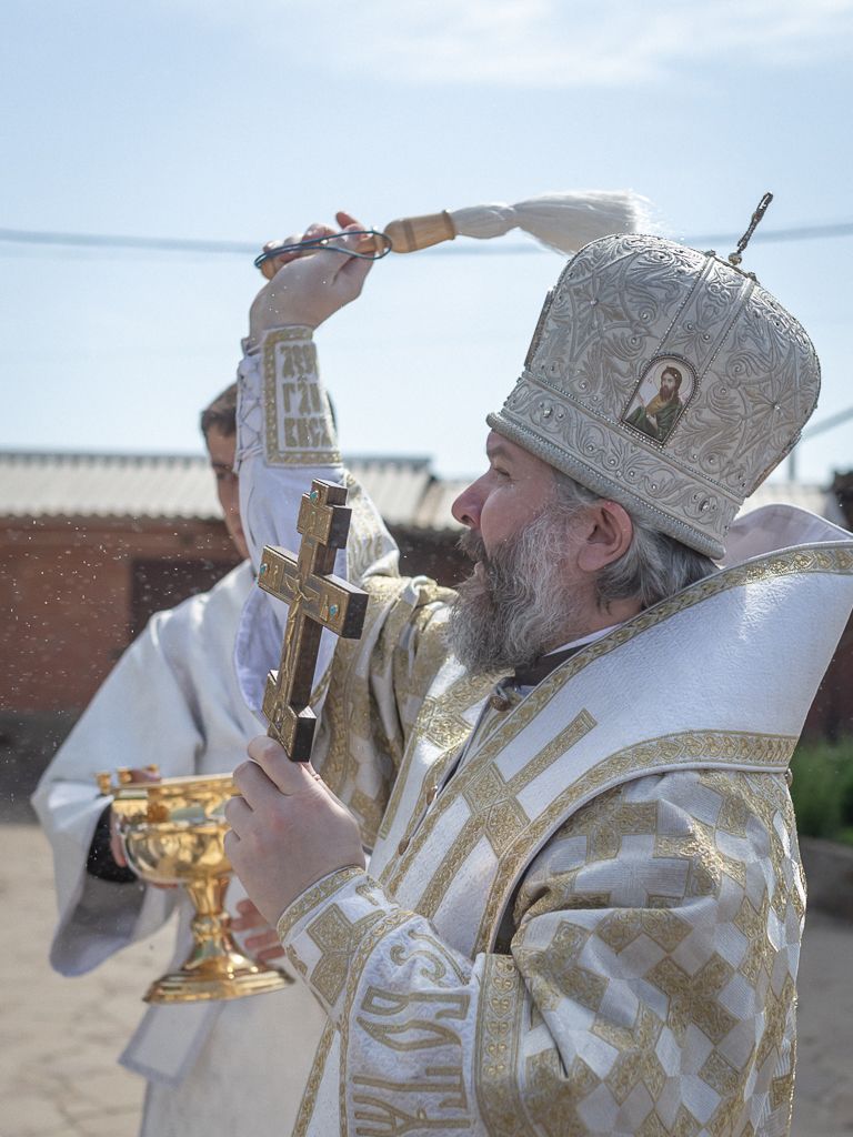 Его преосвященству сослужили настоятель храма протоиерей Николай Уваров, клирик Покровского кафедрального собора города Шахты иерей Николай Налеткин и диакон Трофим Осяк.