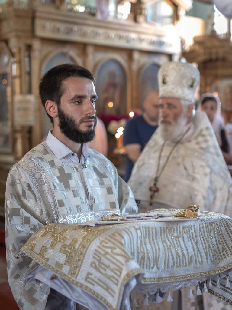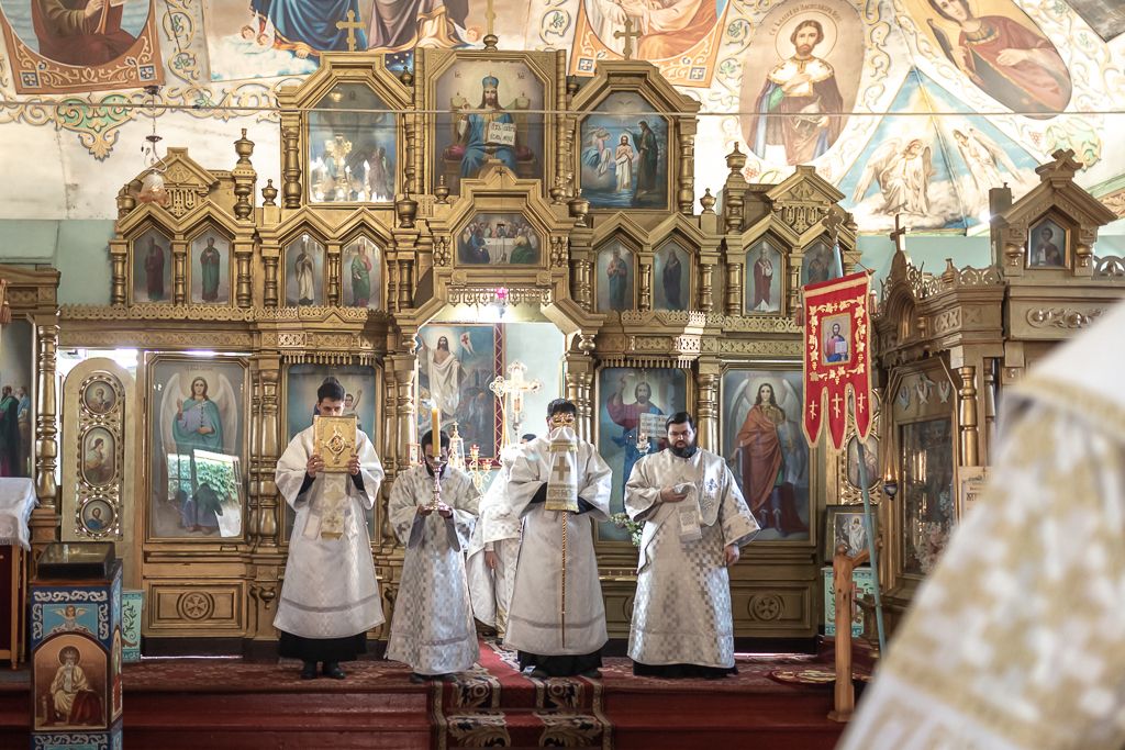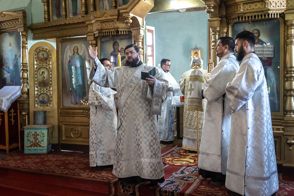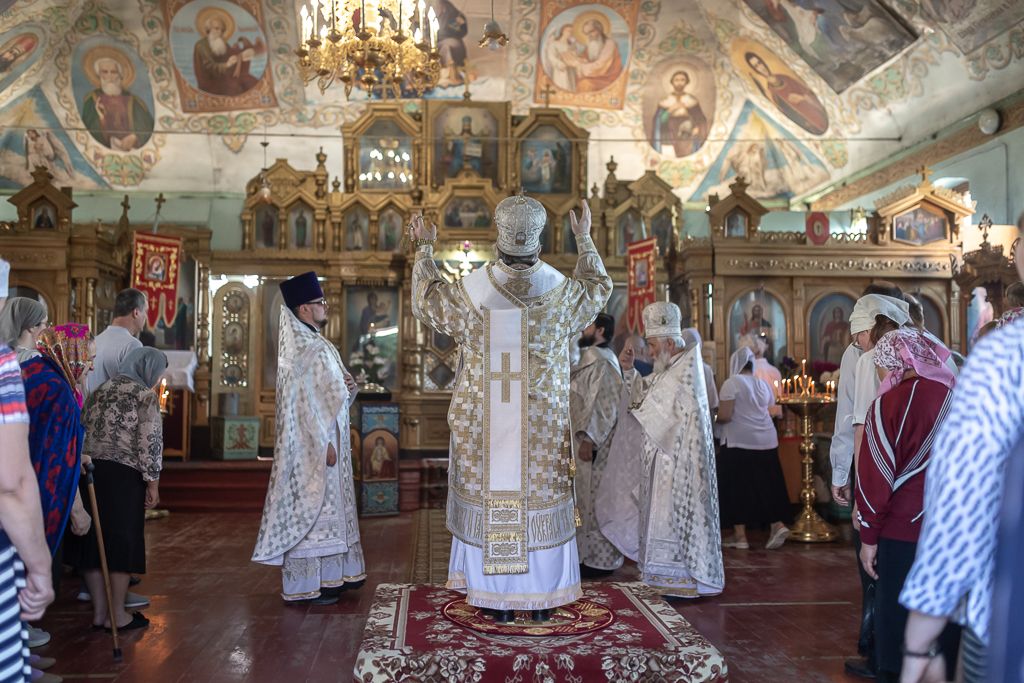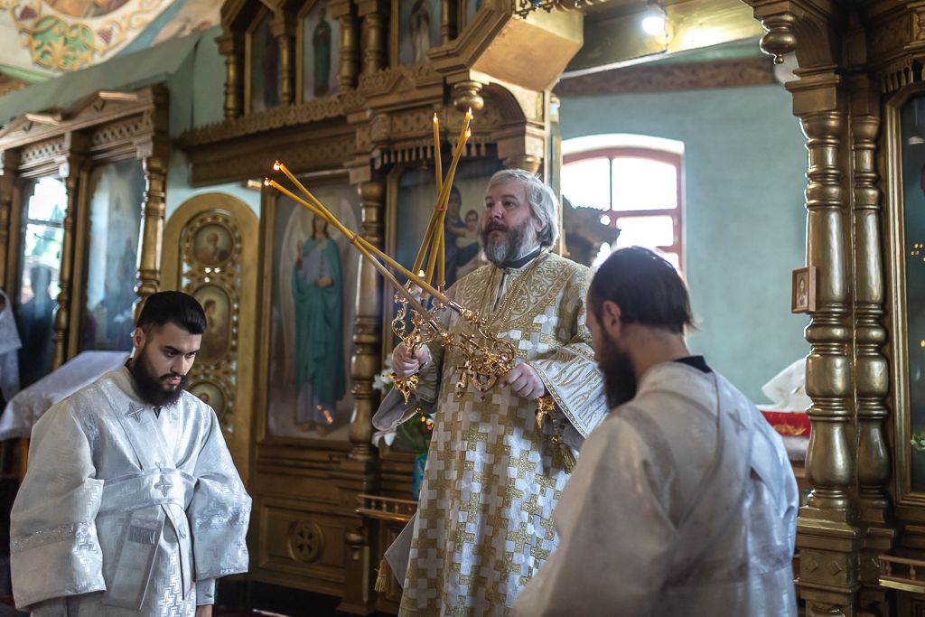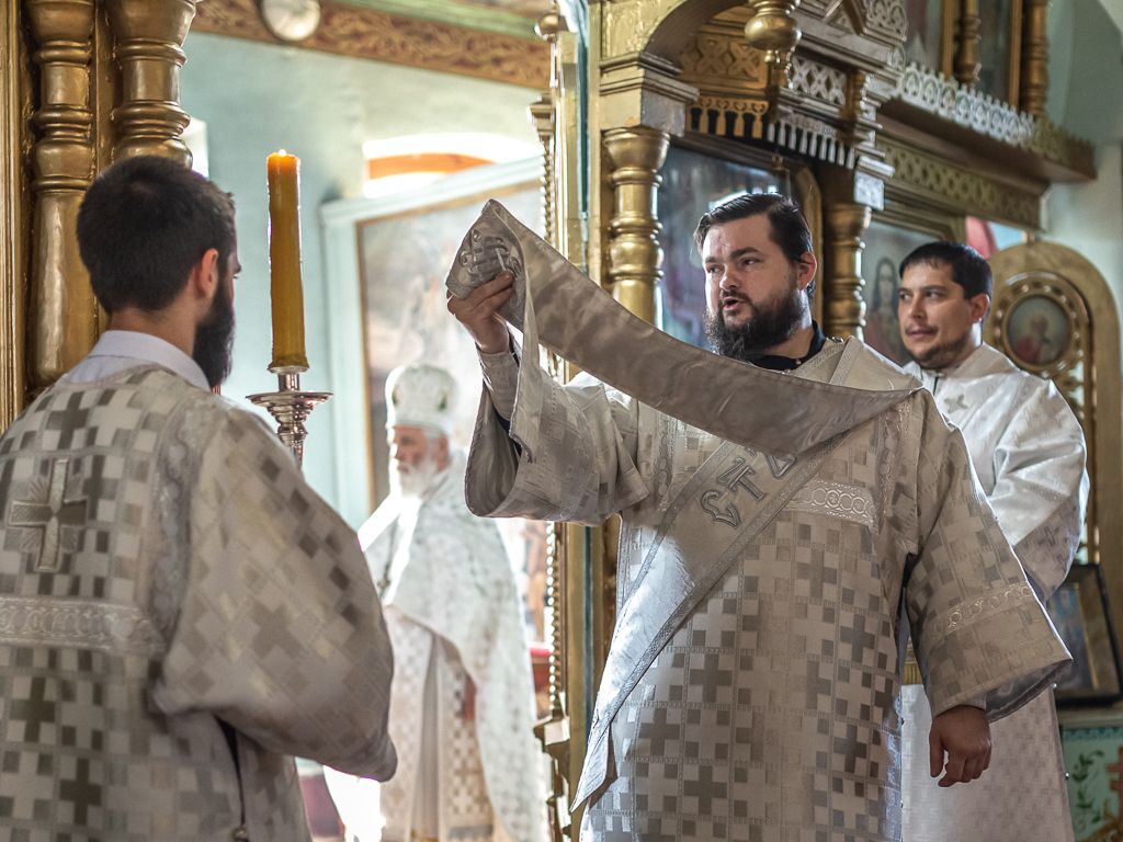 Его преосвященству сослужили настоятель храма протоиерей Николай Уваров, клирик Покровского кафедрального собора города Шахты иерей Николай Налеткин и диакон Трофим Осяк.