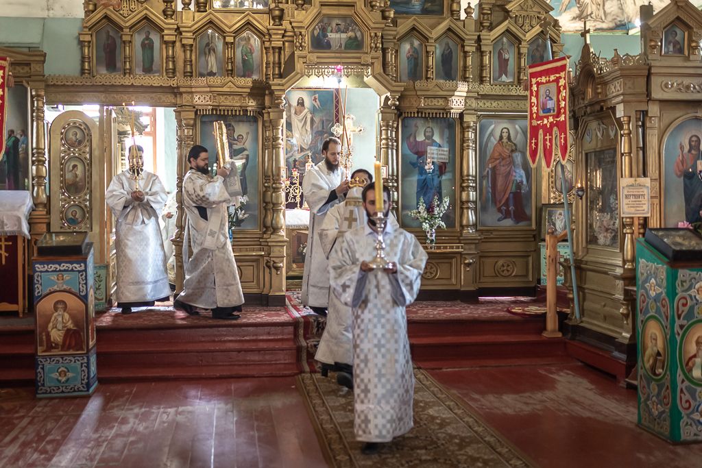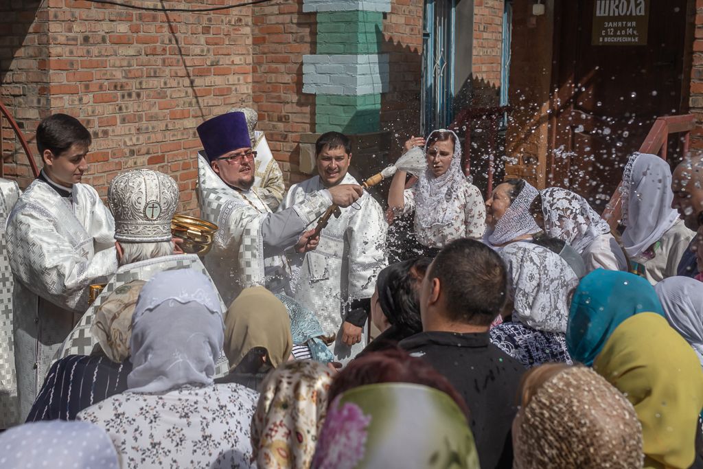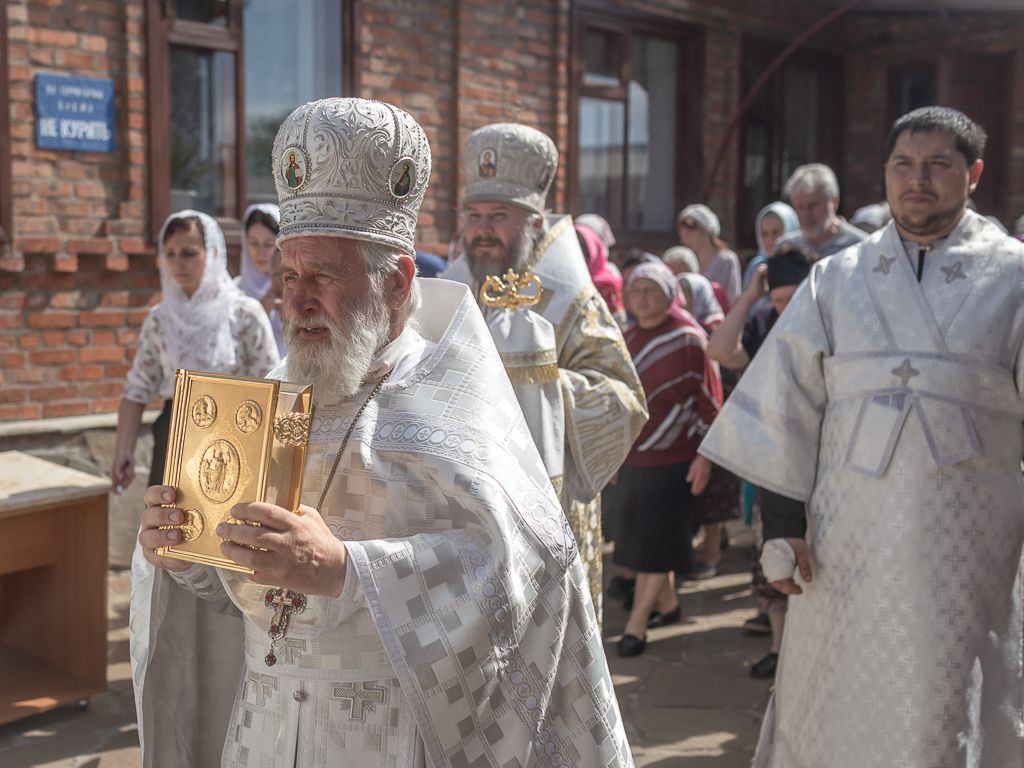 После литургии духовенство и прихожане храма во главе с архипастырем совершили крестный ход.