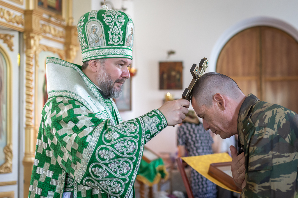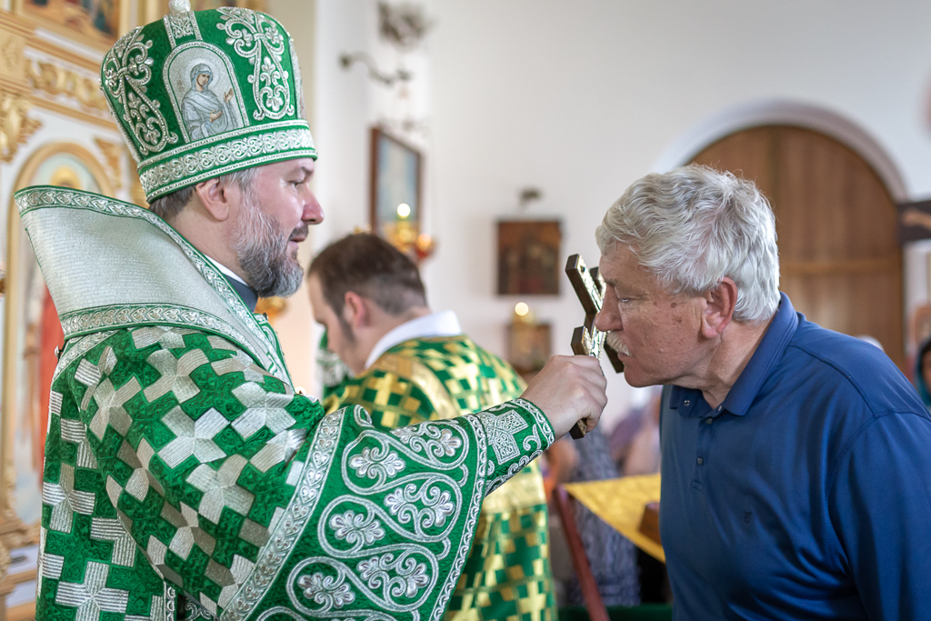 По окончании Божественной литургии владыка Симон вместе с духовенством и прихожанами прочел коленопреклоненные молитвы праздника Святой Троицы.