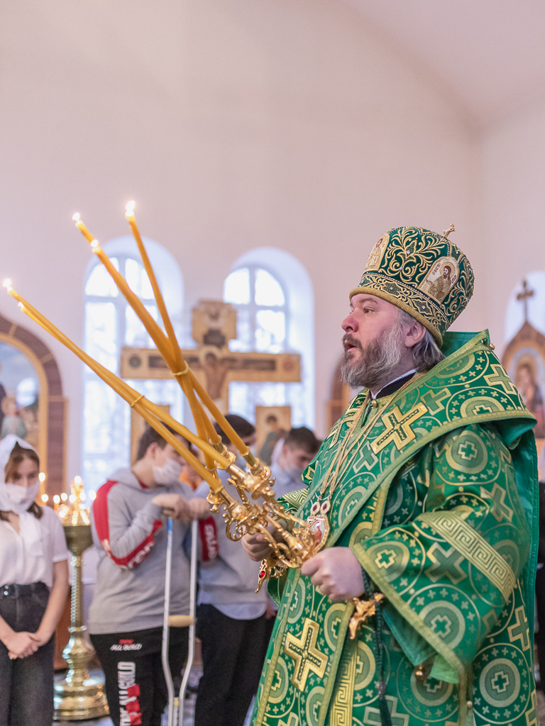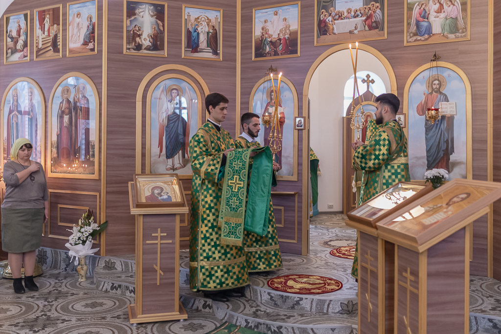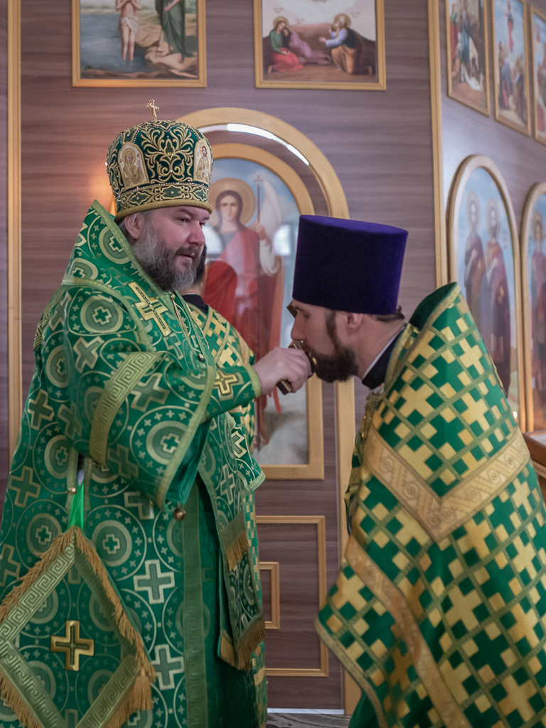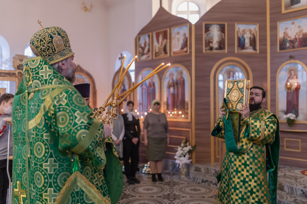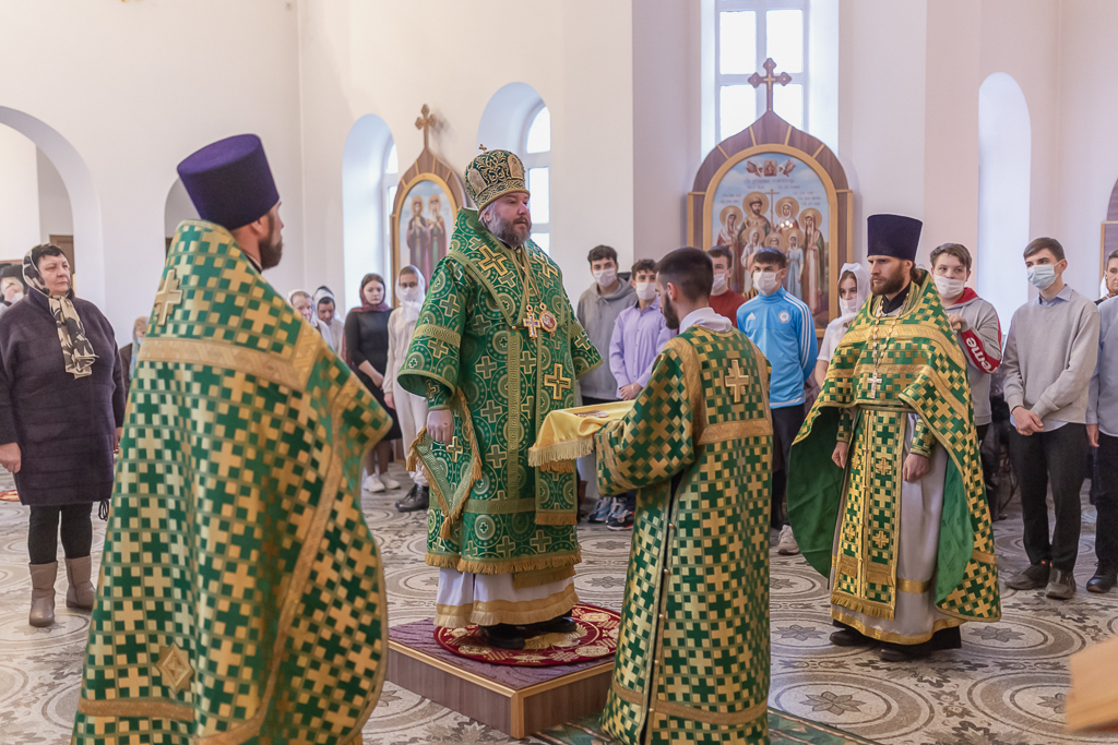За праздничным богослужением с архипастырем молились настоятель храма иерей Георгий Болоцков, настоятель храма праведного Иосифа Обручника г. Шахты иерей Сергий Болоцков, диакон Трофим Осяк и прихожане храмов города.