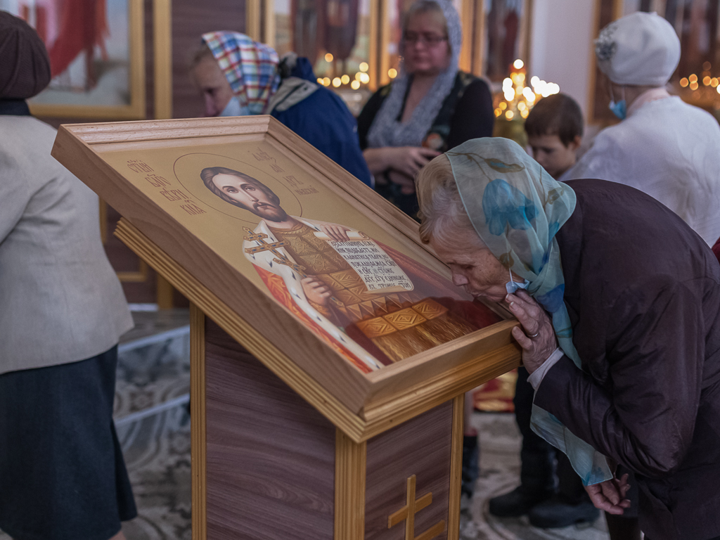 Духовенство, хор и прихожане совершили славление небесному покровителю храма перед его образом.