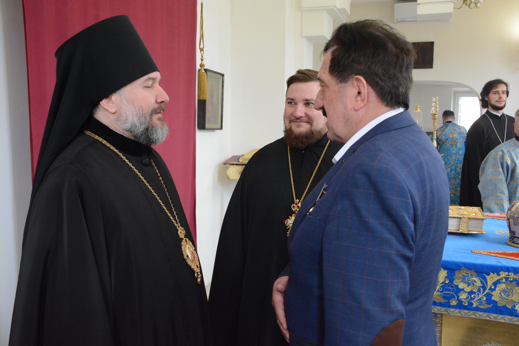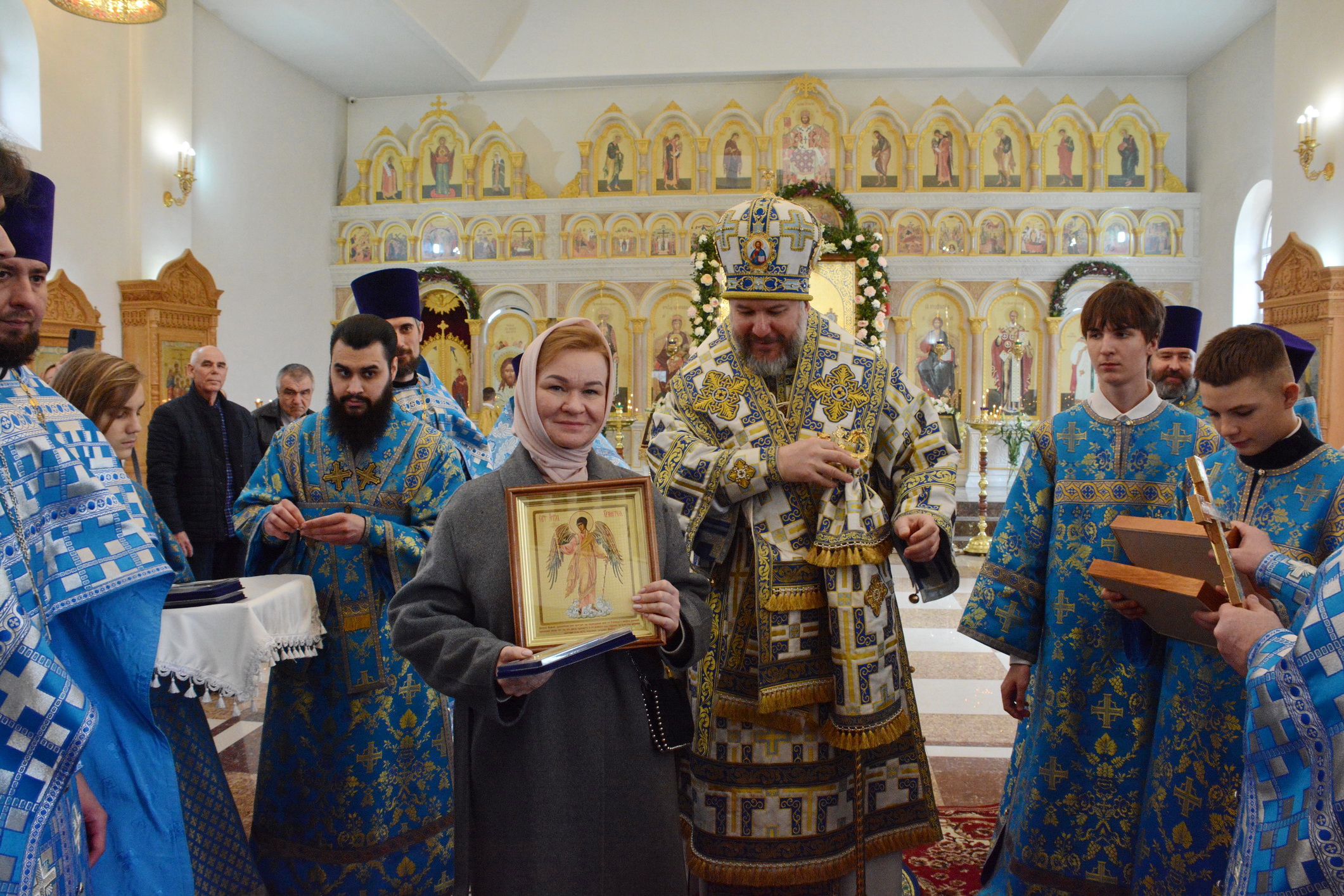 - благотворителя часовни в честь святого благоверного князя Димитрия Донского города Донецка Автандила Авдидиевича Бенделиани.По завершении богослужения владыка Симон преподал прихожанам архипастырское благословение и поздравил всех с престольным торжеством.