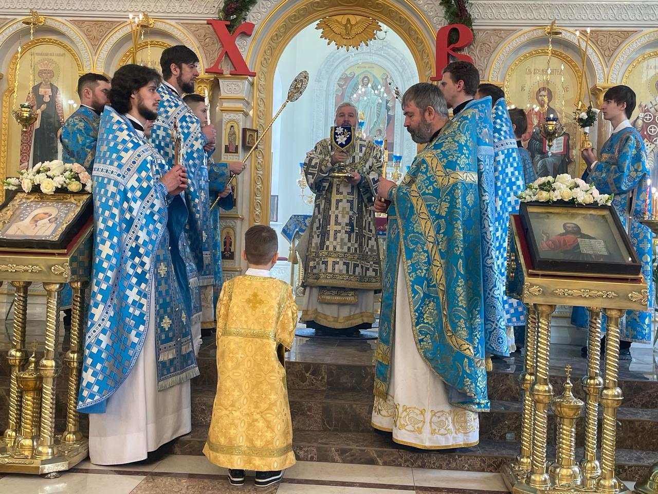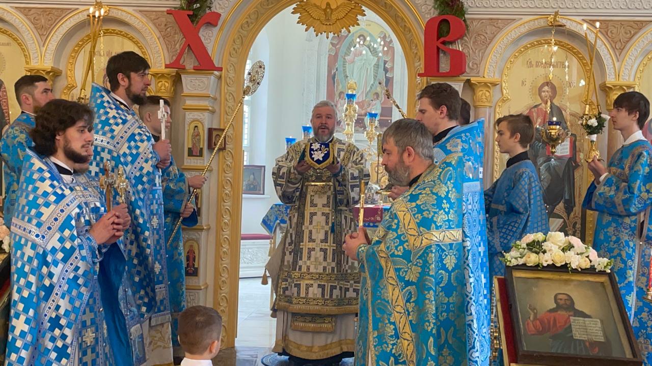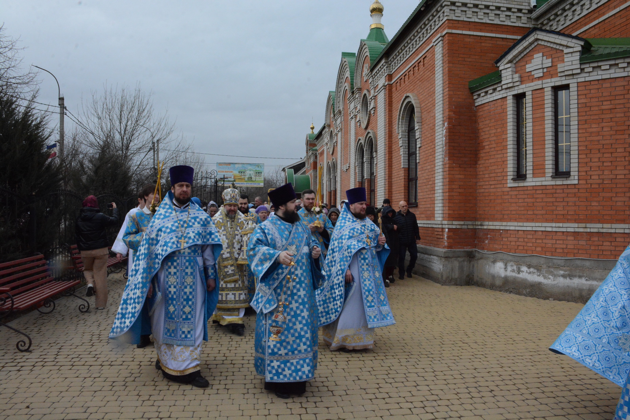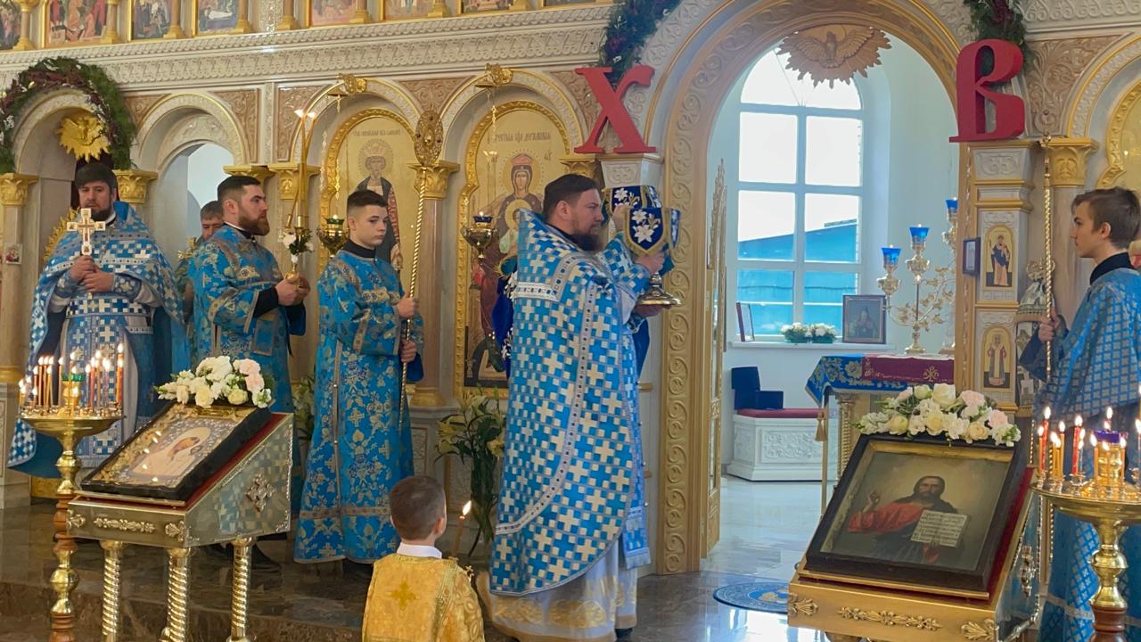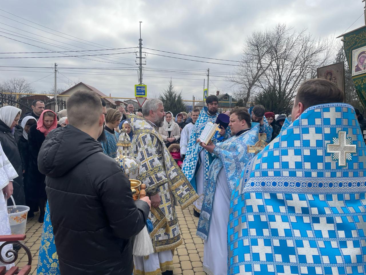 После Литургии духовенство и прихожане во главе с архипастырем совершили крестный ход вокруг храма.