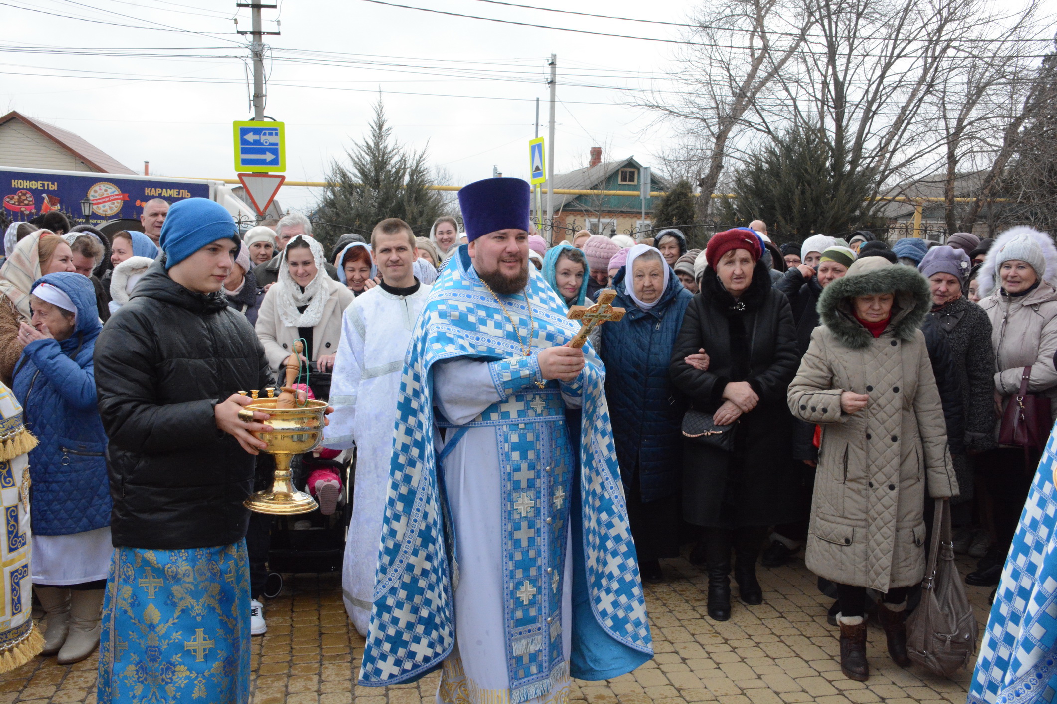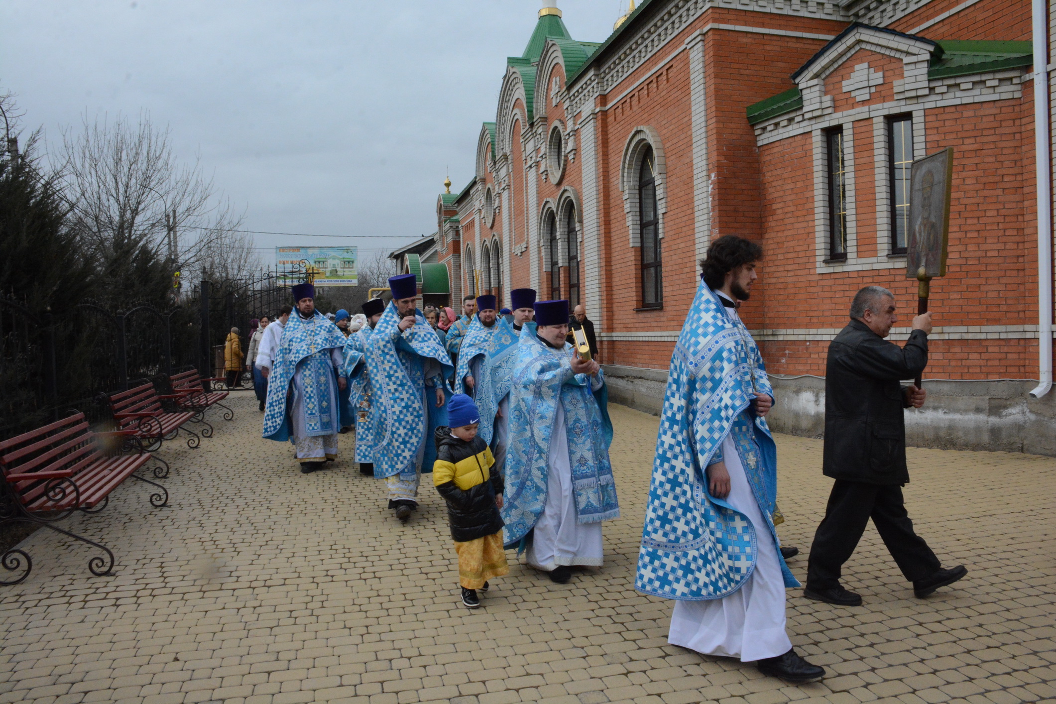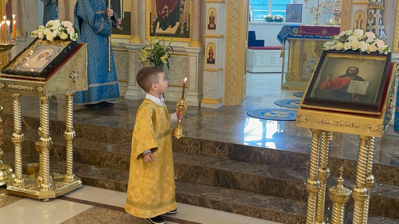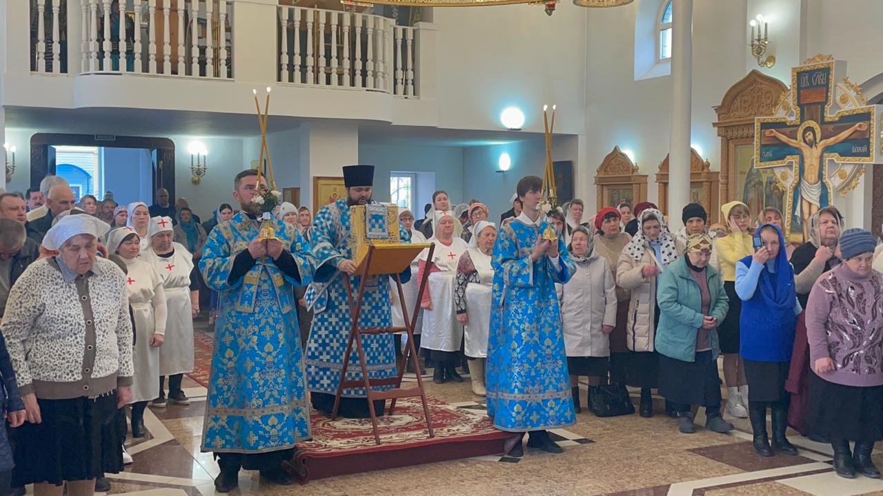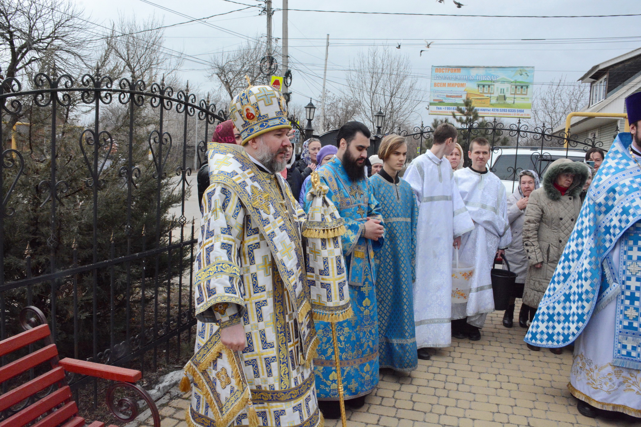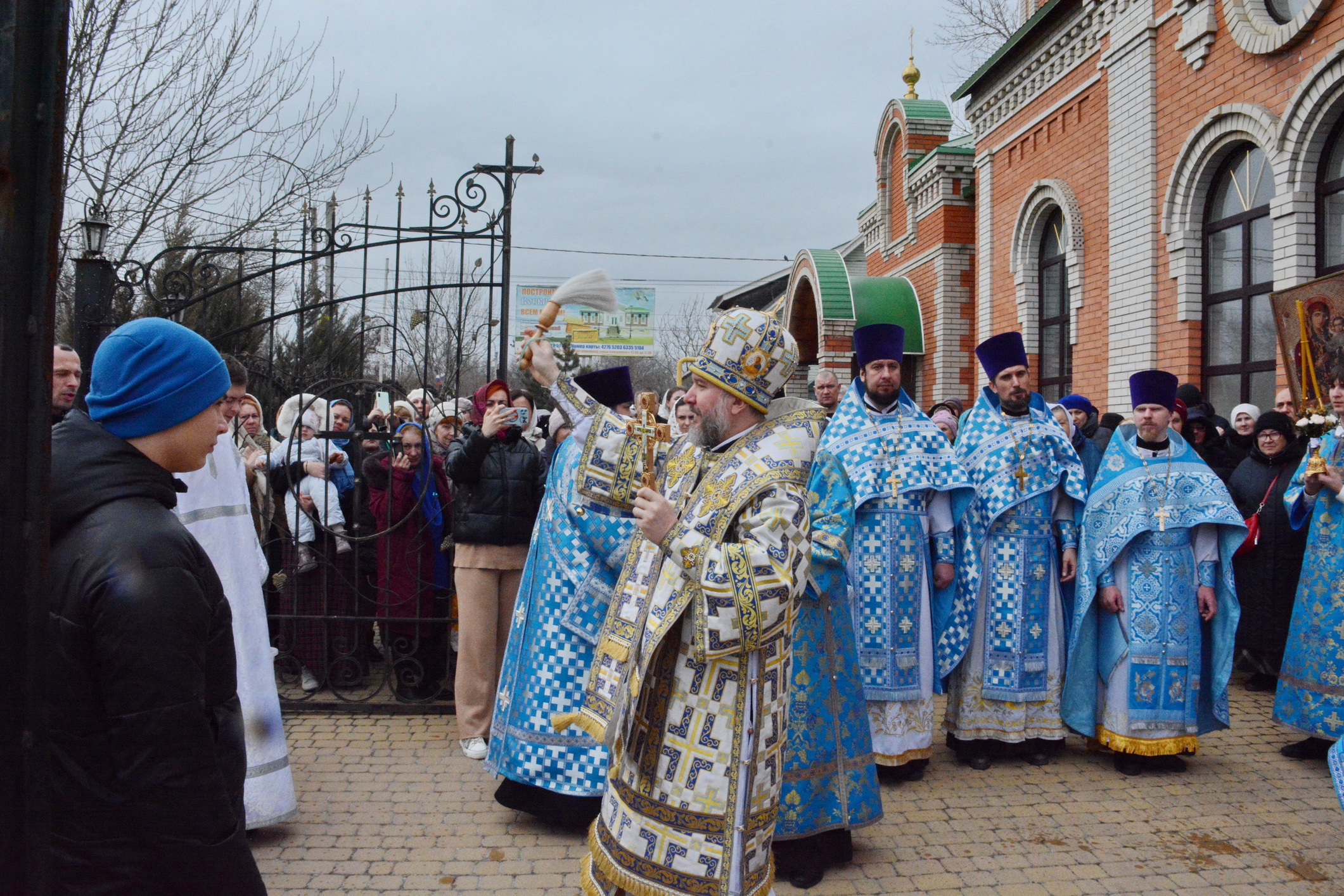 После Литургии духовенство и прихожане во главе с архипастырем совершили крестный ход вокруг храма.