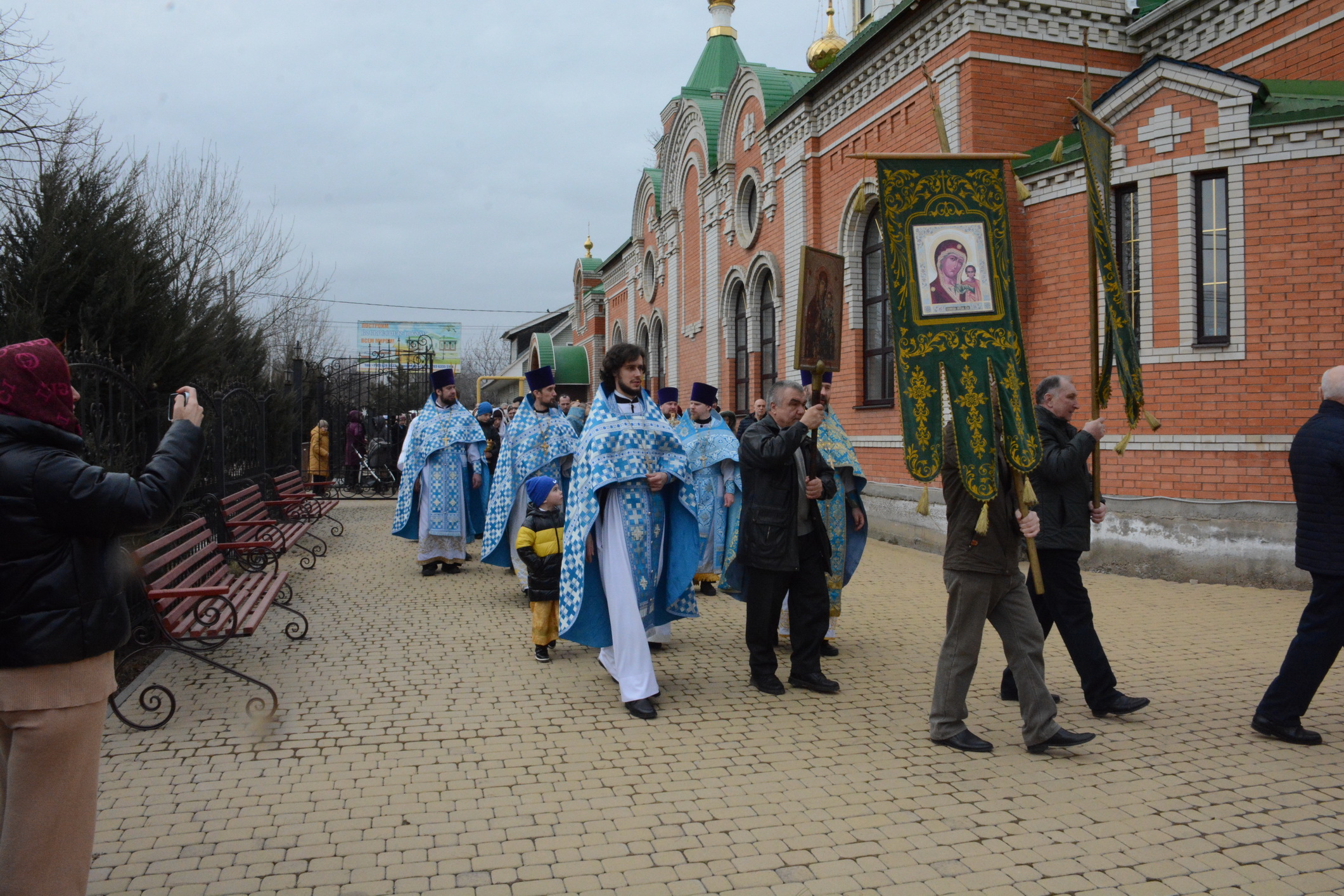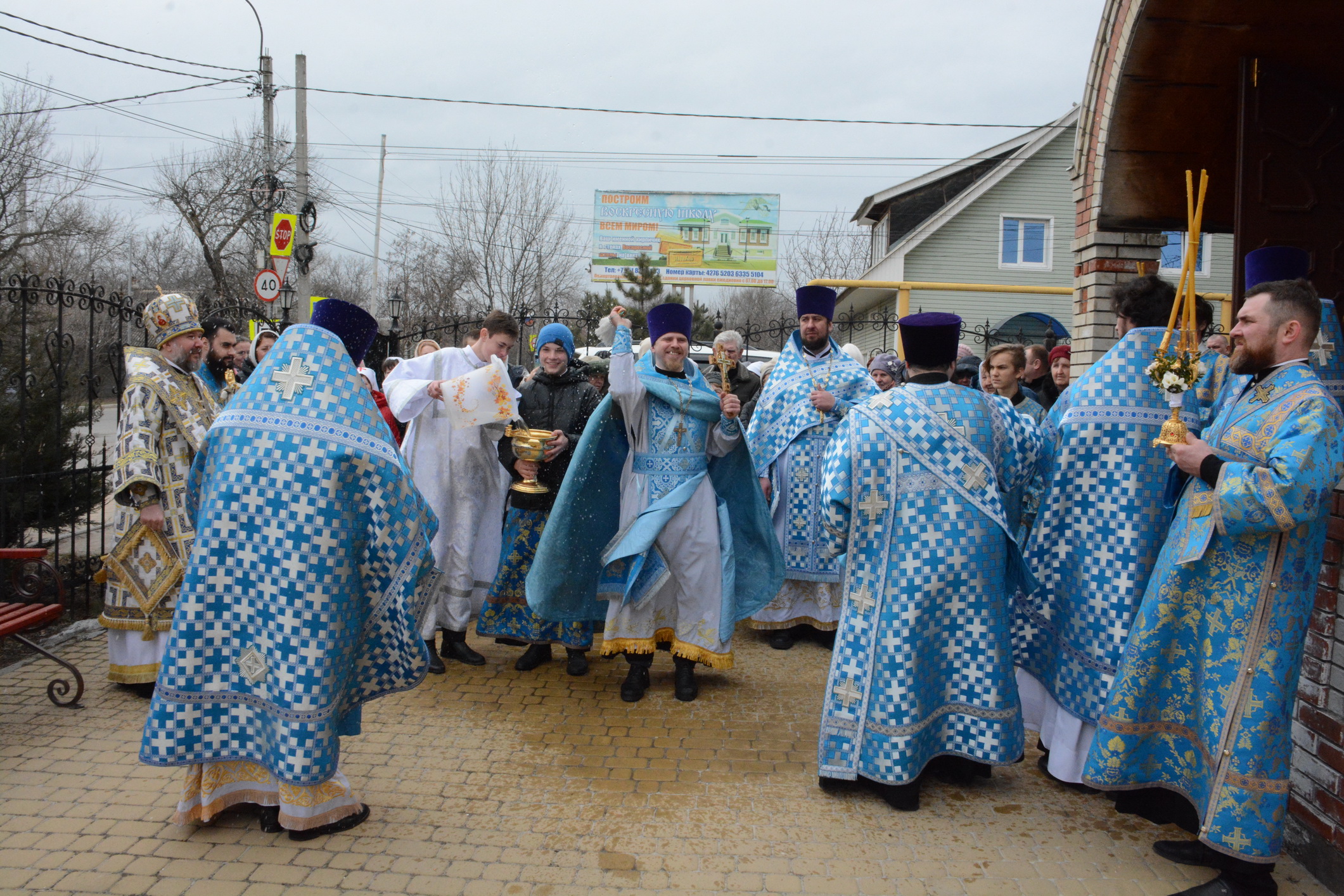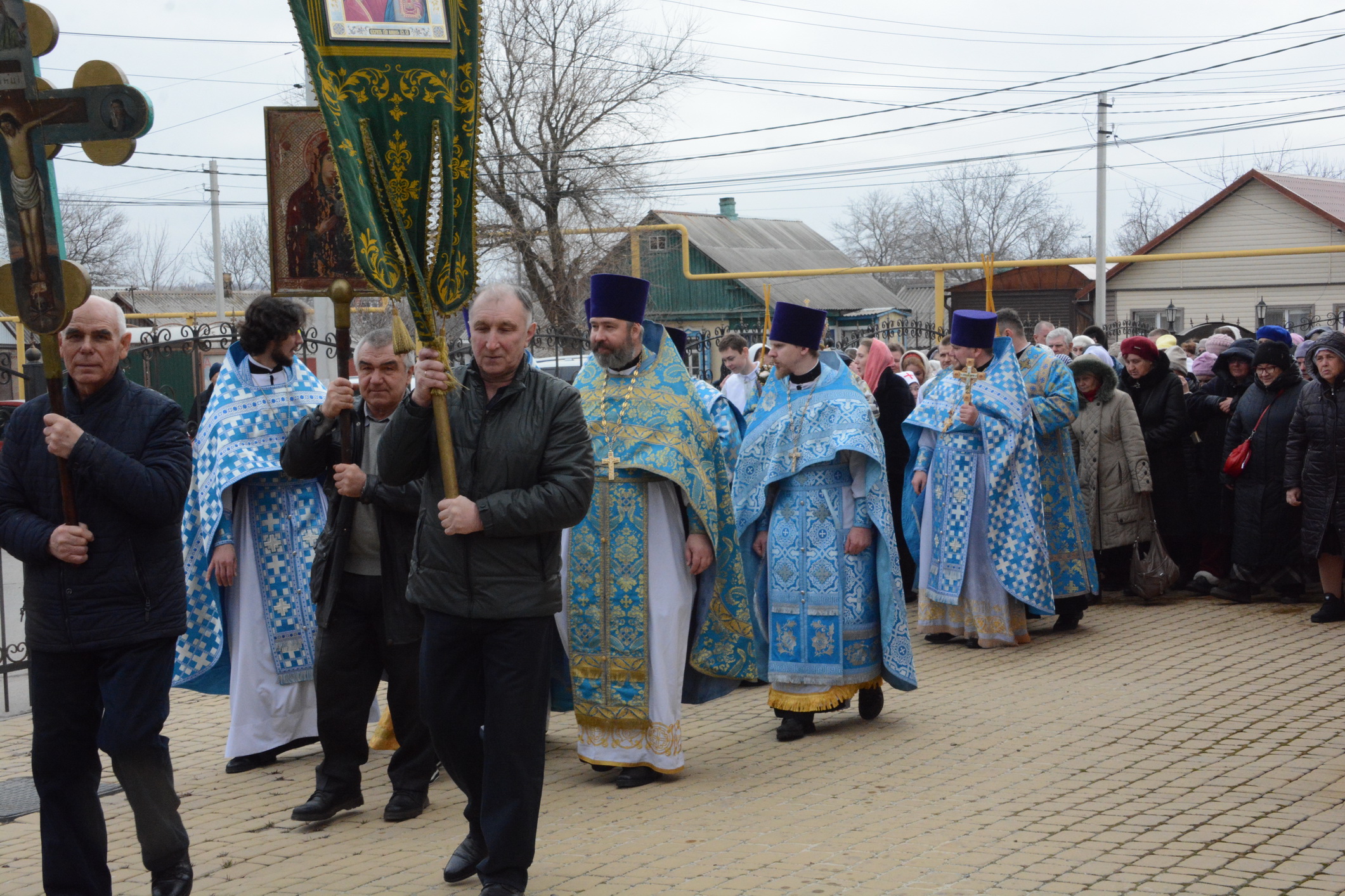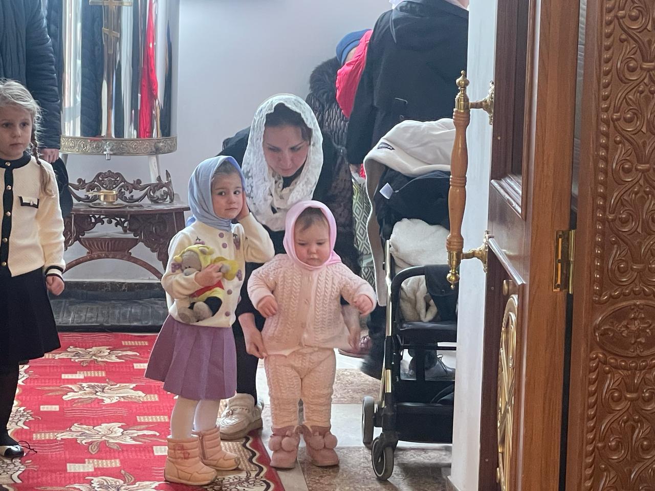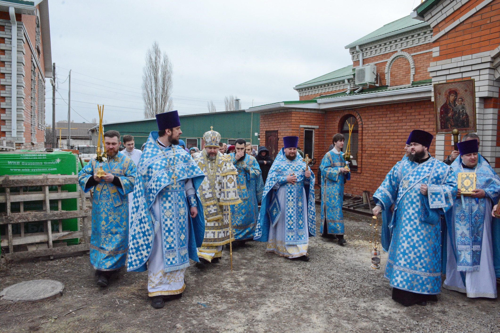 После Литургии духовенство и прихожане во главе с архипастырем совершили крестный ход вокруг храма.