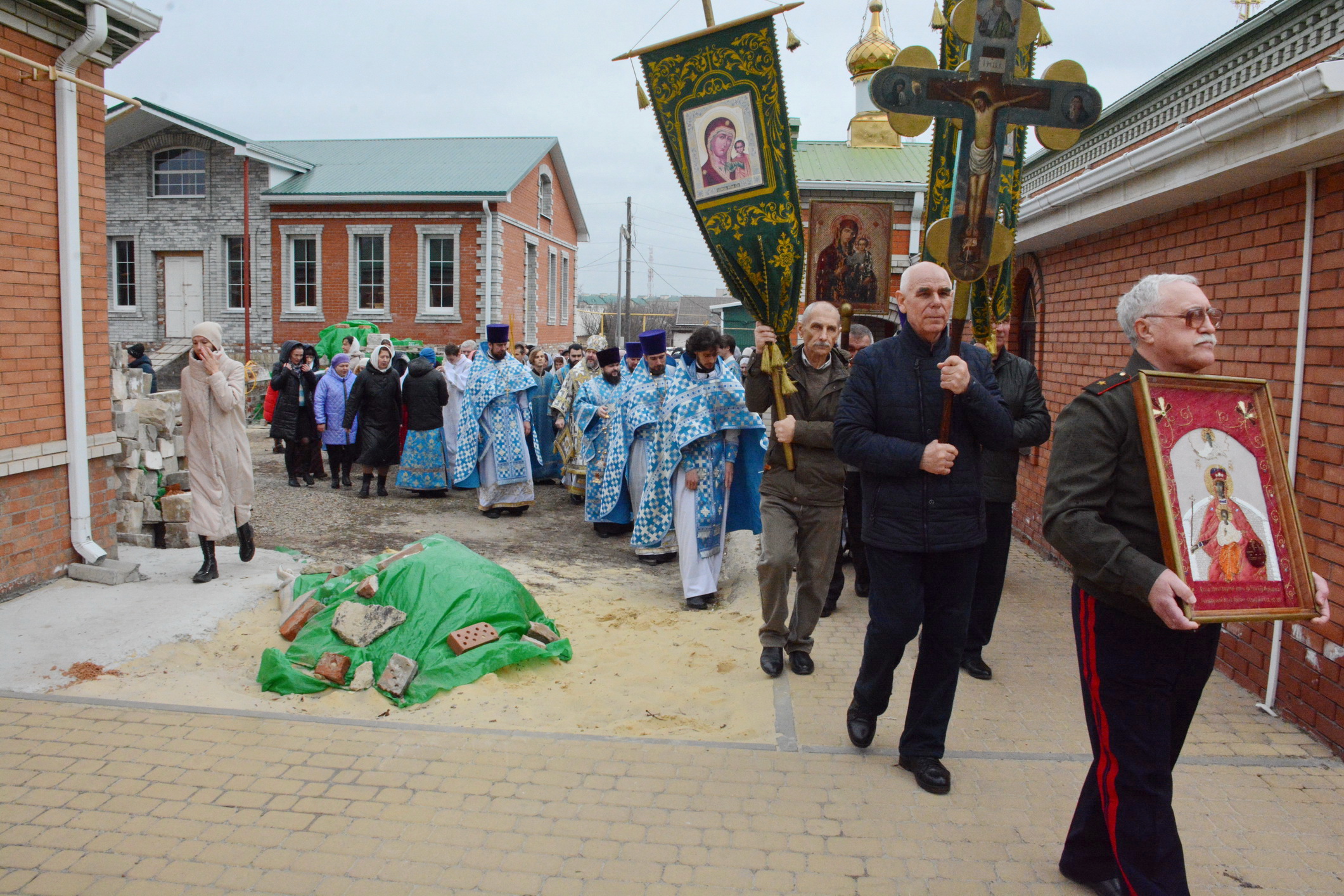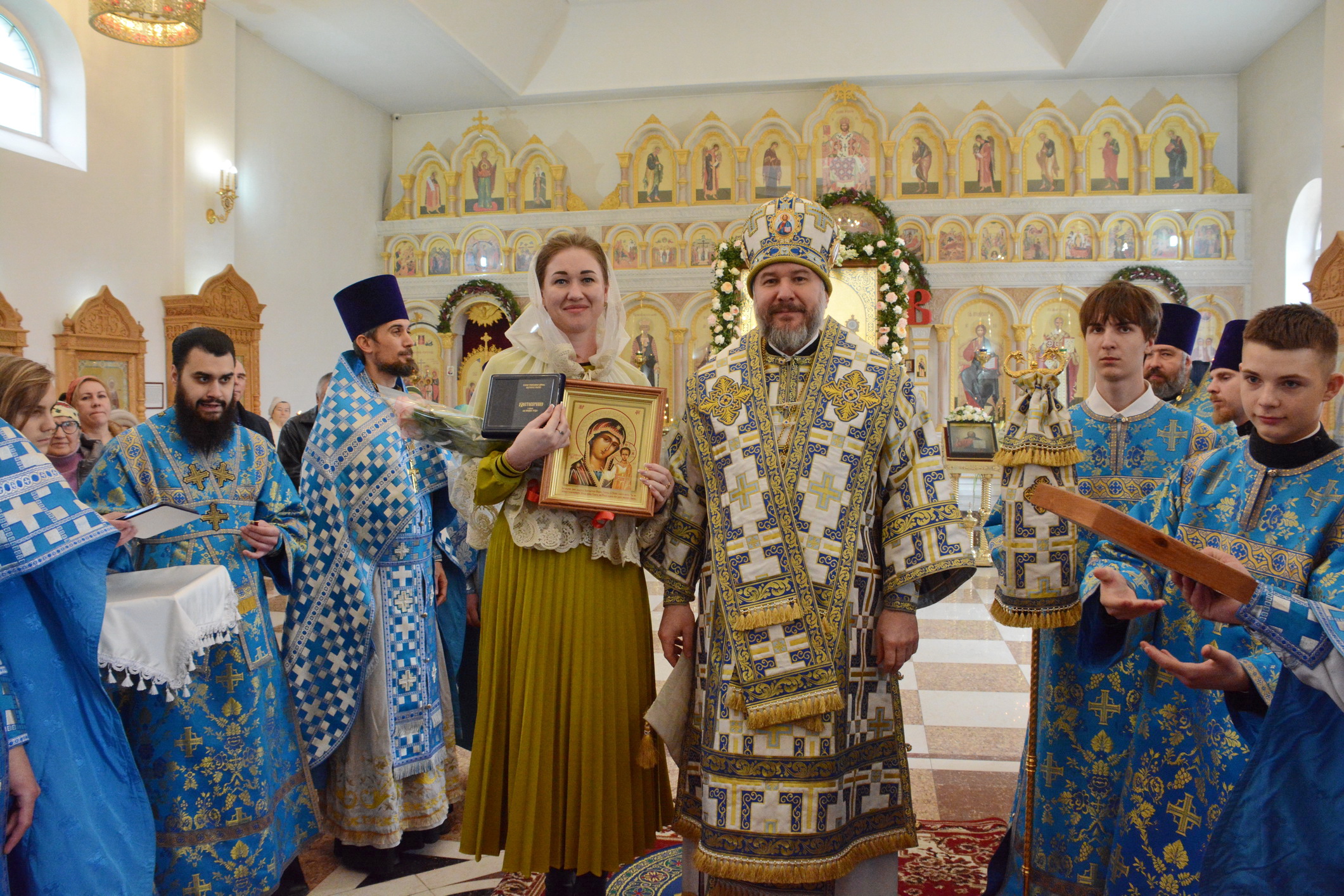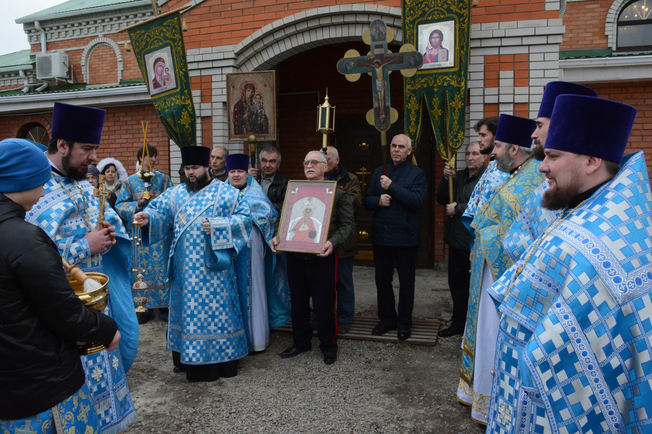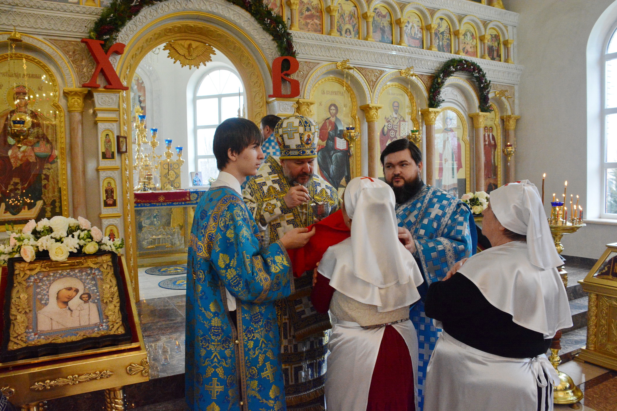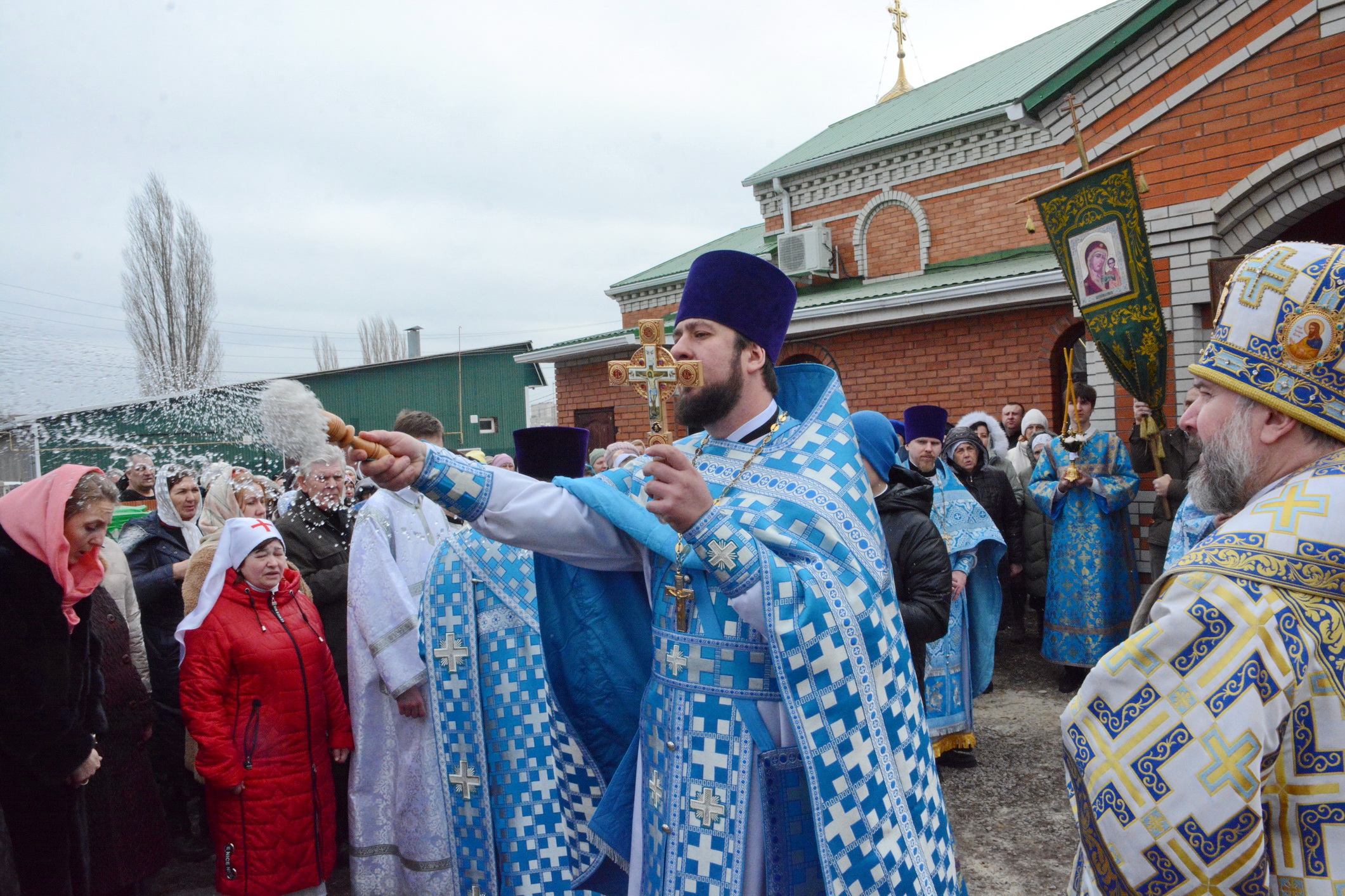 После Литургии духовенство и прихожане во главе с архипастырем совершили крестный ход вокруг храма.