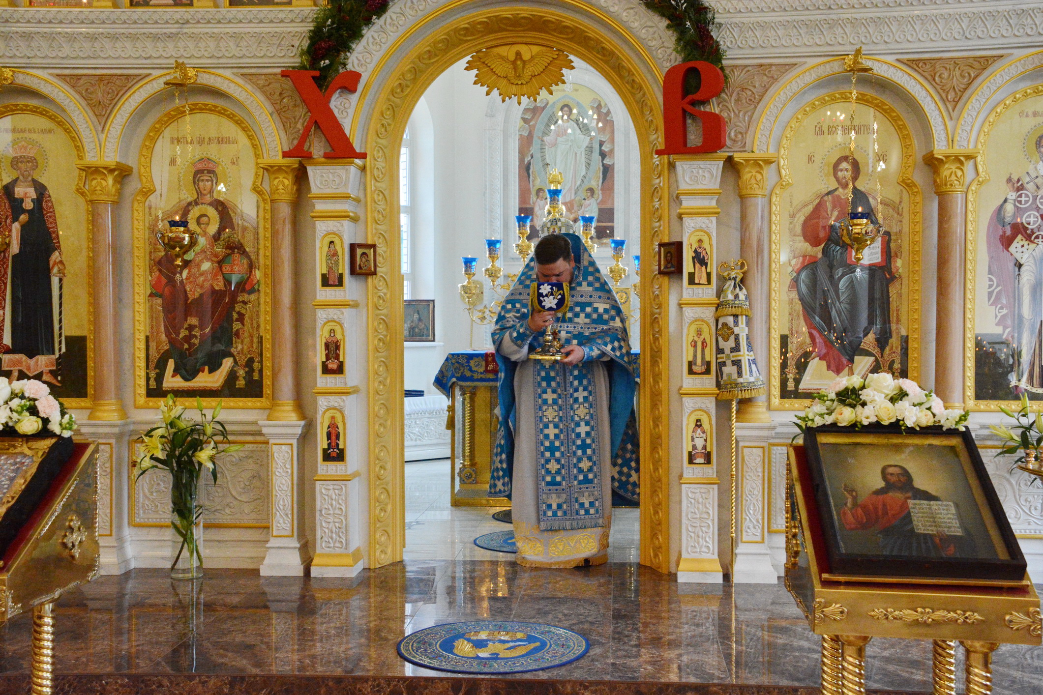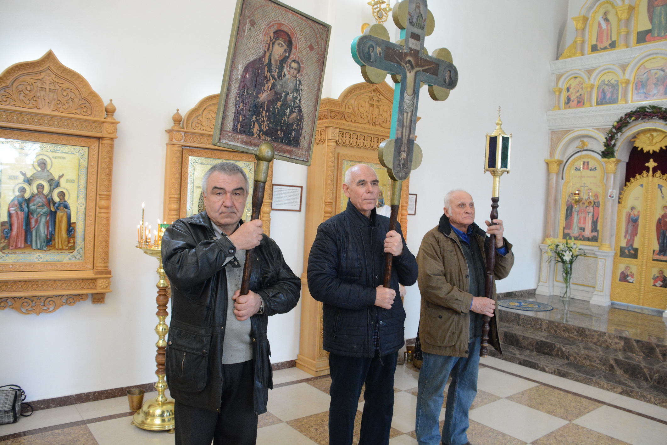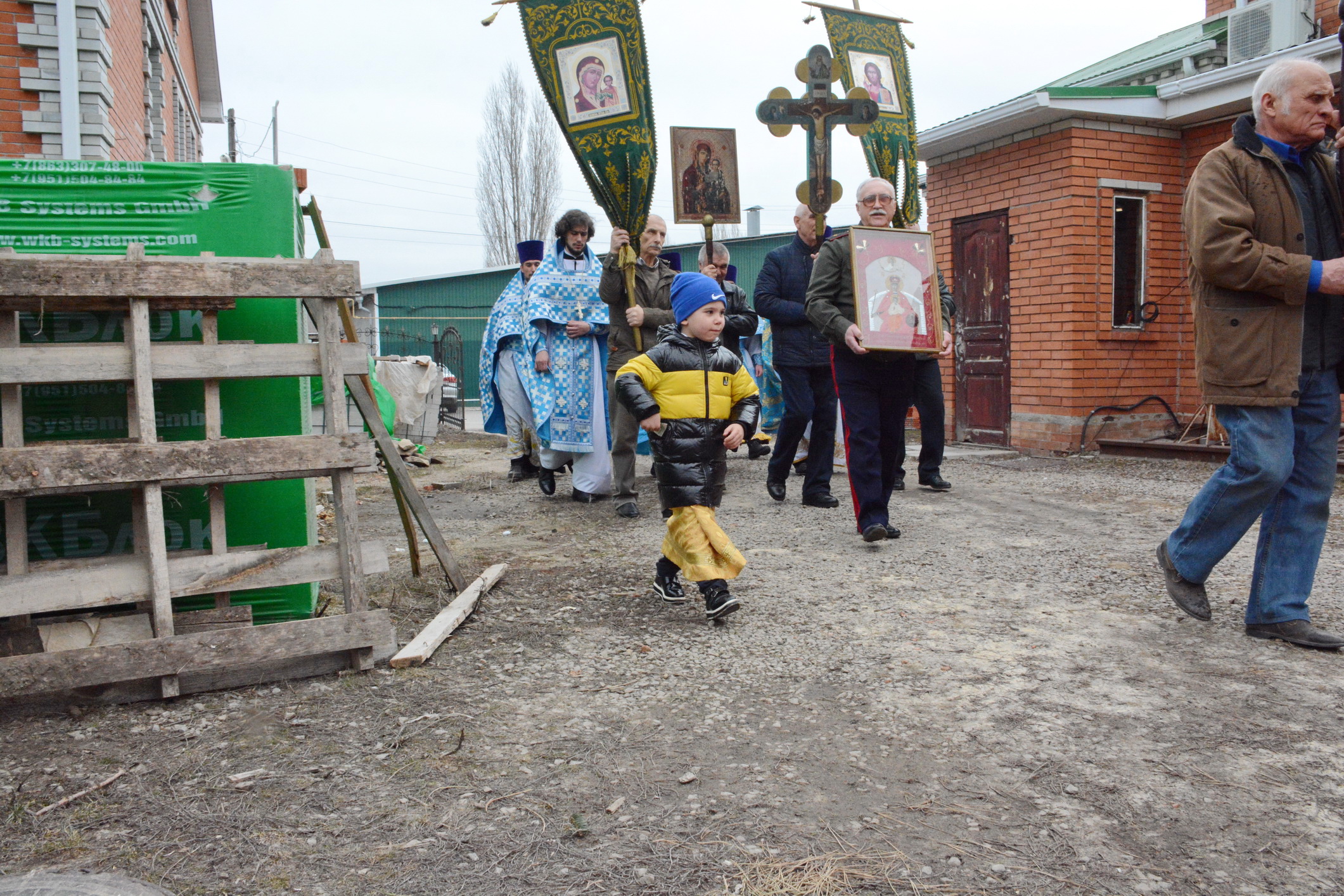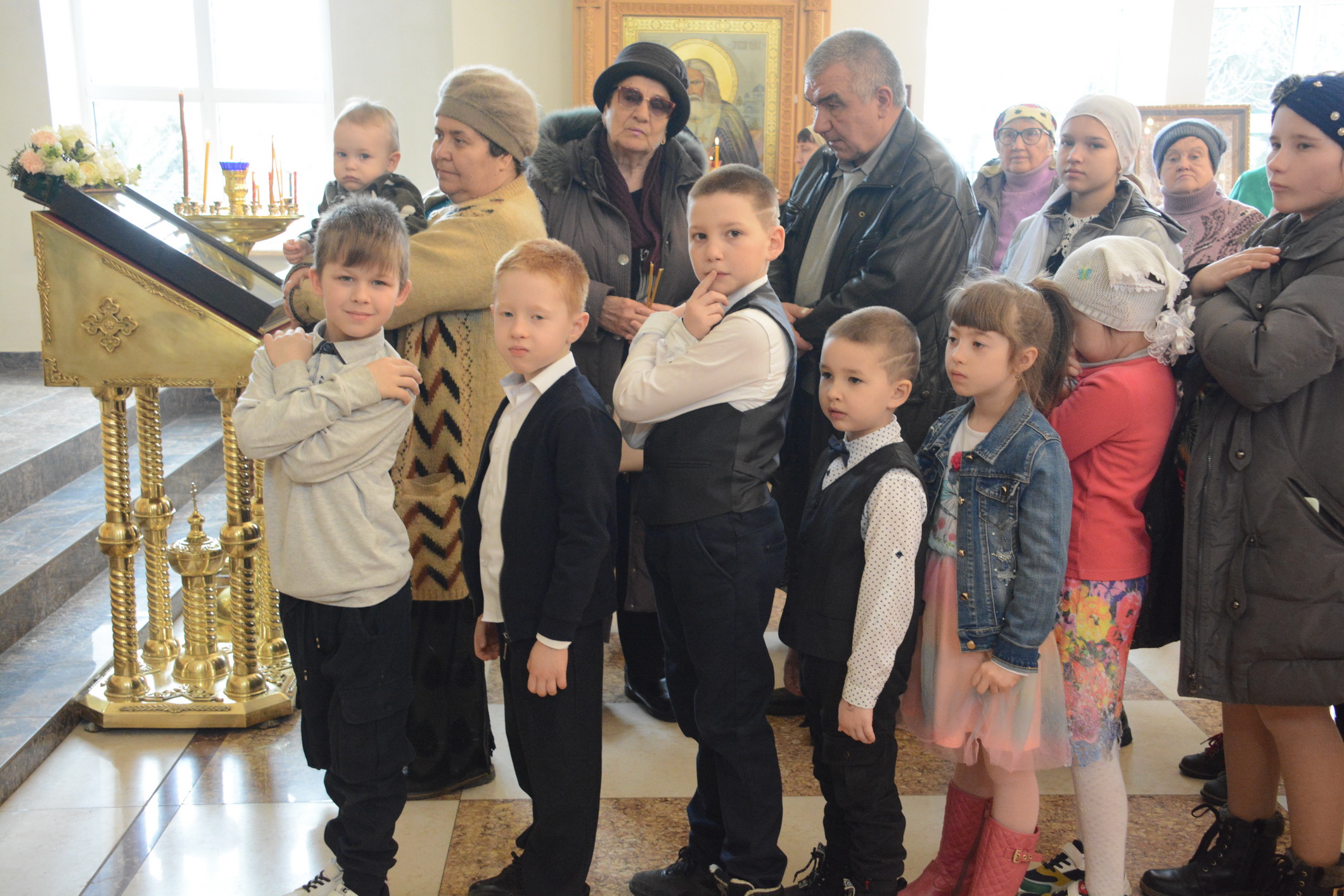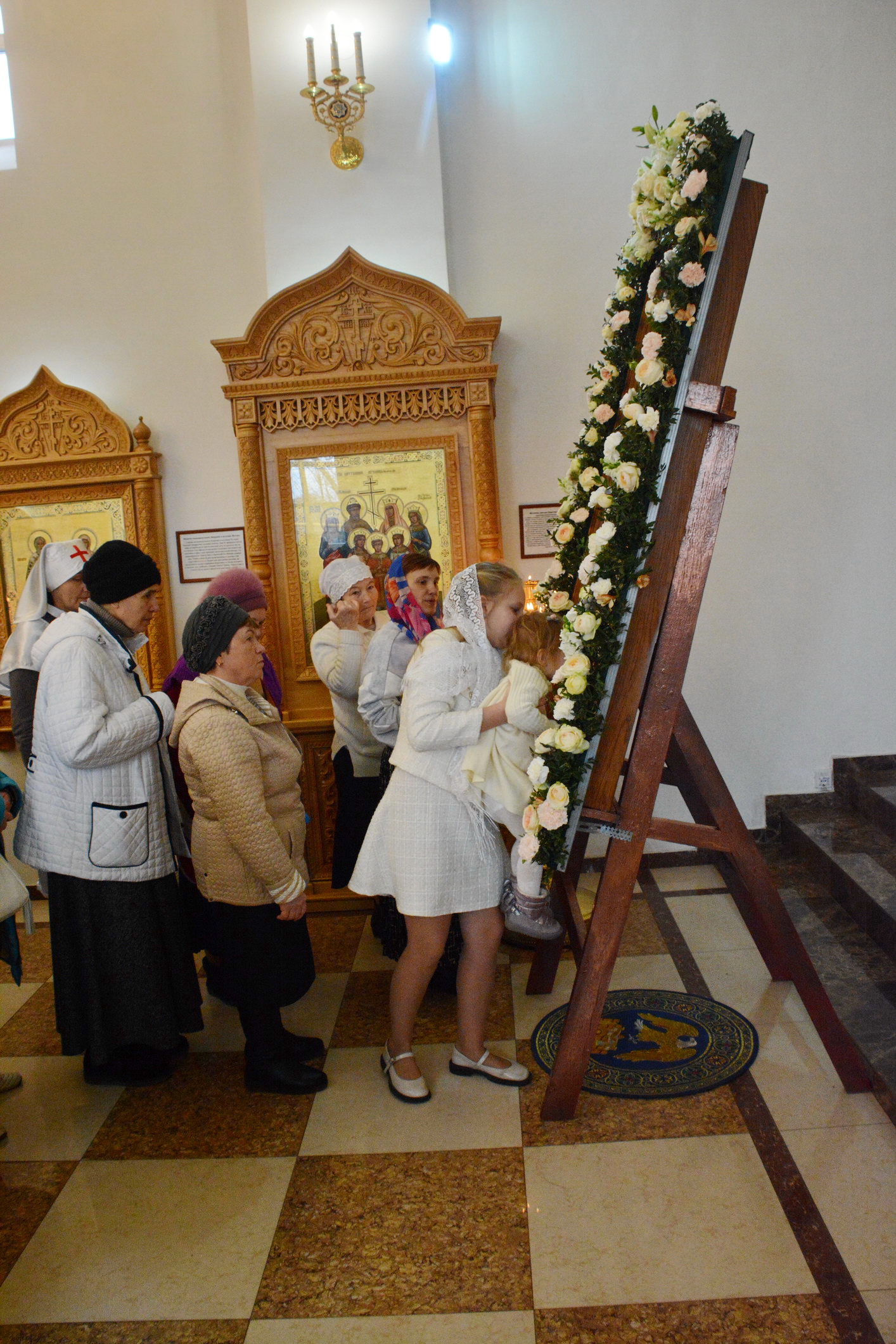 После Литургии духовенство и прихожане во главе с архипастырем совершили крестный ход вокруг храма.