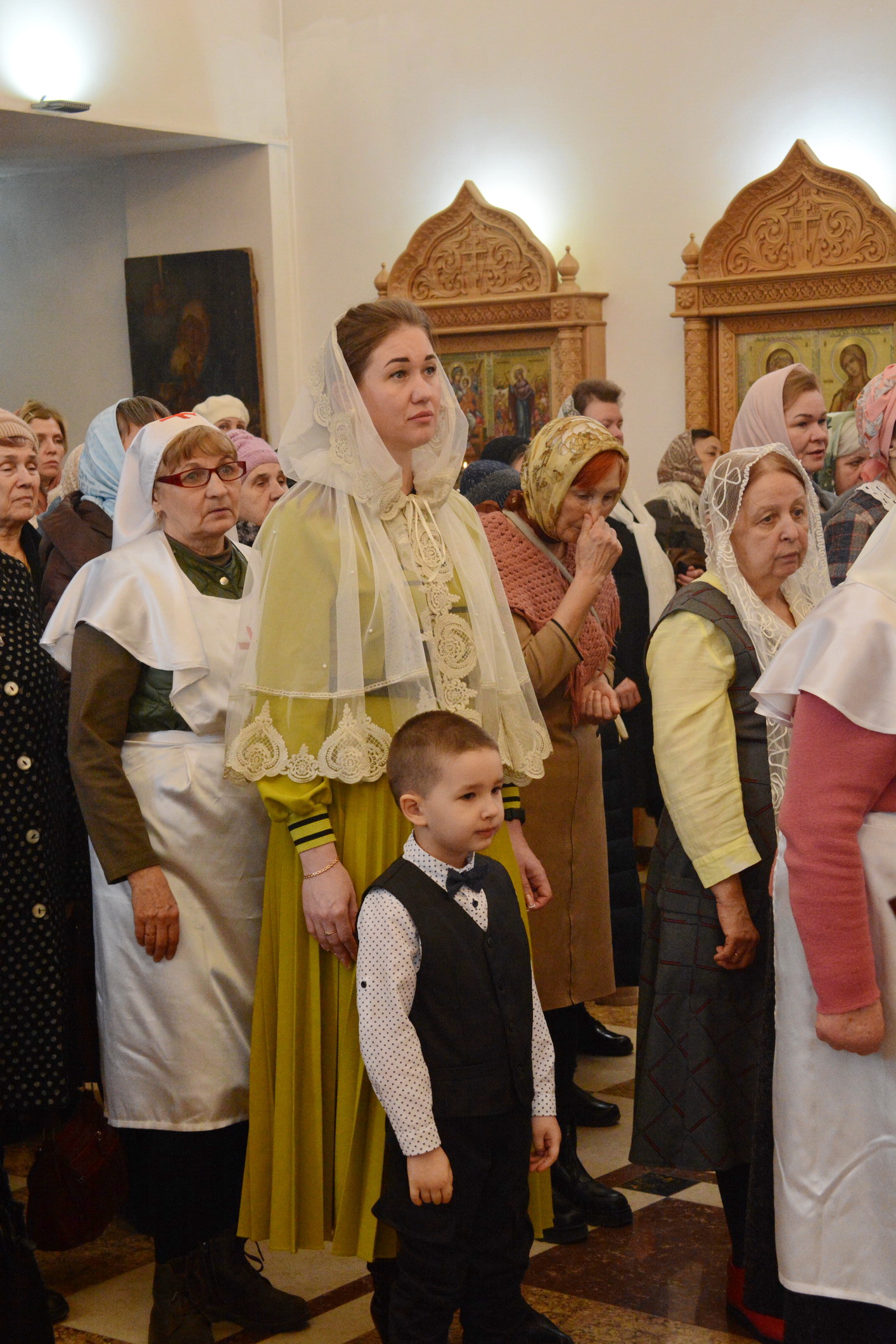 За богослужением молились глава Администрации города Донецка Александр Васильевич Клименко и многочисленные верующие, жители города.