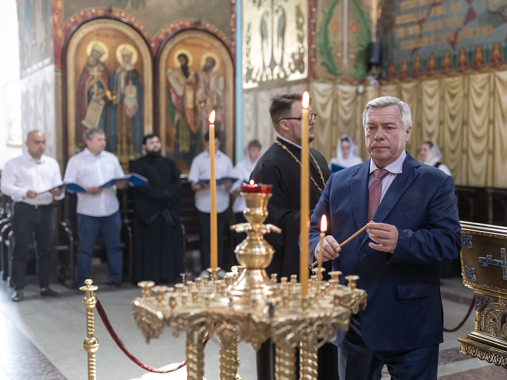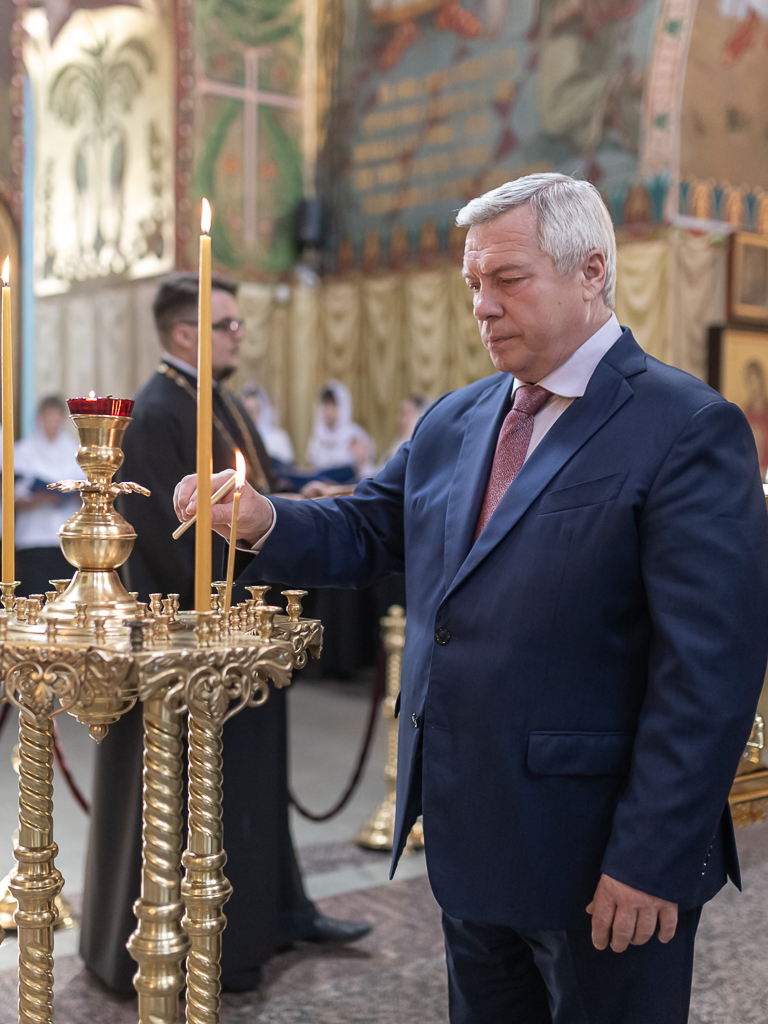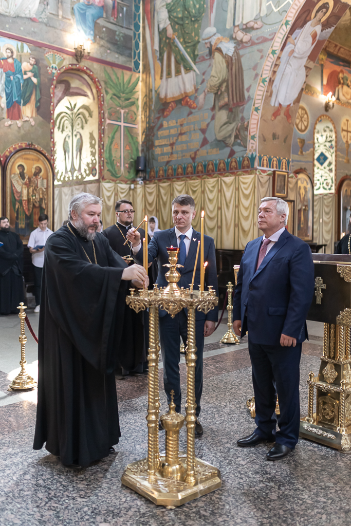 Встреча началась с посещения Покровского кафедрального собора. В главном храме епархии глава региона поставил свечи перед образами и поклонился святыням. Архиерей рассказал Губернатору о планах дальнейшего благоустройства собора и Соборной площади.