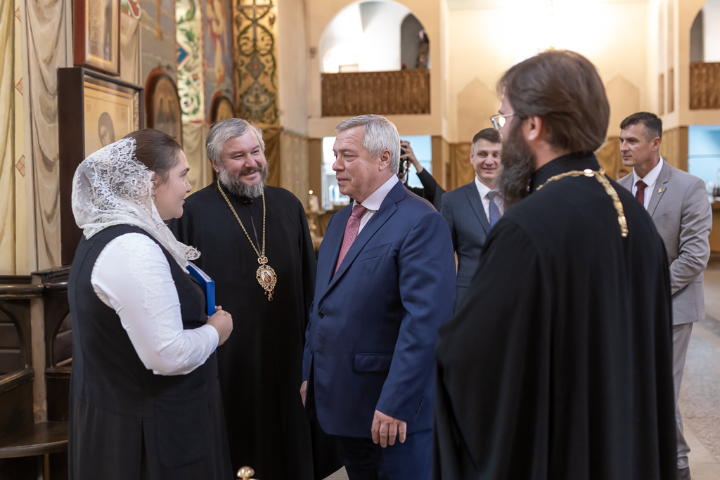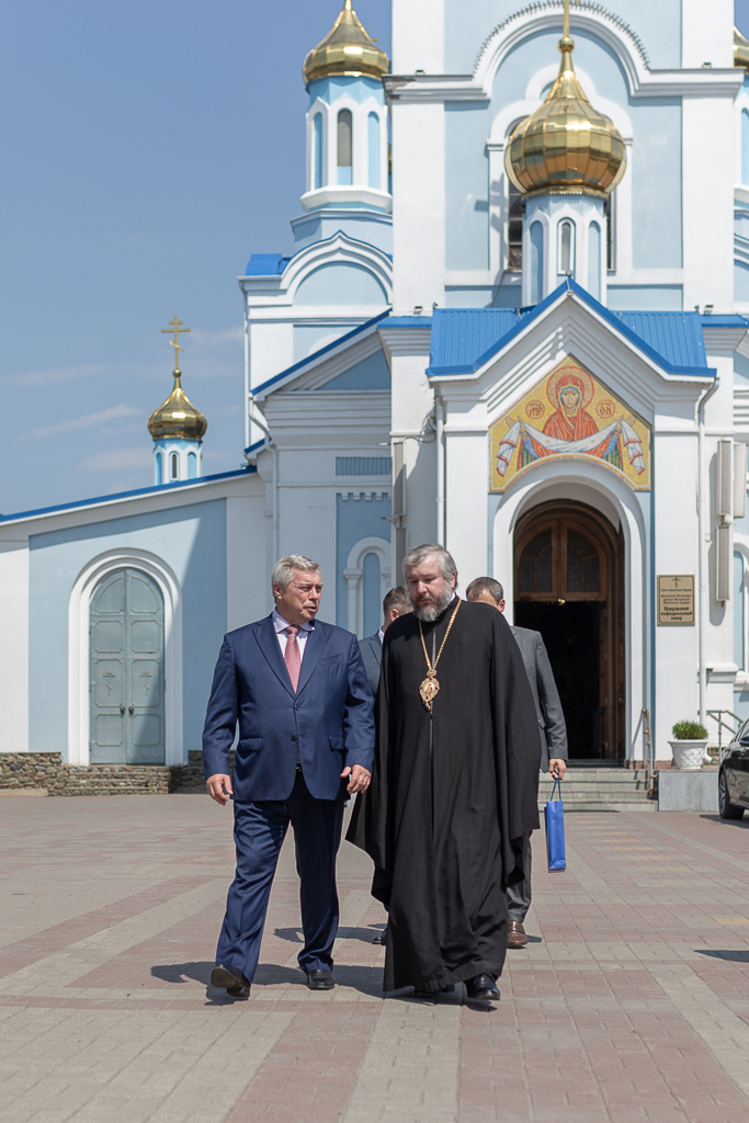 21 июня 2022 года на подворье Покровского кафедрального собора города Шахты Губернатора Ростовской области Василия Юрьевича Голубева встретил правящий архиерей Шахтинской епархии Преосвященнейший епископ Симон. Во встрече высокого гостя приняли участие глава Администрации города Шахты А.В. Ковалев и секретарь Шахтинской епархии иерей Александр Теличкин.