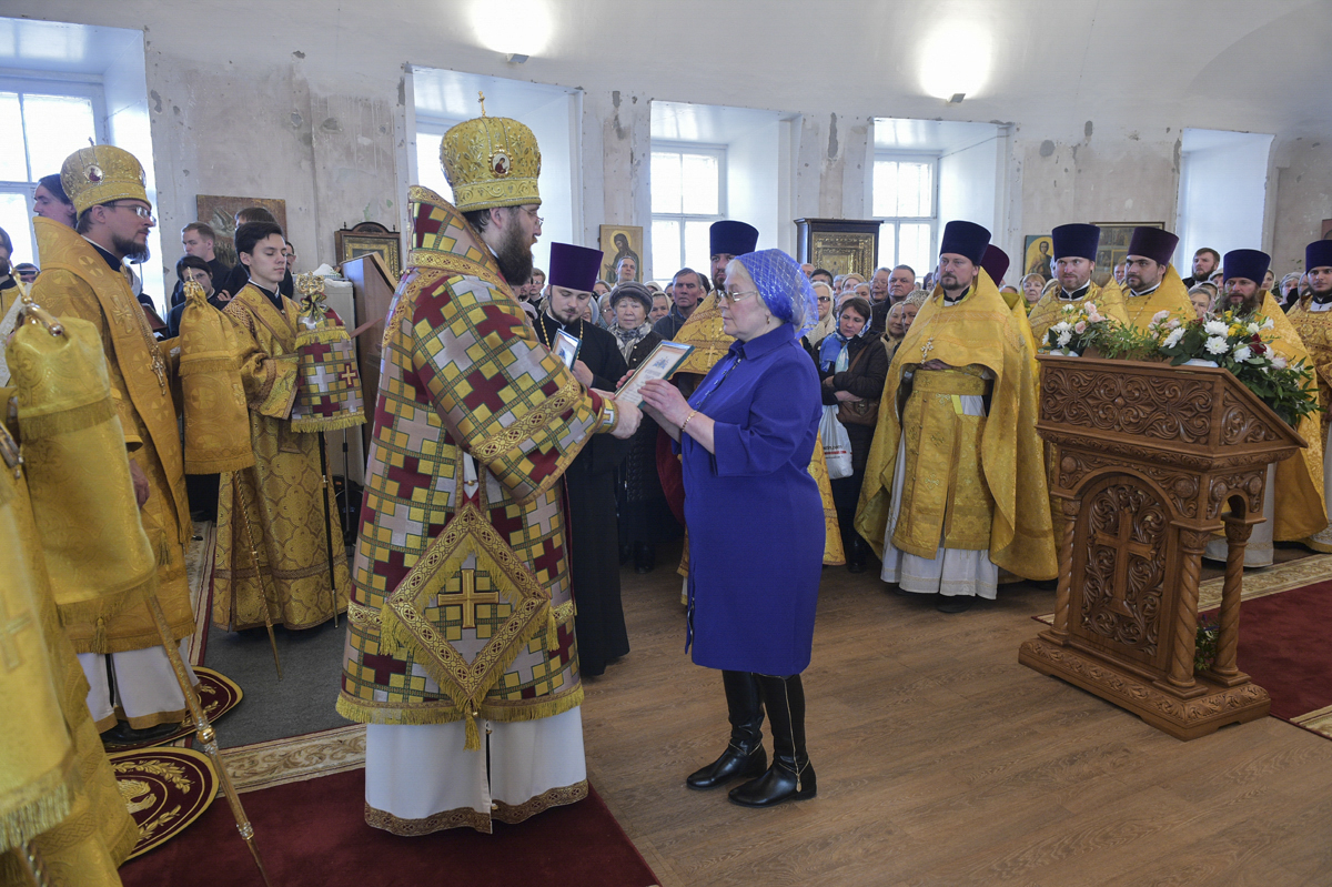 В этот знаменательный день митрополит Игнатий в связи с годовщиной возобновления приходской жизни и начала совершения регулярных богослужений в храме Владимирской иконы Божий Матери города Вологды удостоил ряд прихожан храма и благотворителей церковными наградами: