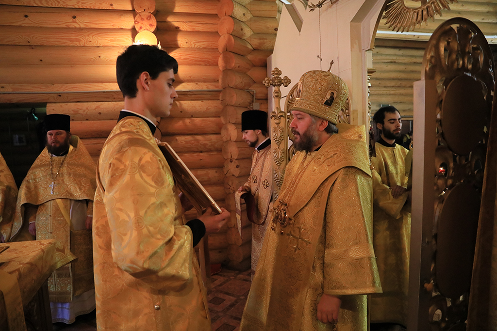 Воскресное богослужение архиерейским чином собрало на молитву в Екатерининском Архиерейском подворье верующих города Красный Сулин