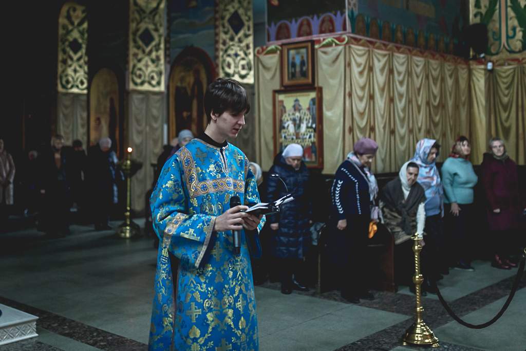 Всенощное бдение накануне праздника Сретения Господня в Покровском кафедральном соборе города Шахты