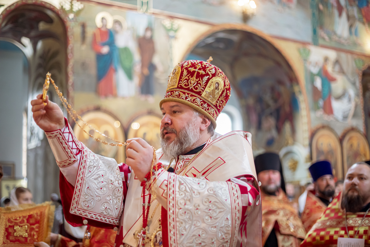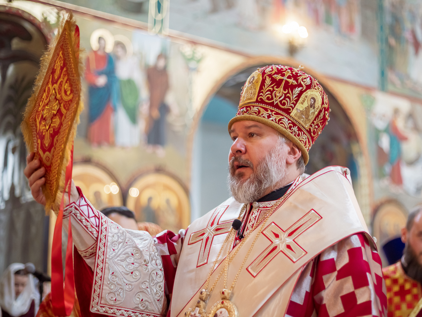 12 апреля 2026 года, епископ Шахтинский и Миллеровский Симон совершил великую вечерню в Покровском кафедральном соборе города Шахты.