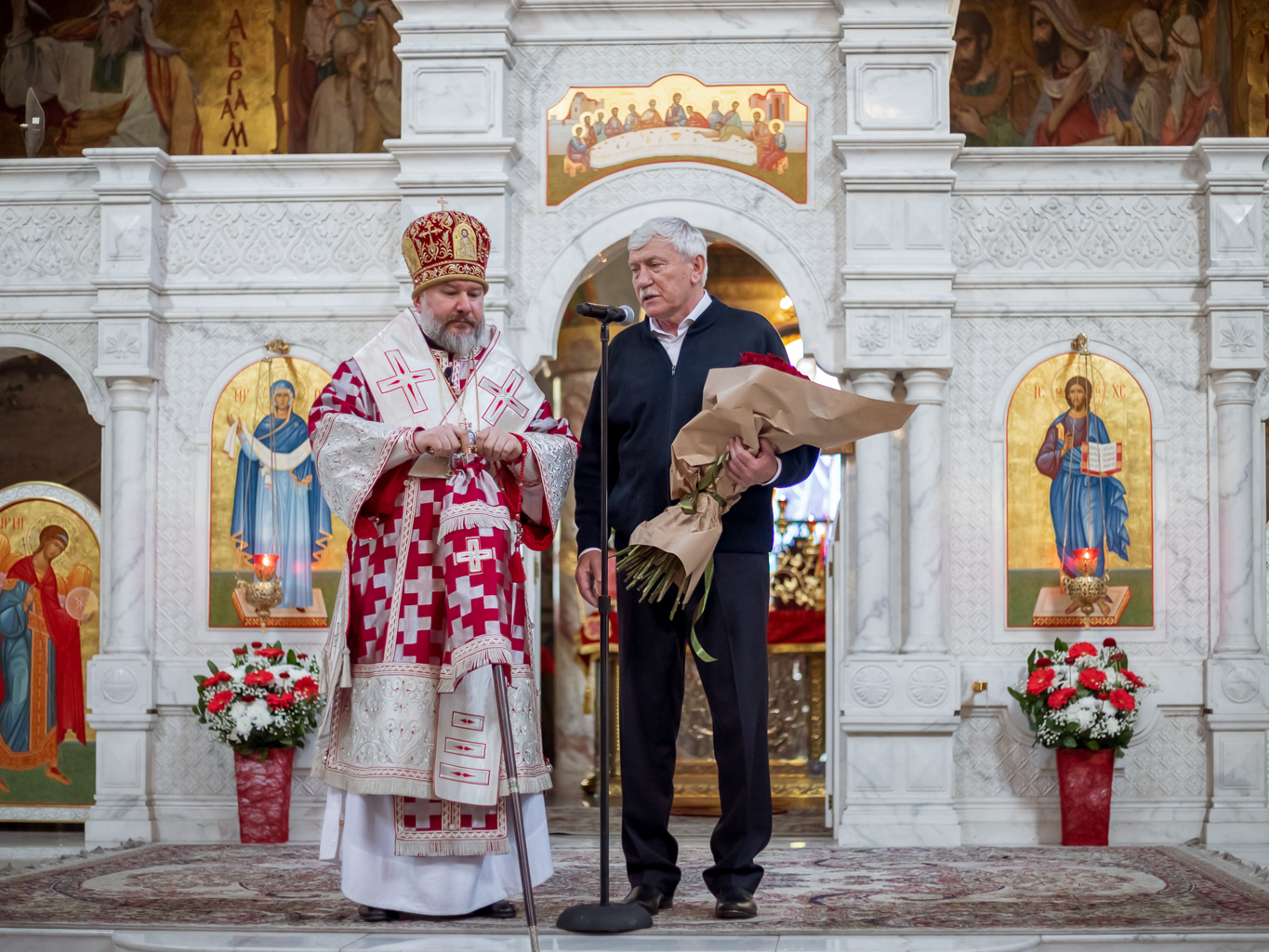 Владыку Симона, духовенство и всех собравшихся на молитву с праздником Светлого Христова Воскресения поздравил заместитель Председателя Законодательного Собрания Ростовской области – председатель комитета по аграрной политике Вячеслав Николаевич Василенко и глава Aдминистрации города Шахты Людмила Владимировна Овчиева.