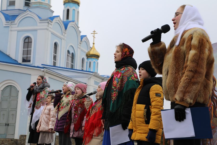 С творческими номерами выступили ученики воскресной школы Покров и прихожане собора.