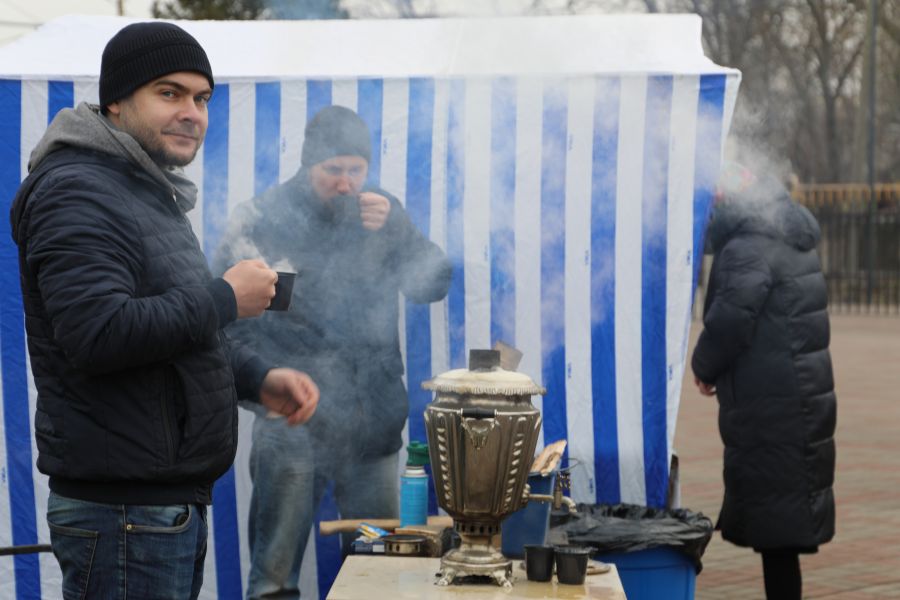 Все желающие смогли подкрепить свои силы горячим чаем и выпечкой.