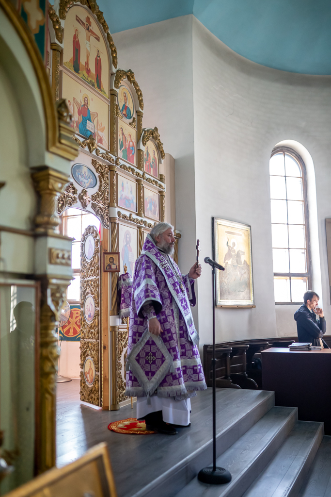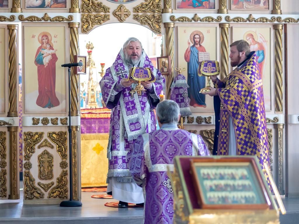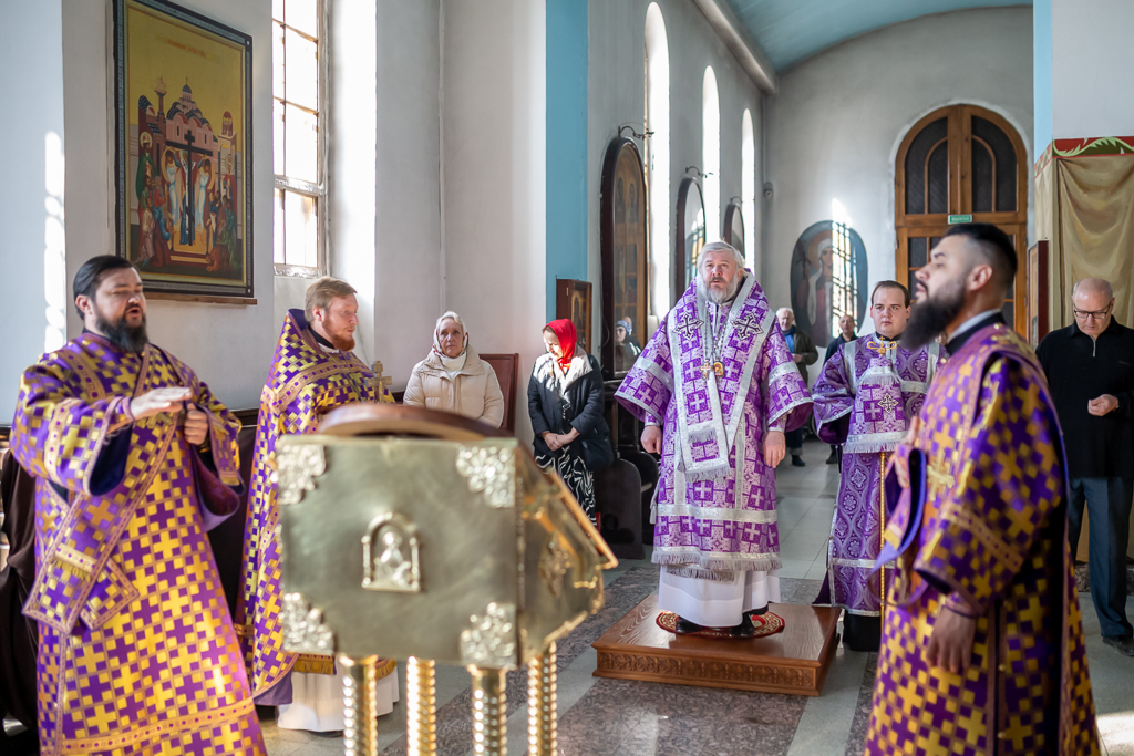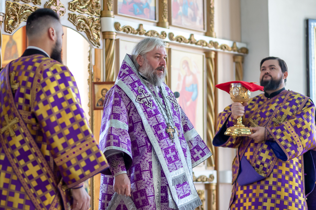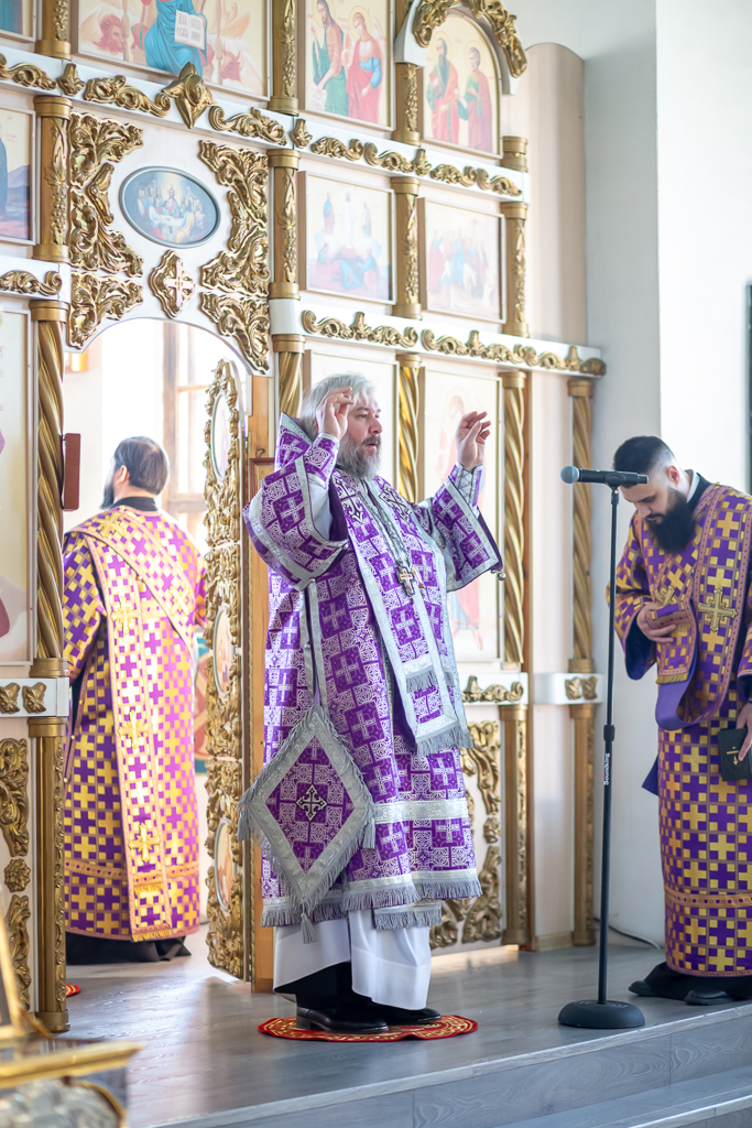 Его Преосвященству сослужило духовенство собора.