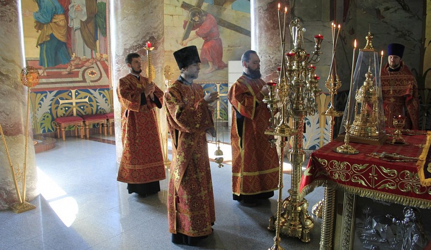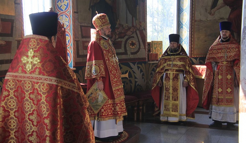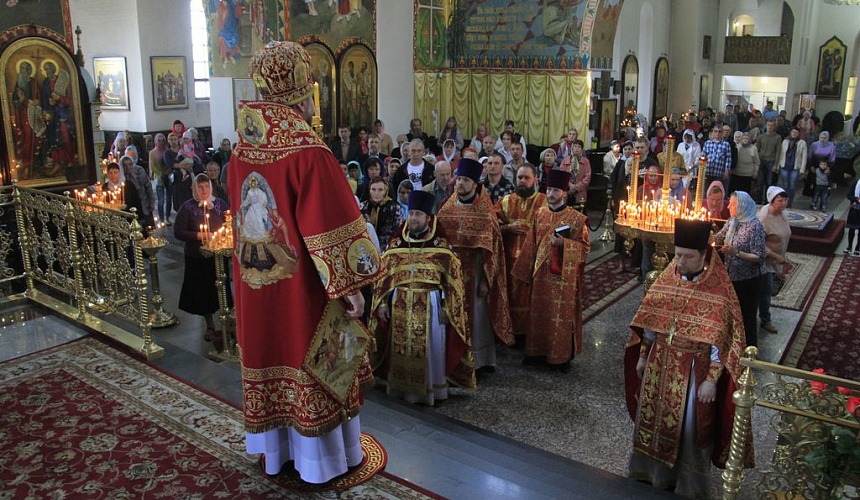 Его Преосвященству сослужили настоятель кафедрального собора иерей Симеон Есин, протоиерей Роман Бирюков, иерей Леонид Зацепилин, протодиакон Константин Лобов, иеродиакон Флавиан (Васильев), диакон Роман Калинин.