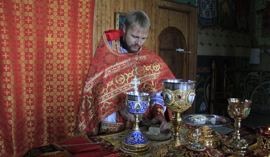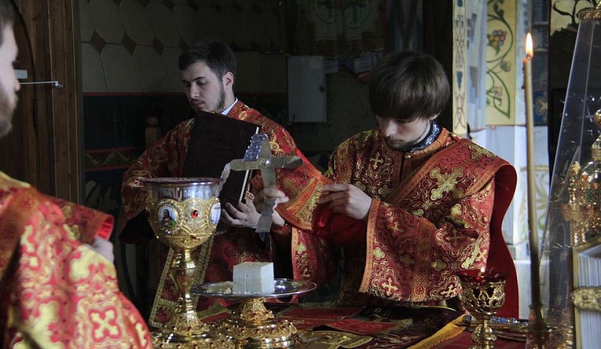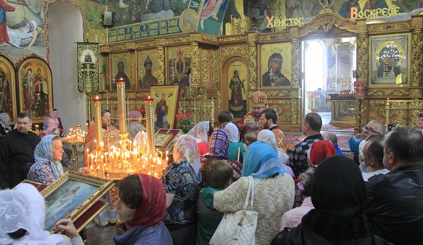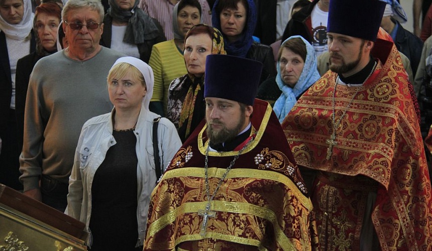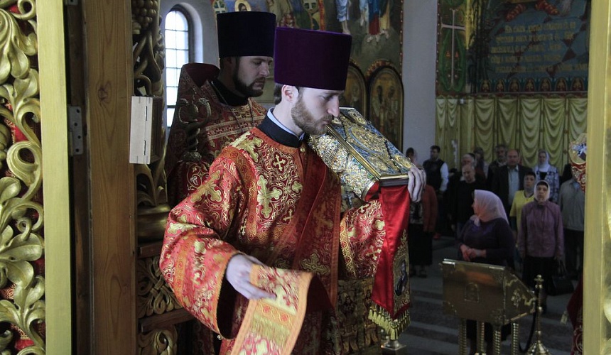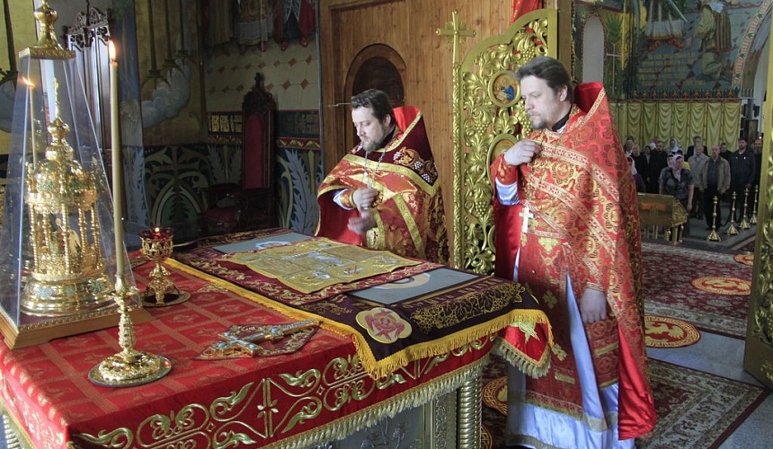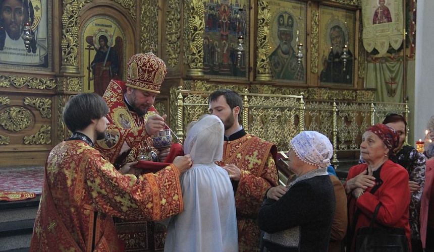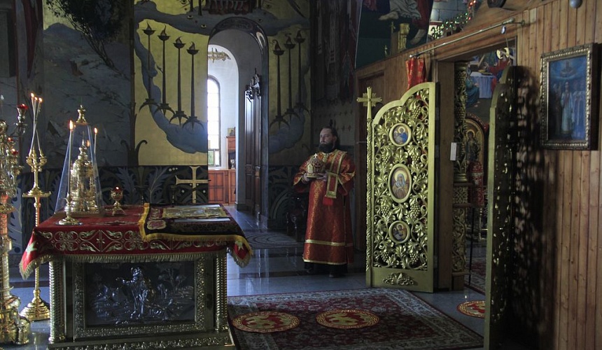 Перед причастием протоиерей Роман рассказал прихожанам о принесении в Россию мощей святителя и чудотворца Николая.