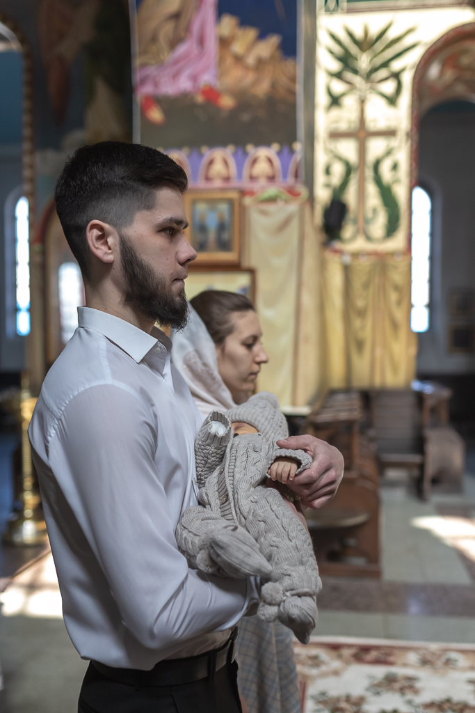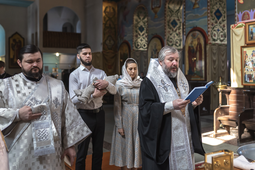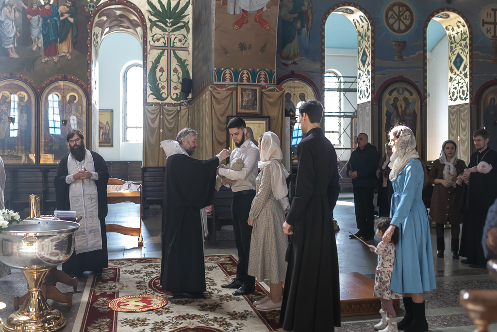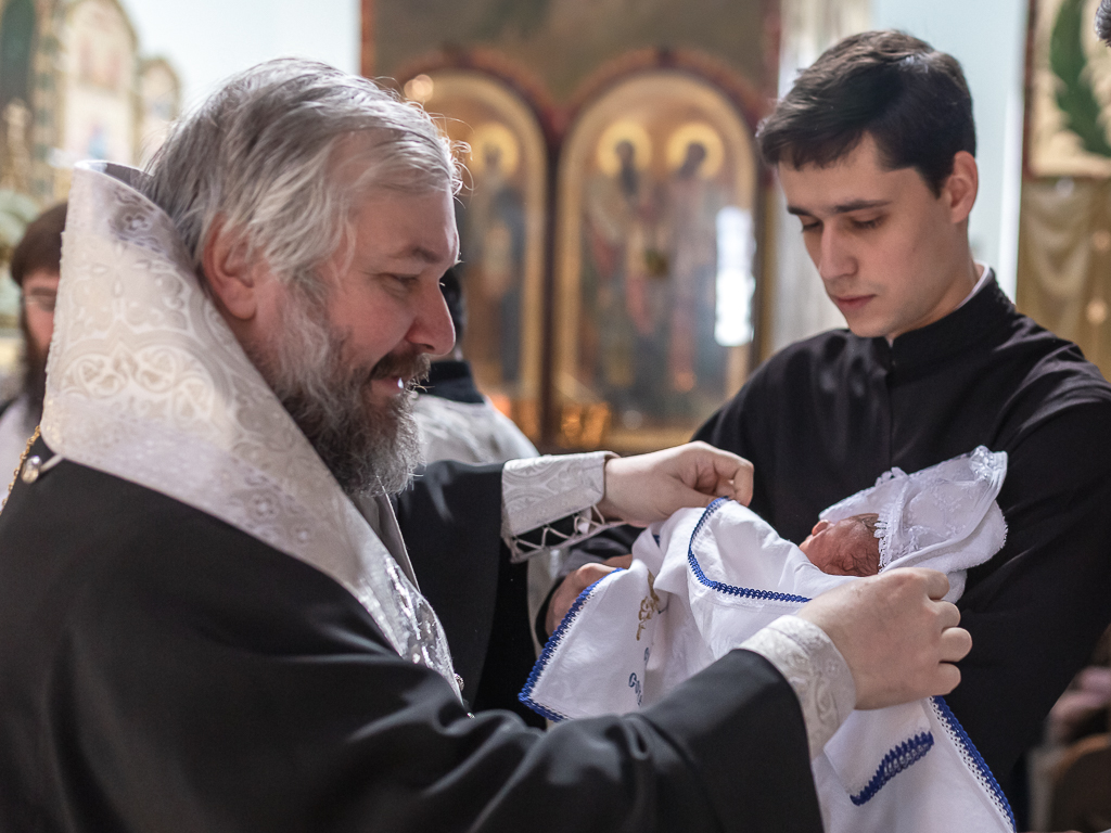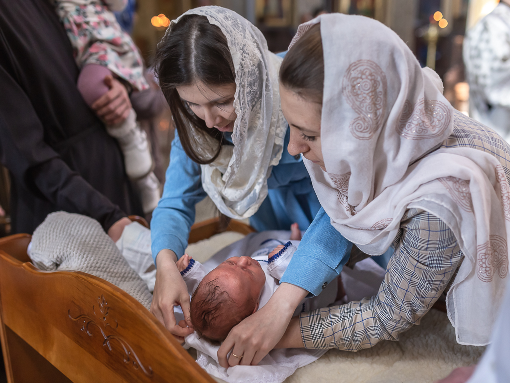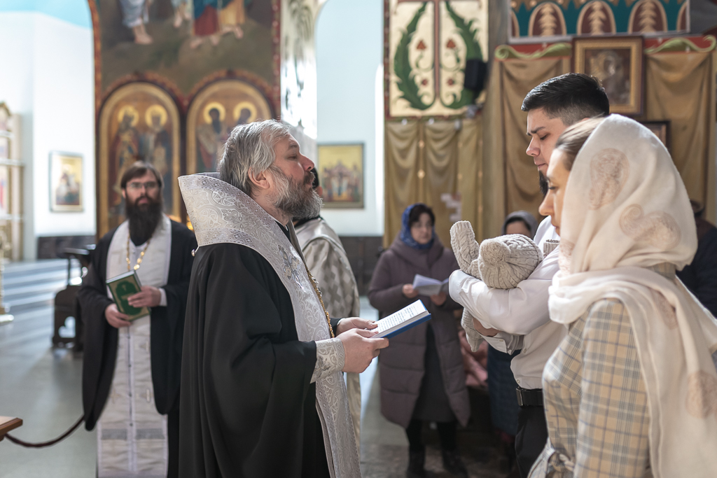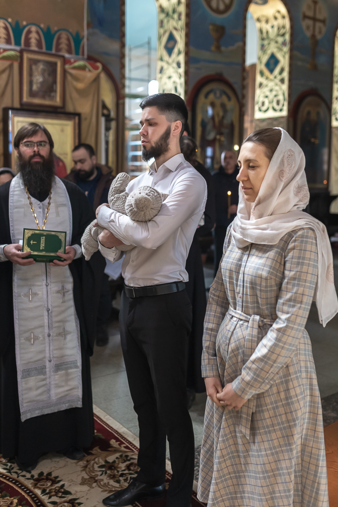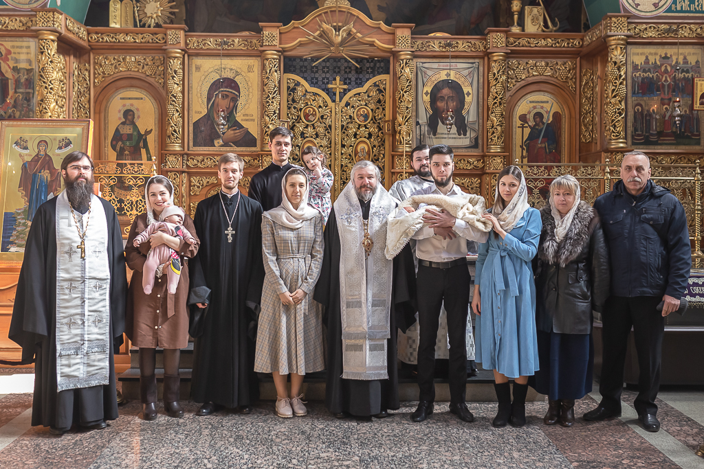 В вместе с архиереем молились родители, восприемник младенца и родственники.