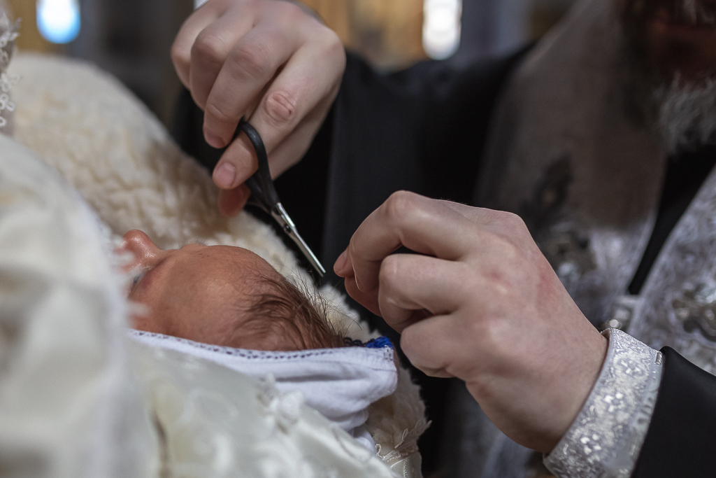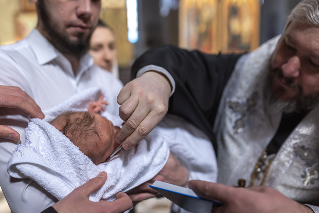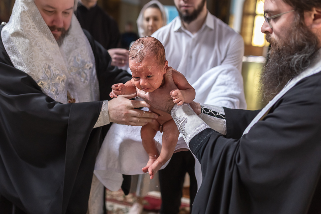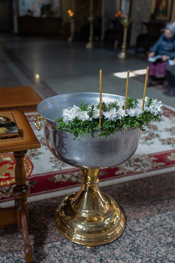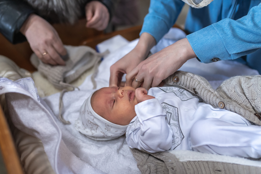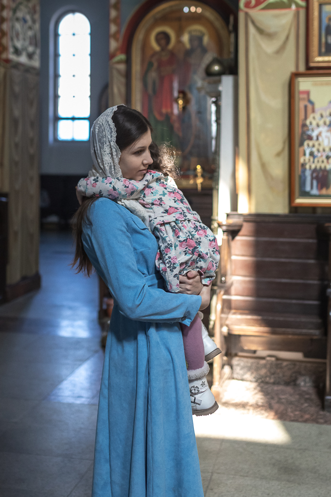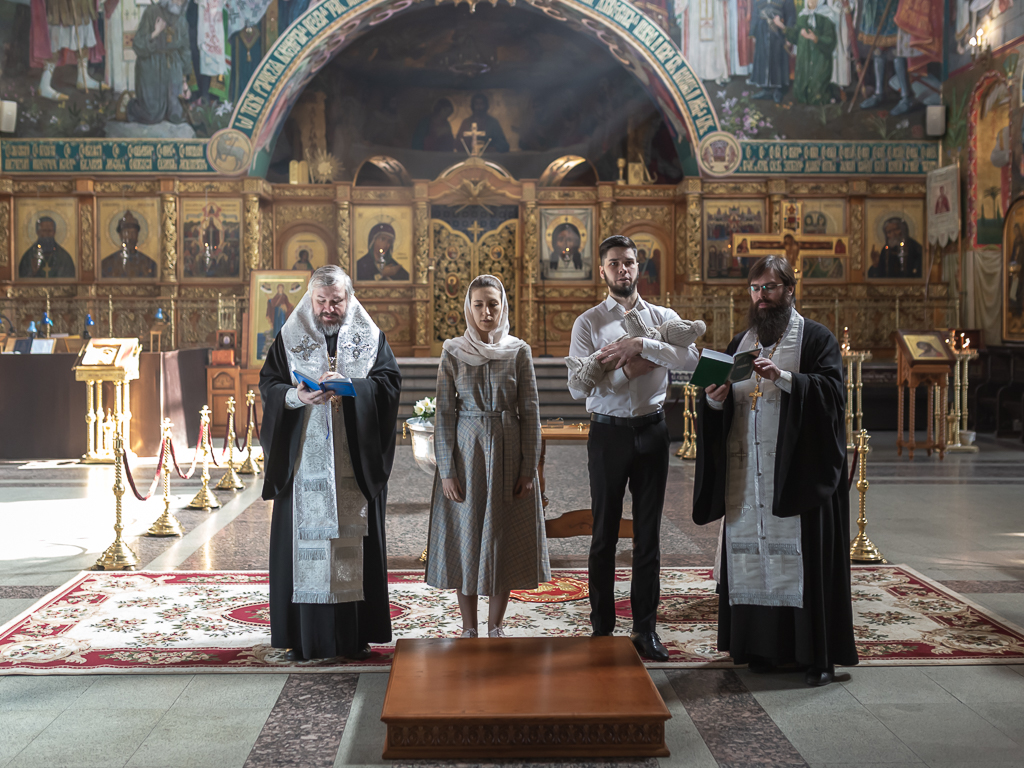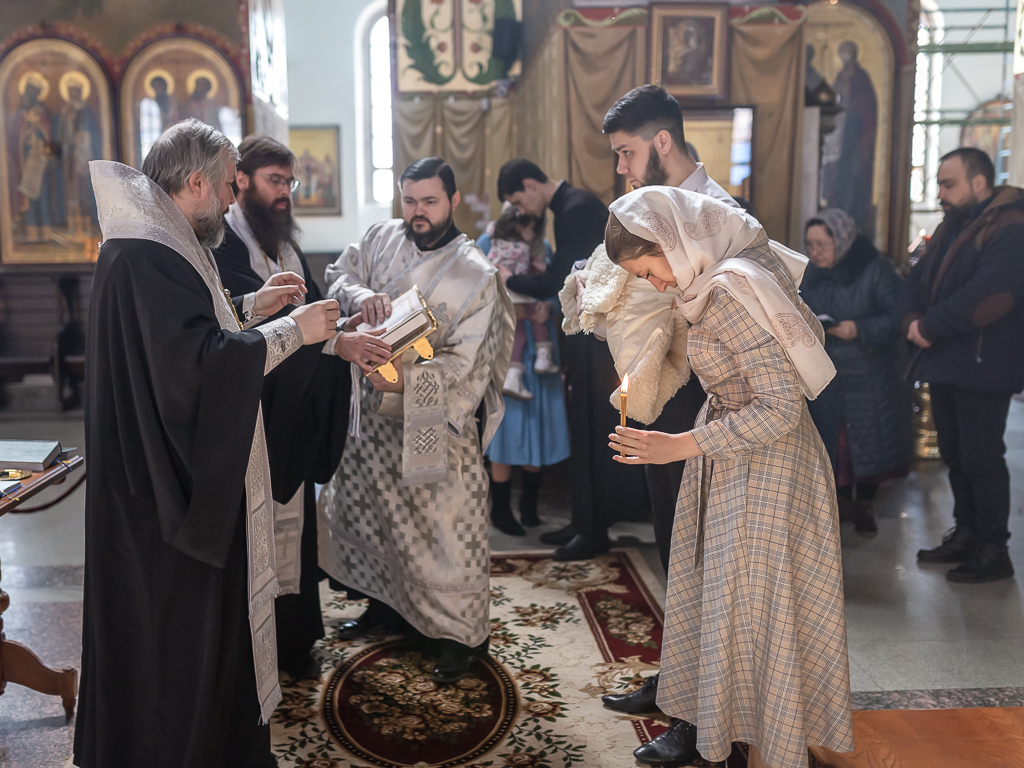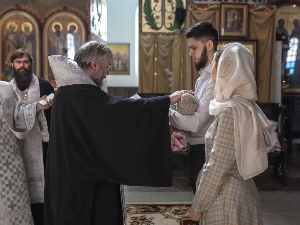 В вместе с архиереем молились родители, восприемник младенца и родственники.