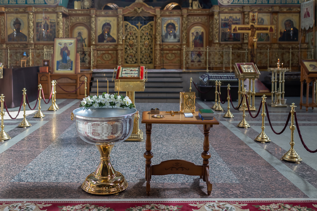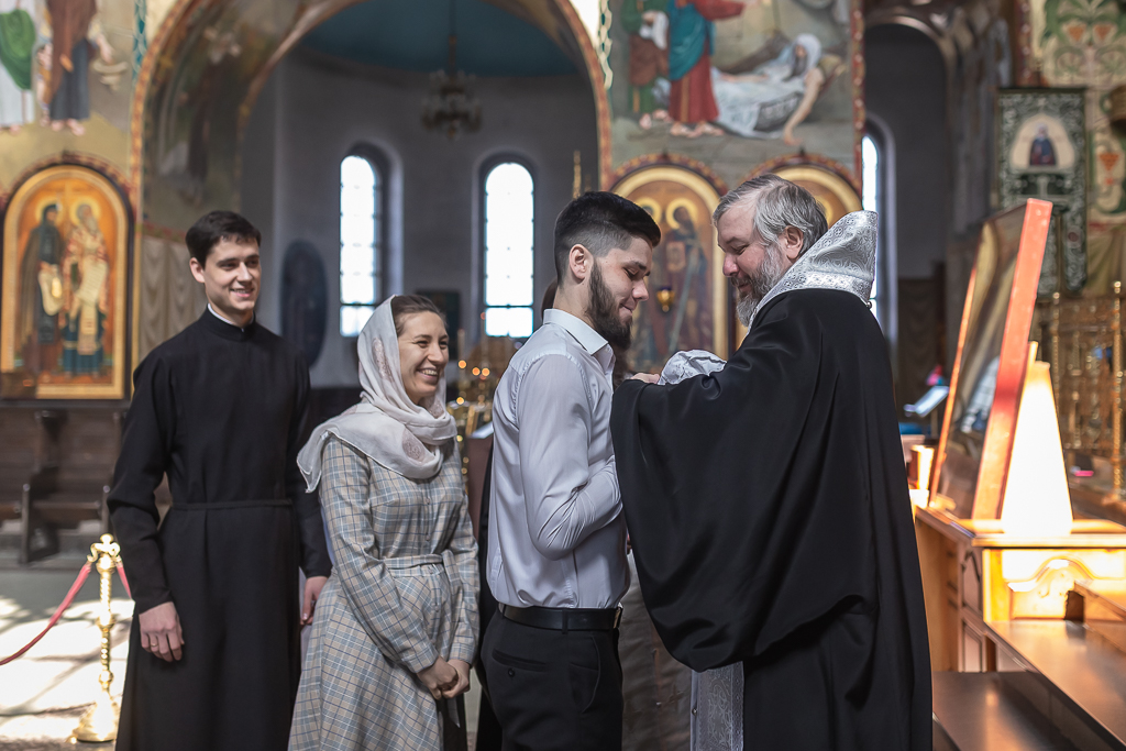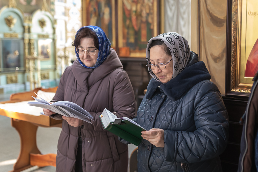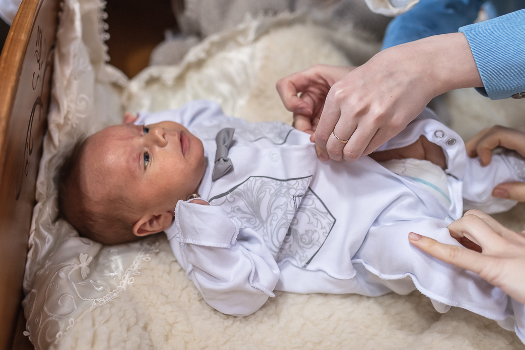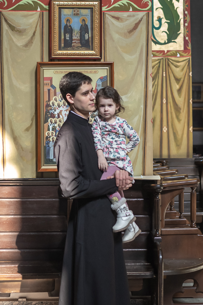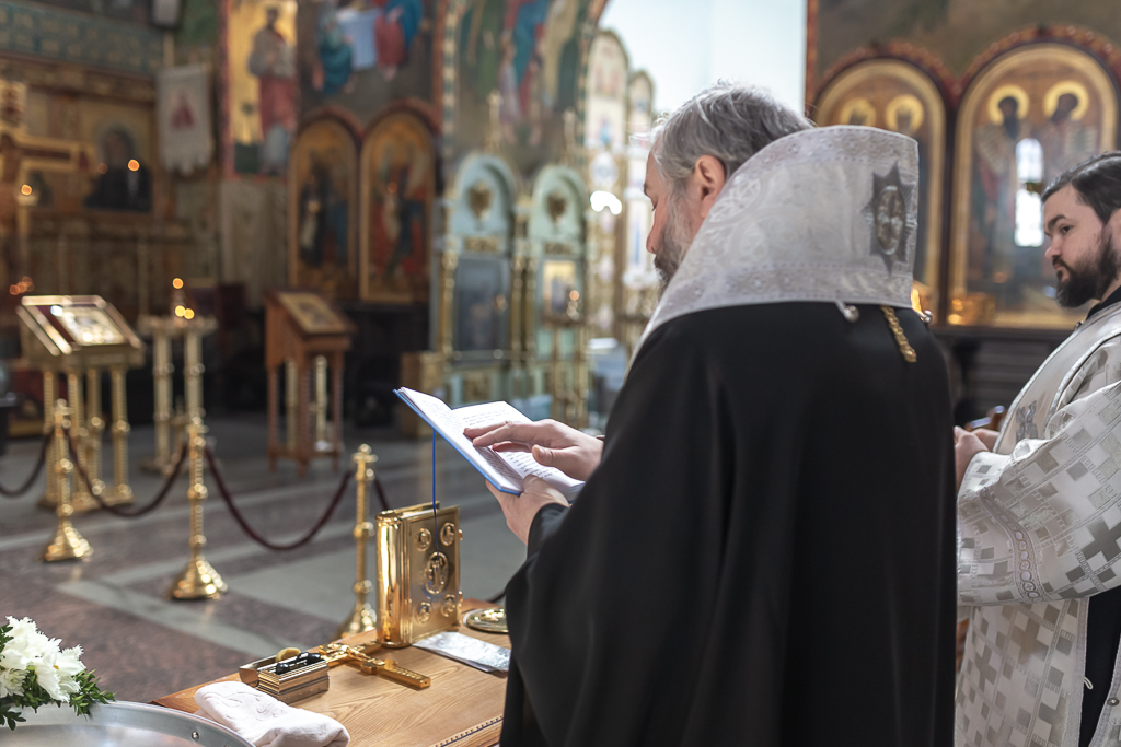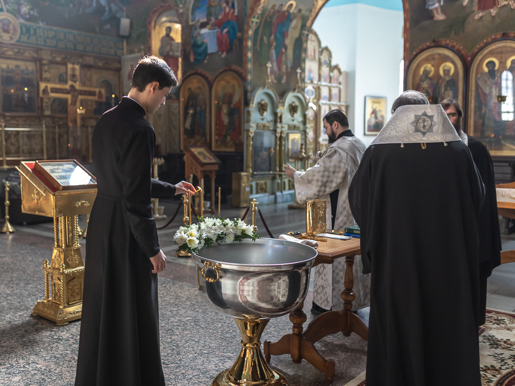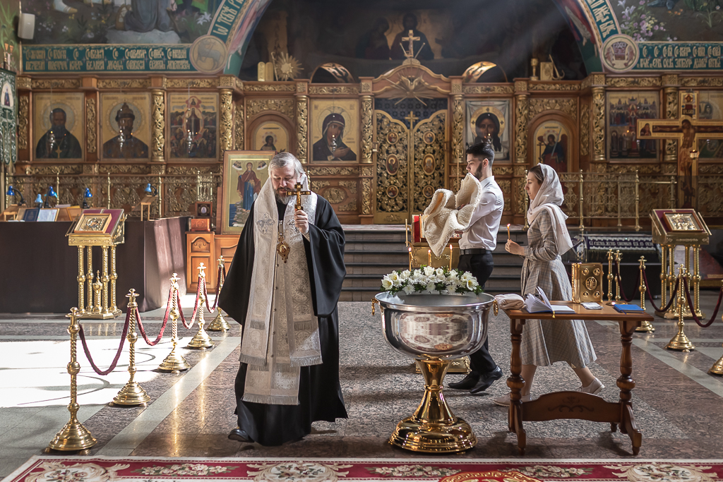 В вместе с архиереем молились родители, восприемник младенца и родственники.