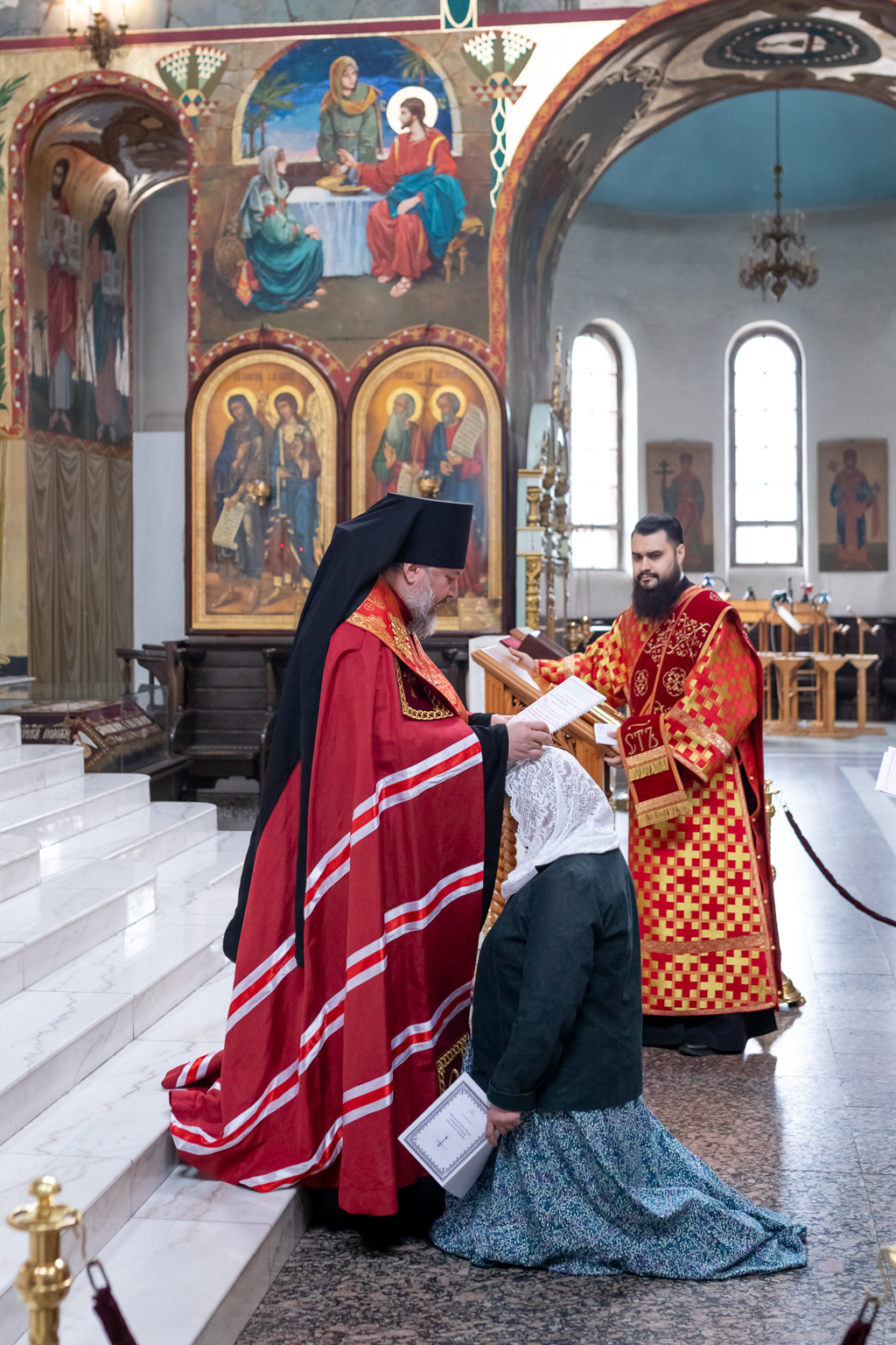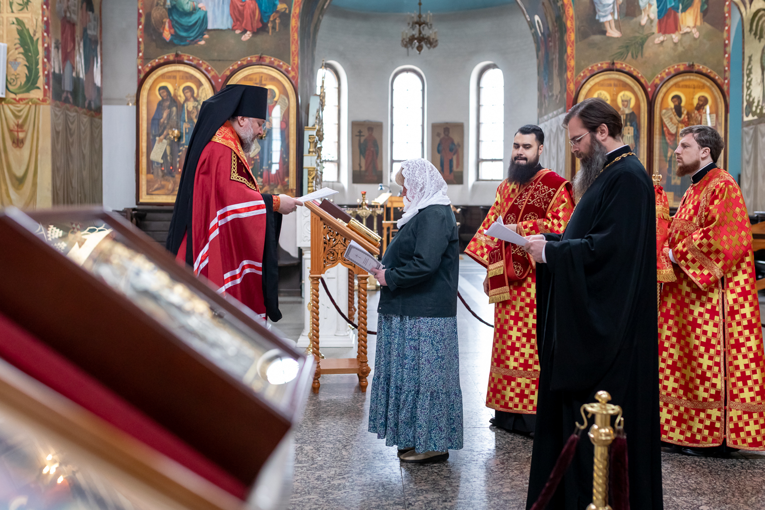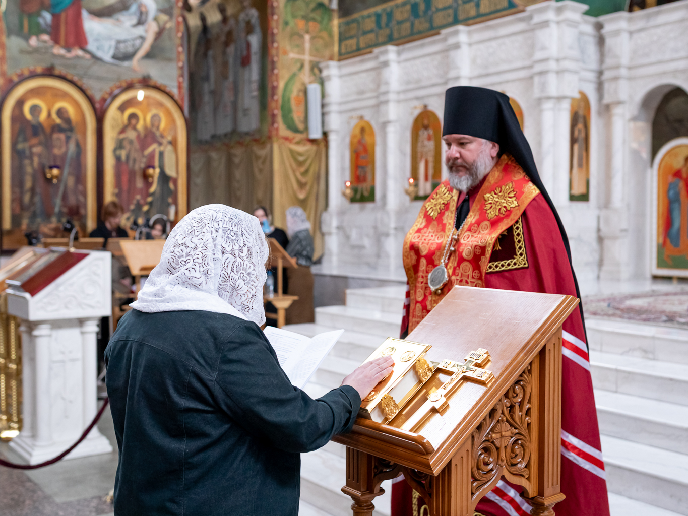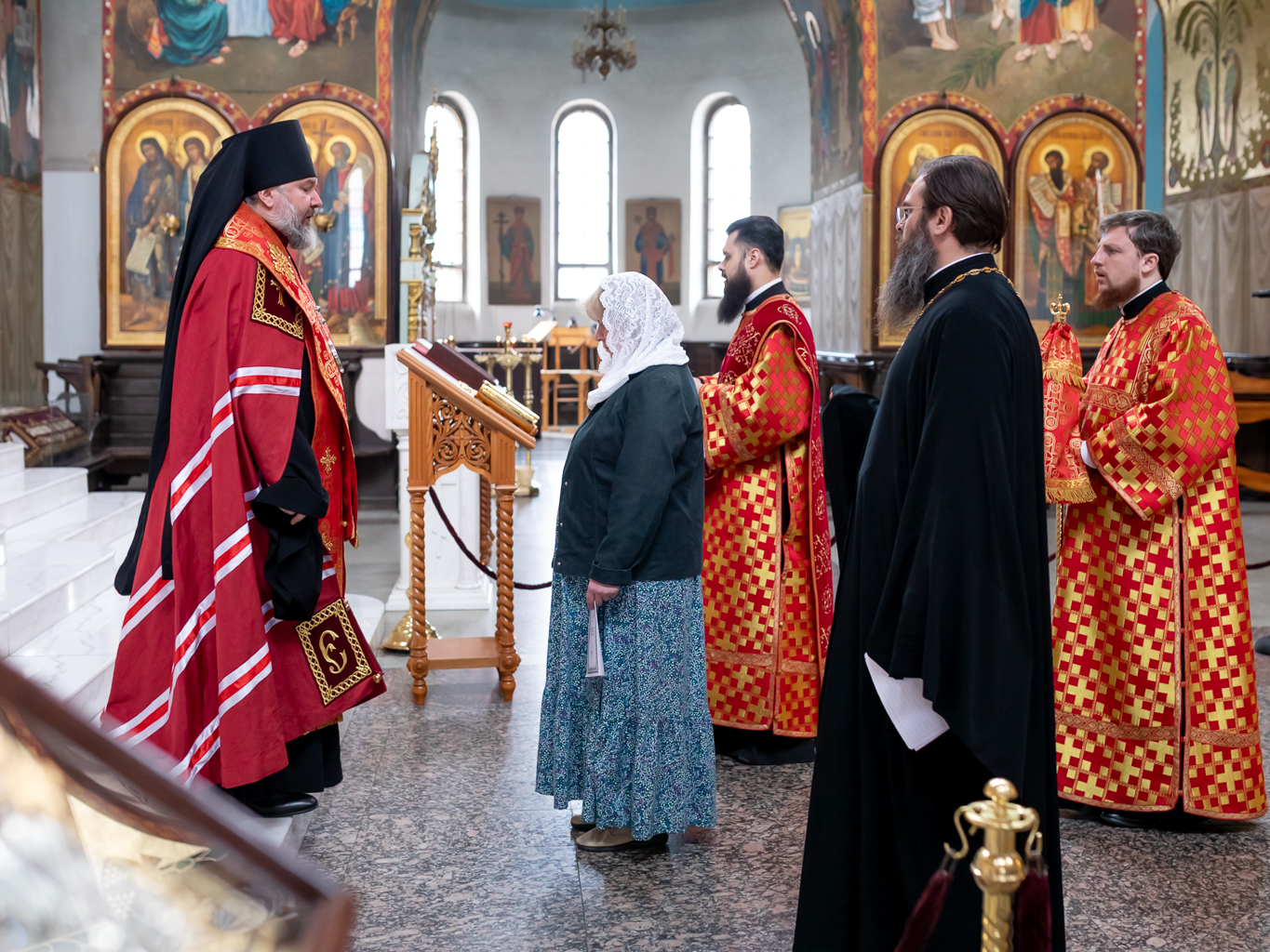 В этот день новая прихожанка храма отреклась от сектантского заблуждения, на Евангелии присягнув на верность Церкви, после чего епископ Симон возложил на голову воссоединяемой с Церковью свой омофор и духовно напутствовал ее.