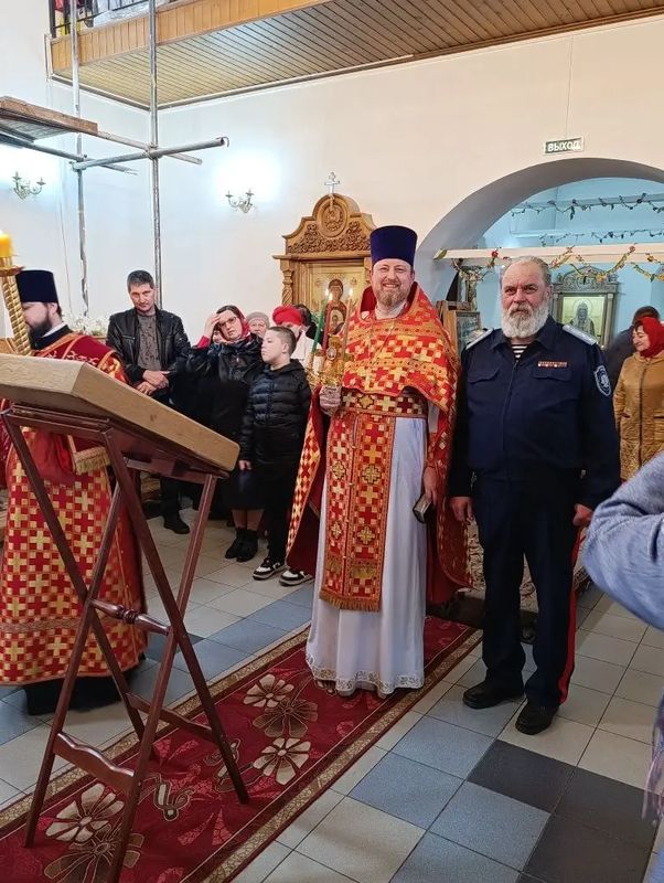 Вместе с архиереем молились настоятель храма протоиерей Роман Амплеев, настоятель храма Казанской иконы Божией Матери г. Гуково протоиерей Николай Быков, диакон Трофим Осяк и прихожане храма.